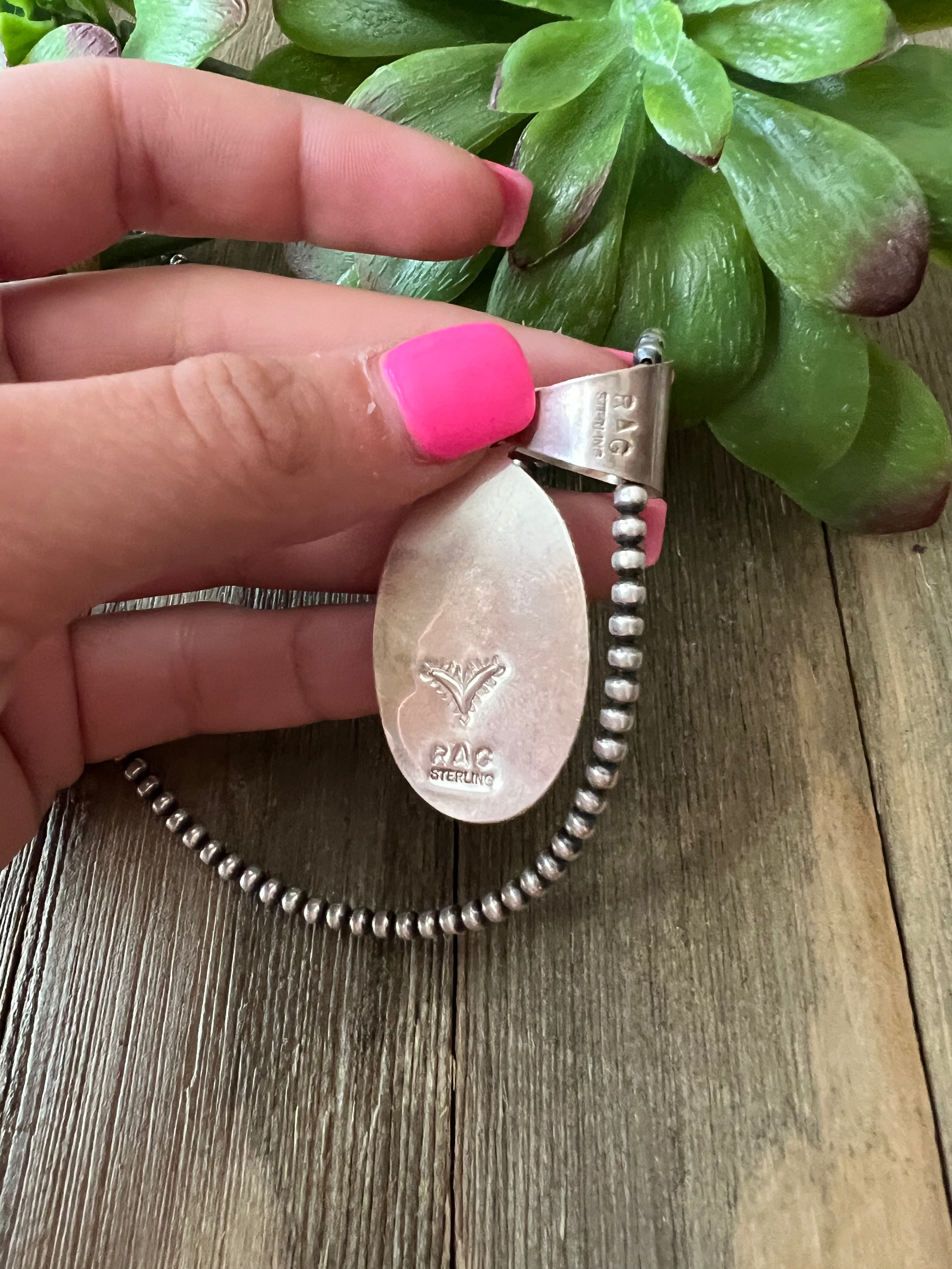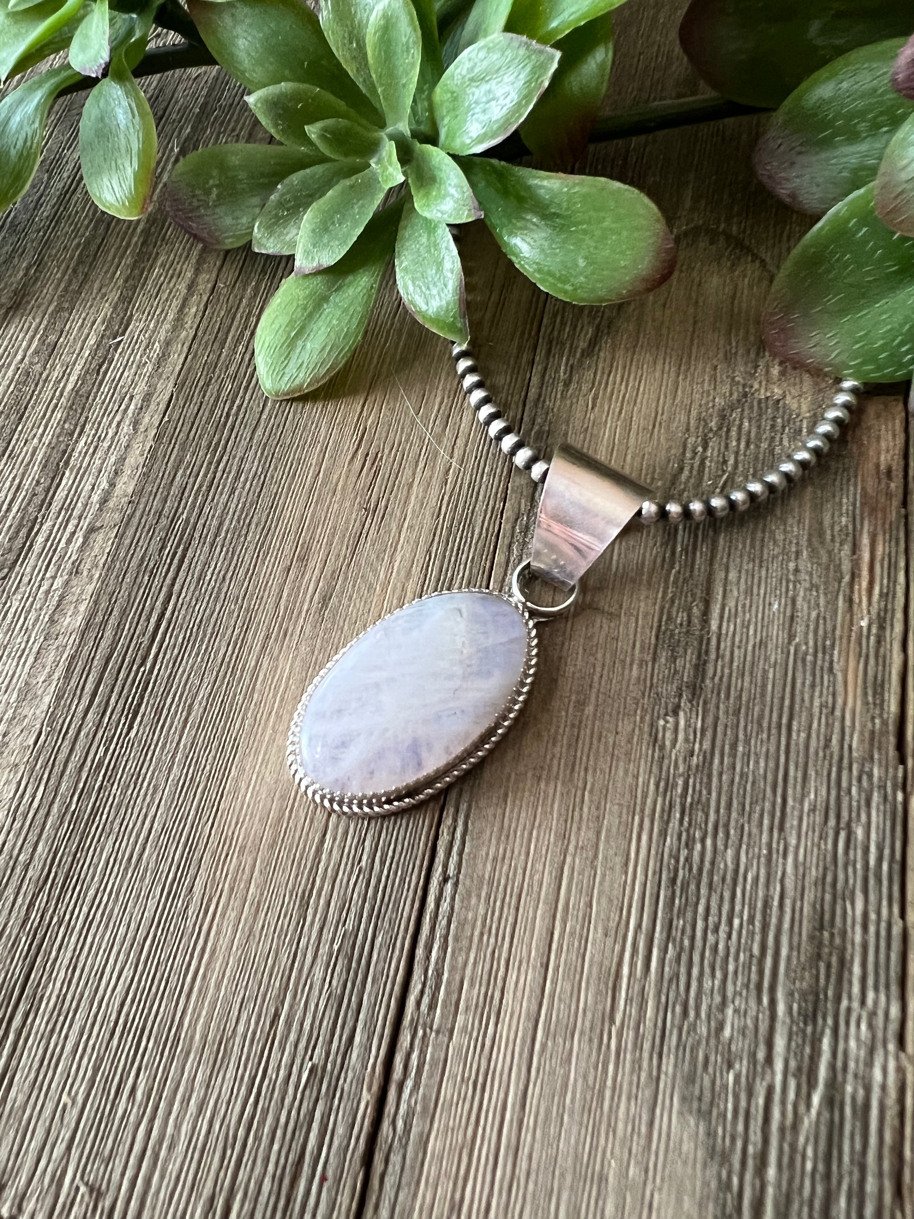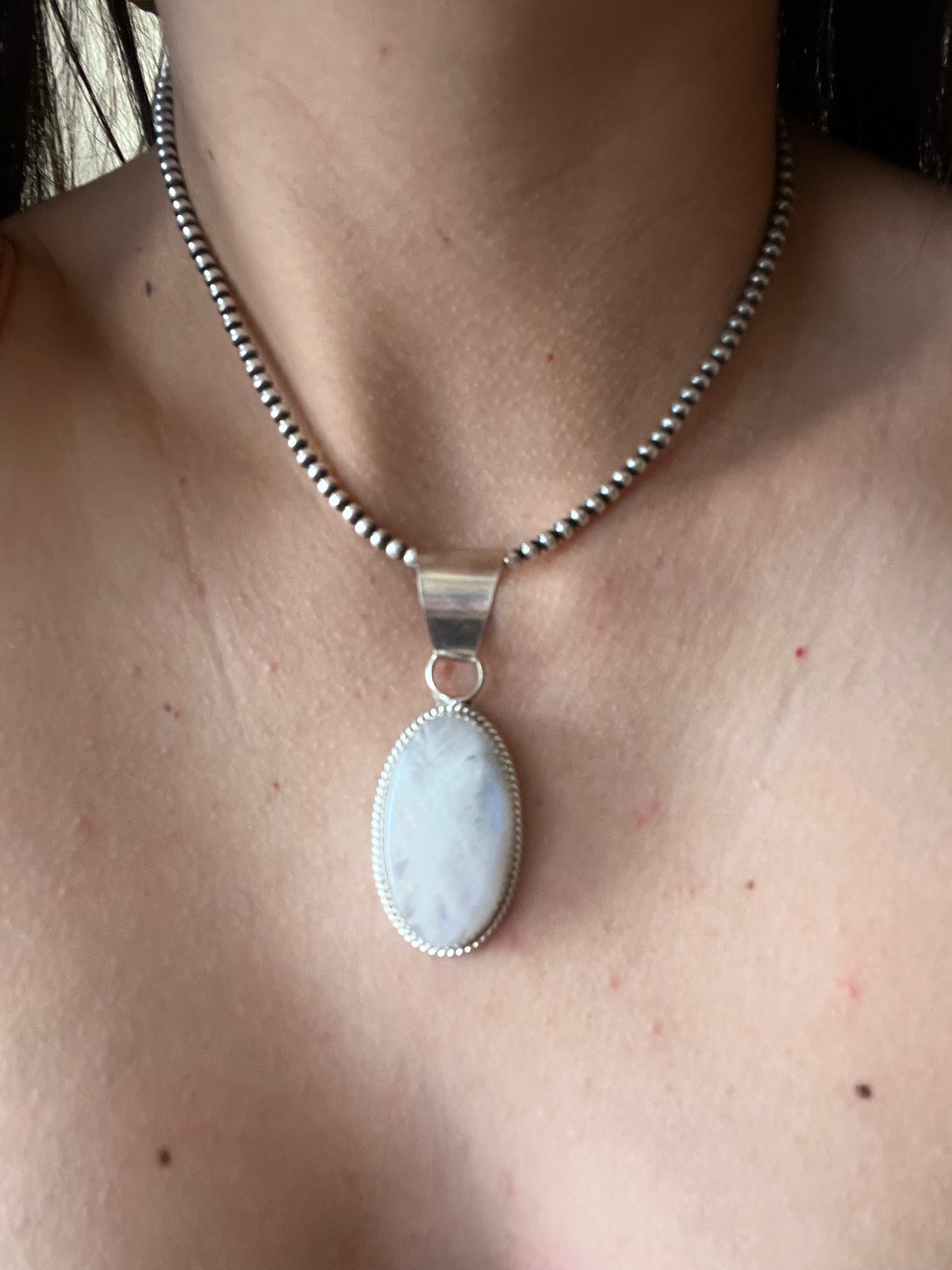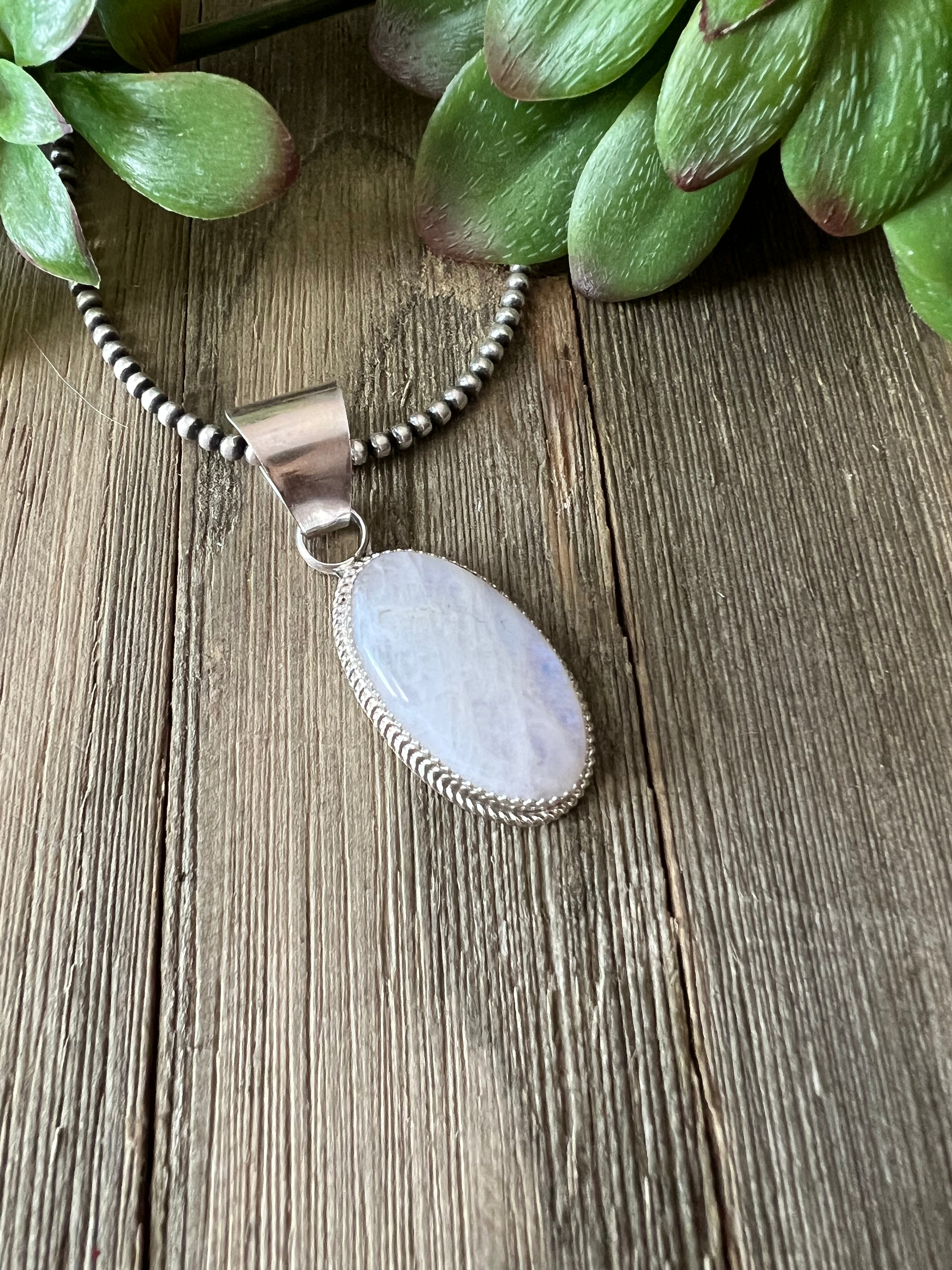 Reda Galvan Moonstone & Sterling Silver Pendant. It measures just over 2 1/4 inches long and 3/4 of an inch wide. Pendant Only!! Signed by the artist and stamped sterling silver.