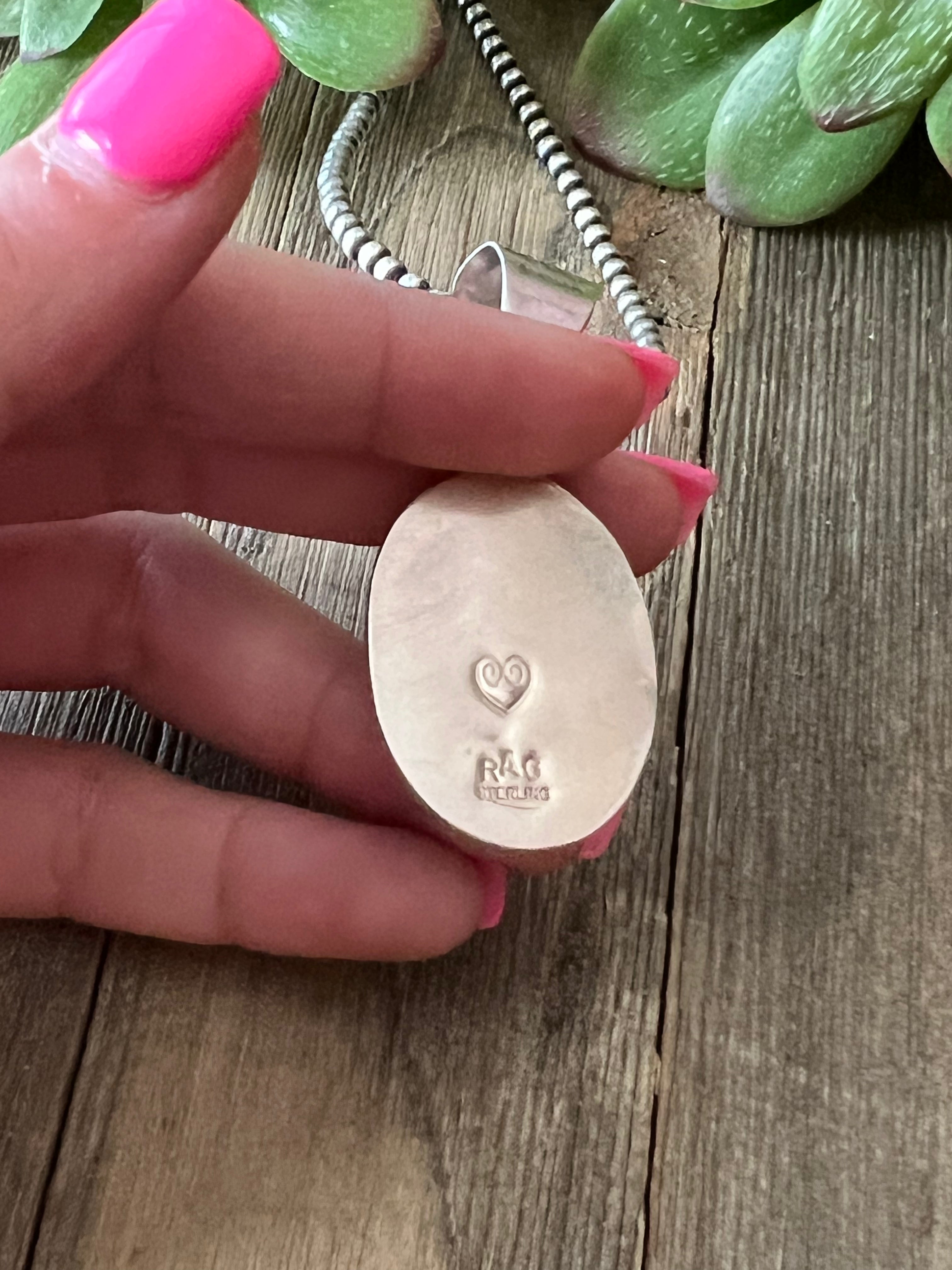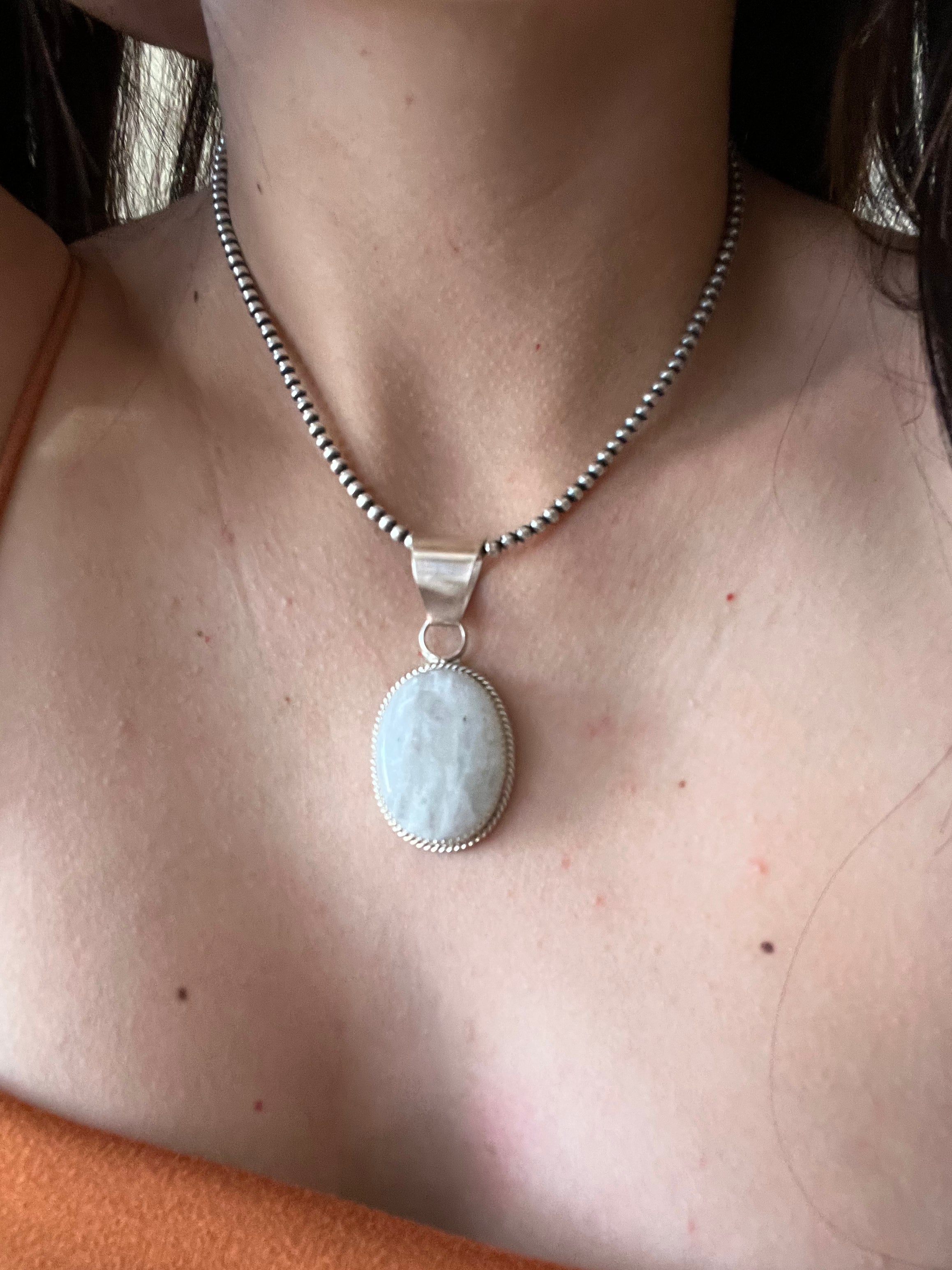 Reda Galvan Moonstone & Sterling Silver Pendant. It measures 2 inches long and of 1 inch wide. Pendant Only!! Signed by the artist and stamped sterling silver.
