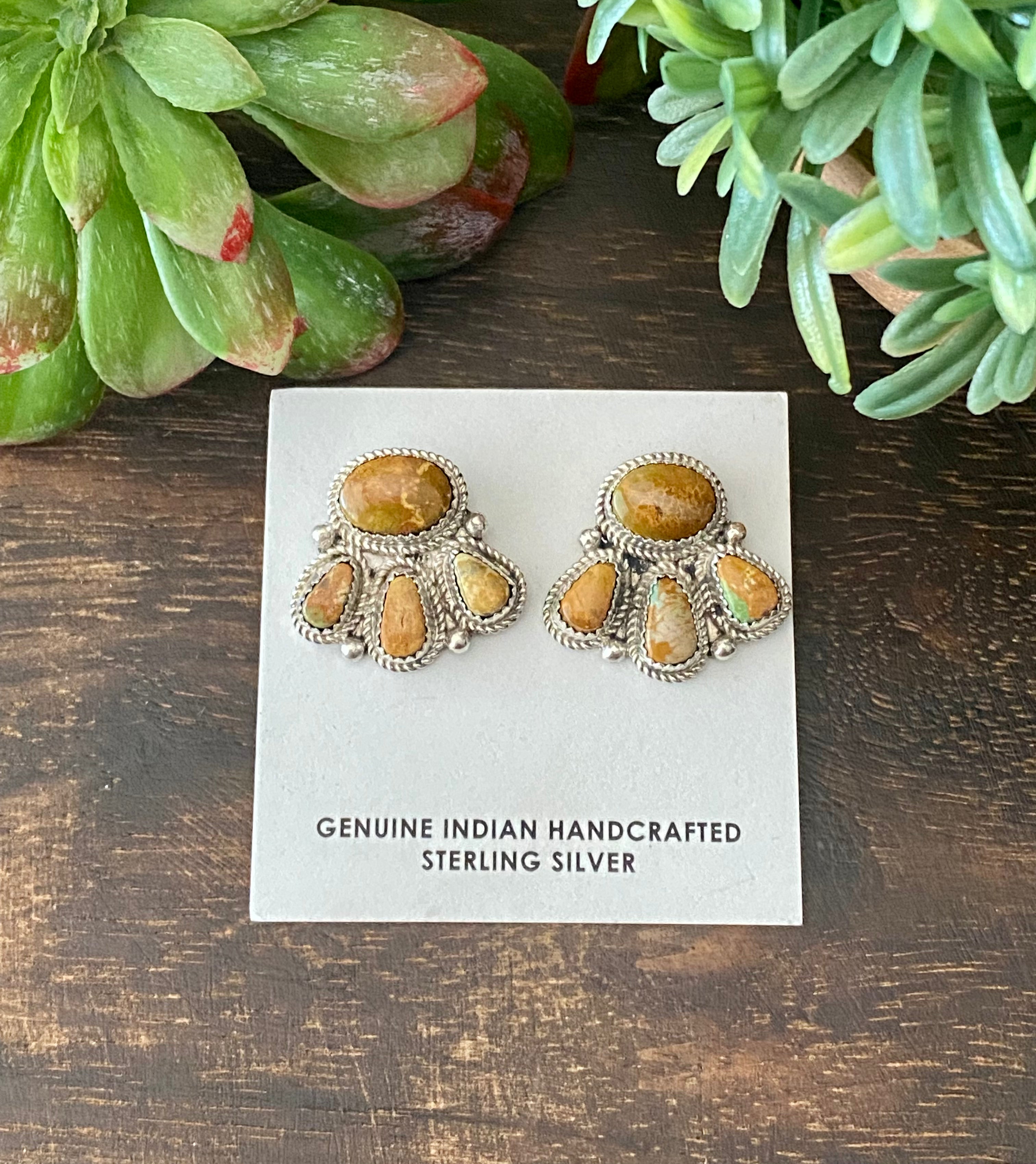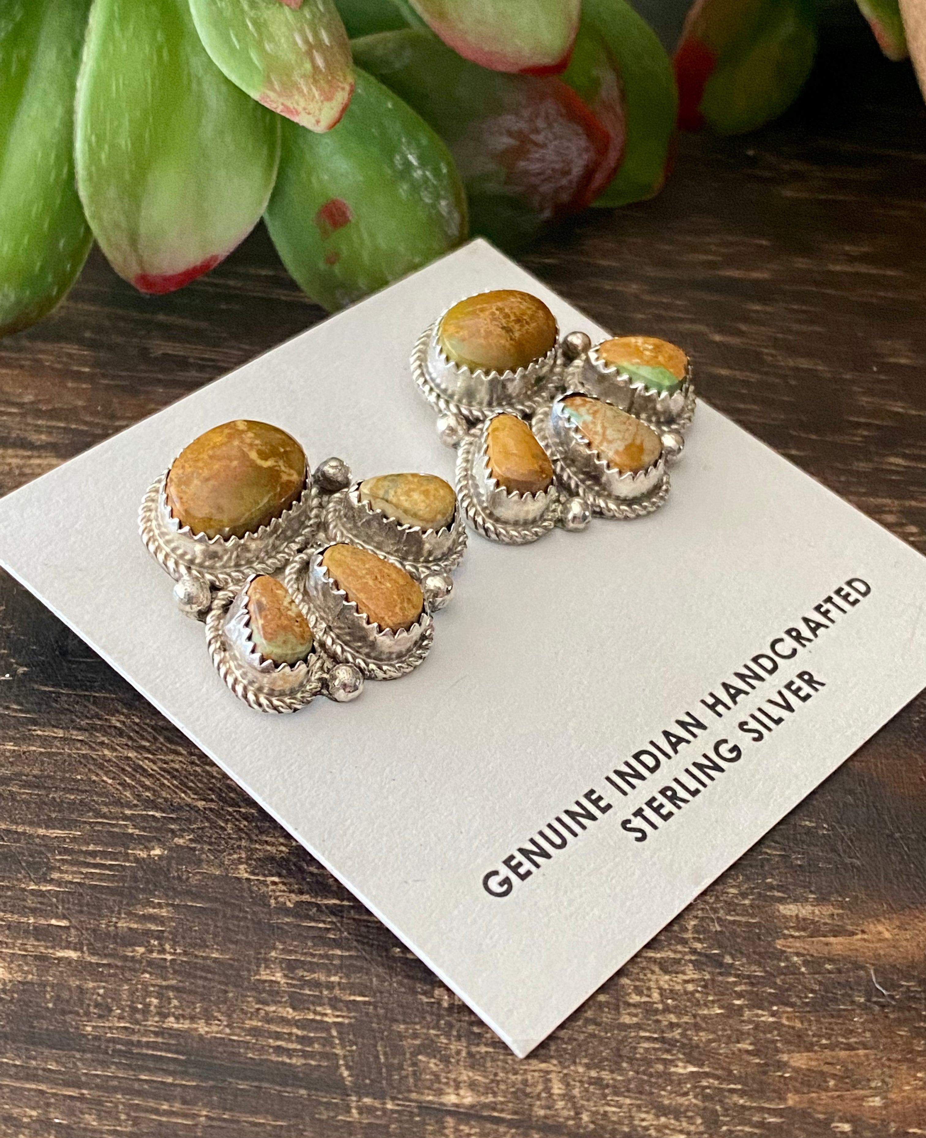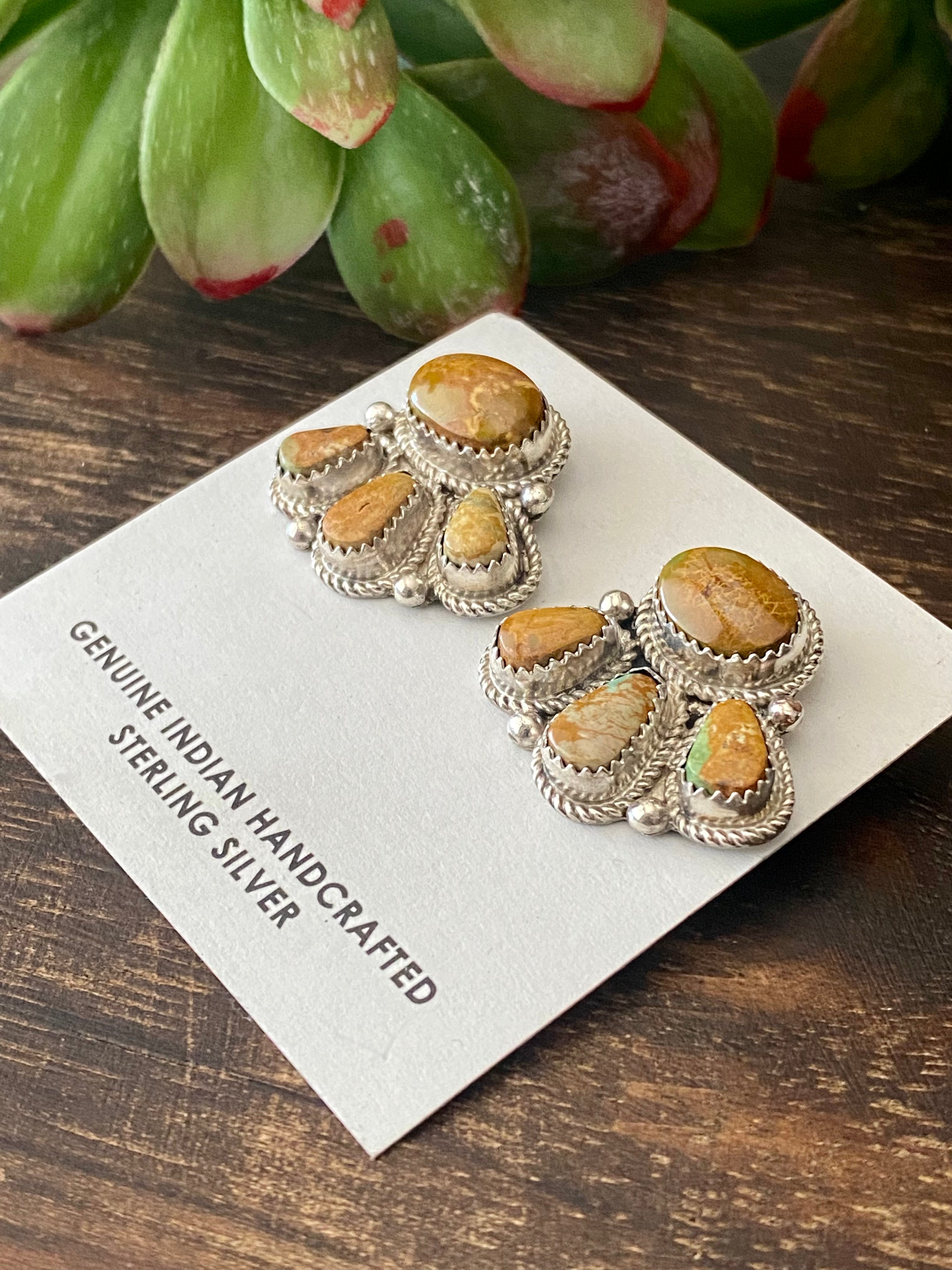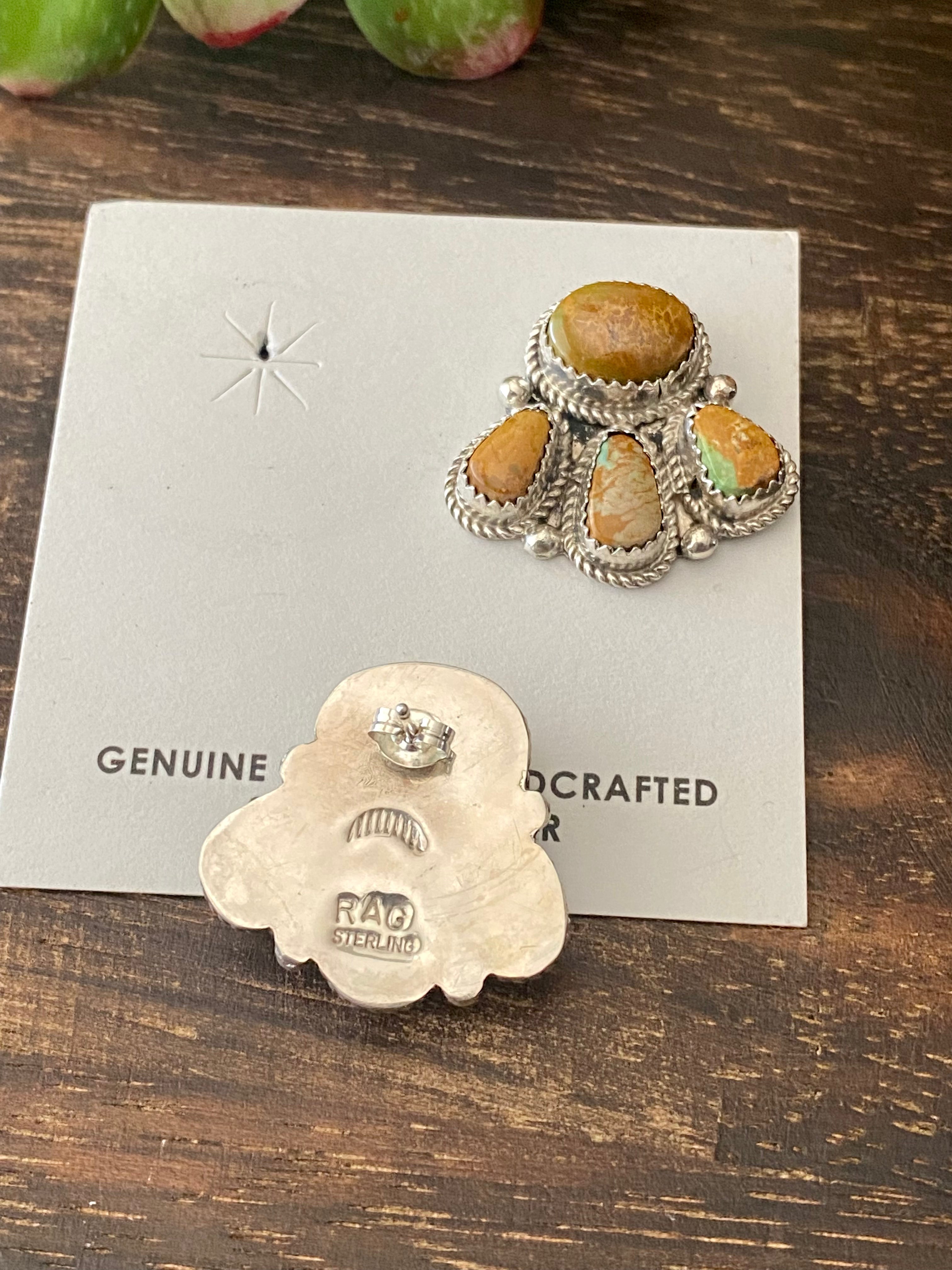 Reda Galvan Royston Turquoise & Sterling Silver Post Earrings. They measure 1 inch long and just over 1 inch wide. Signed by the artist and stamped sterling silver.