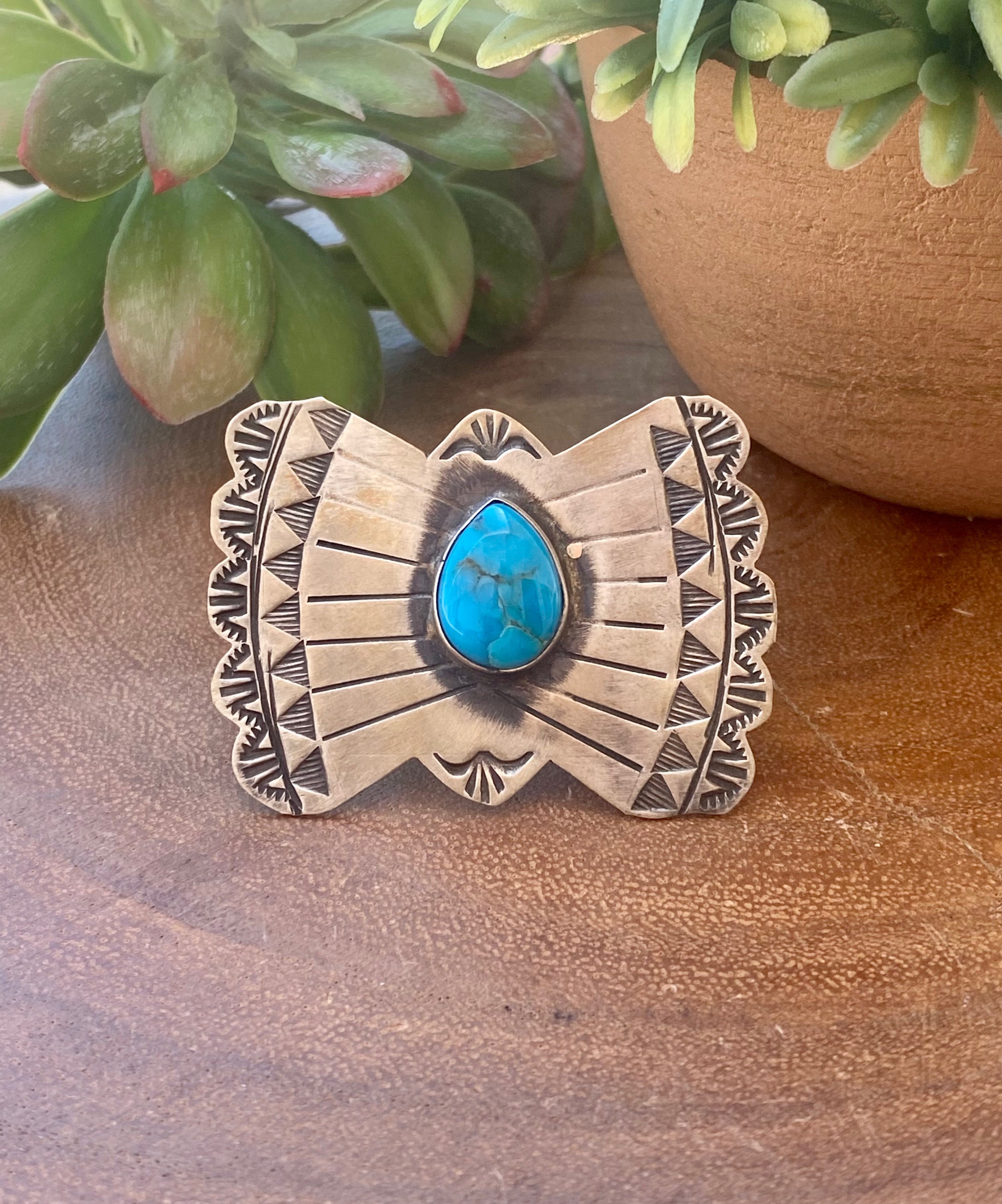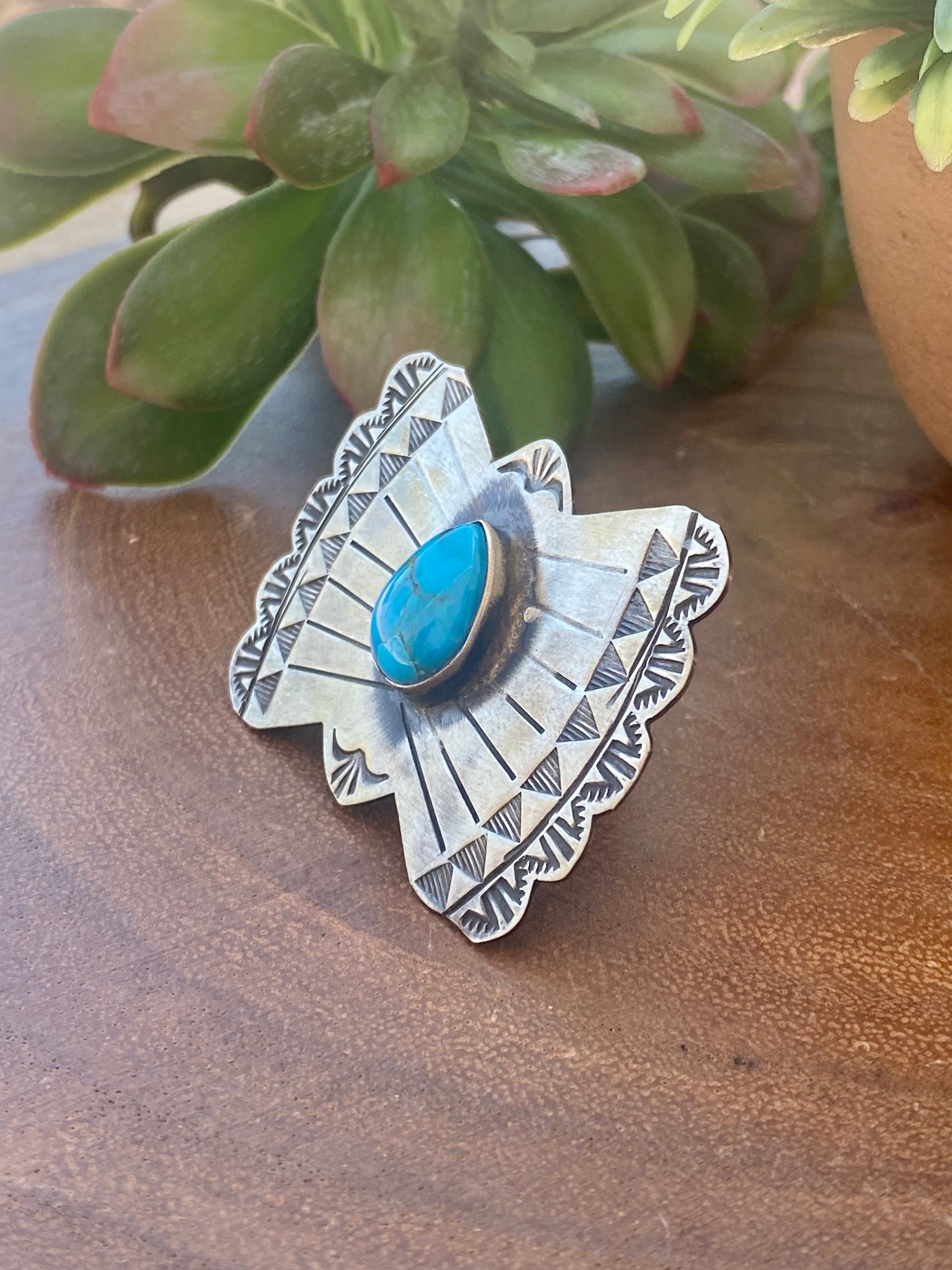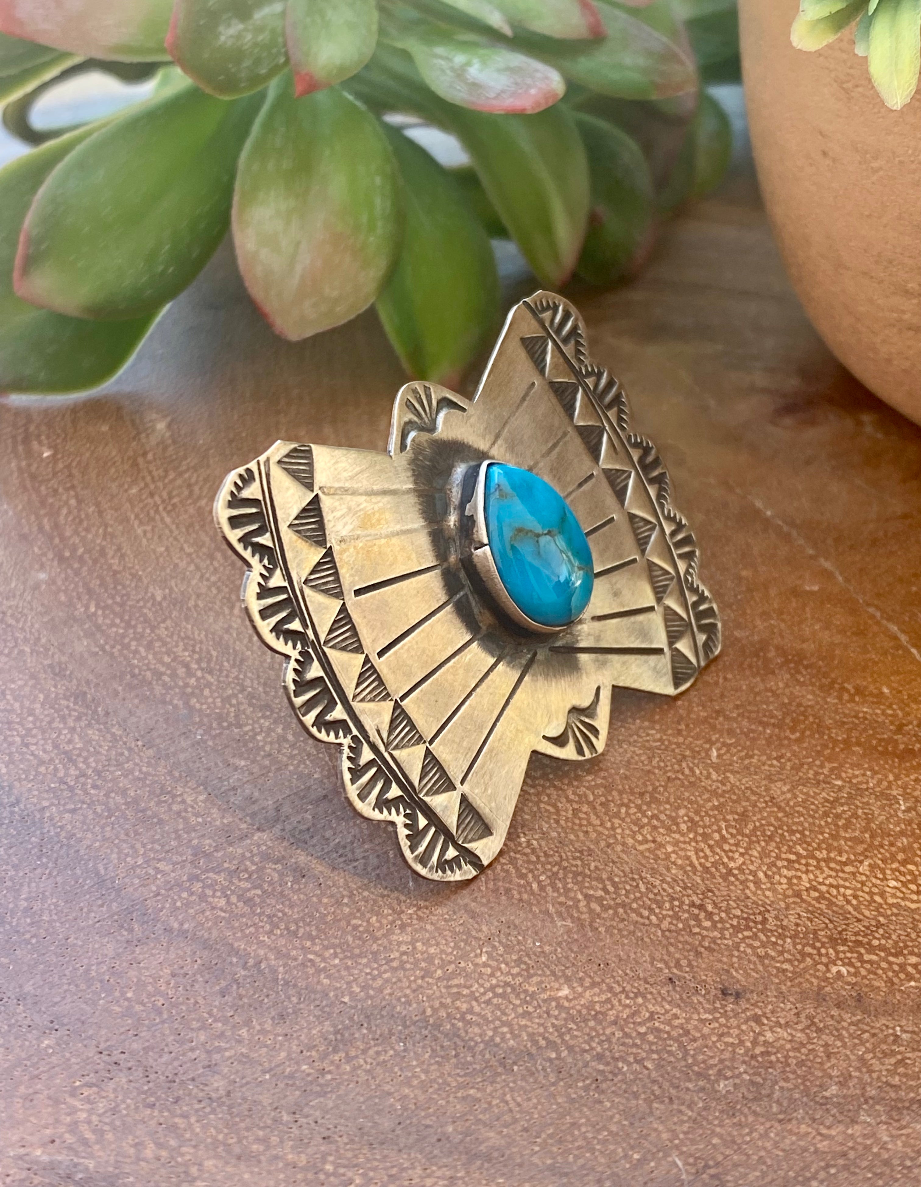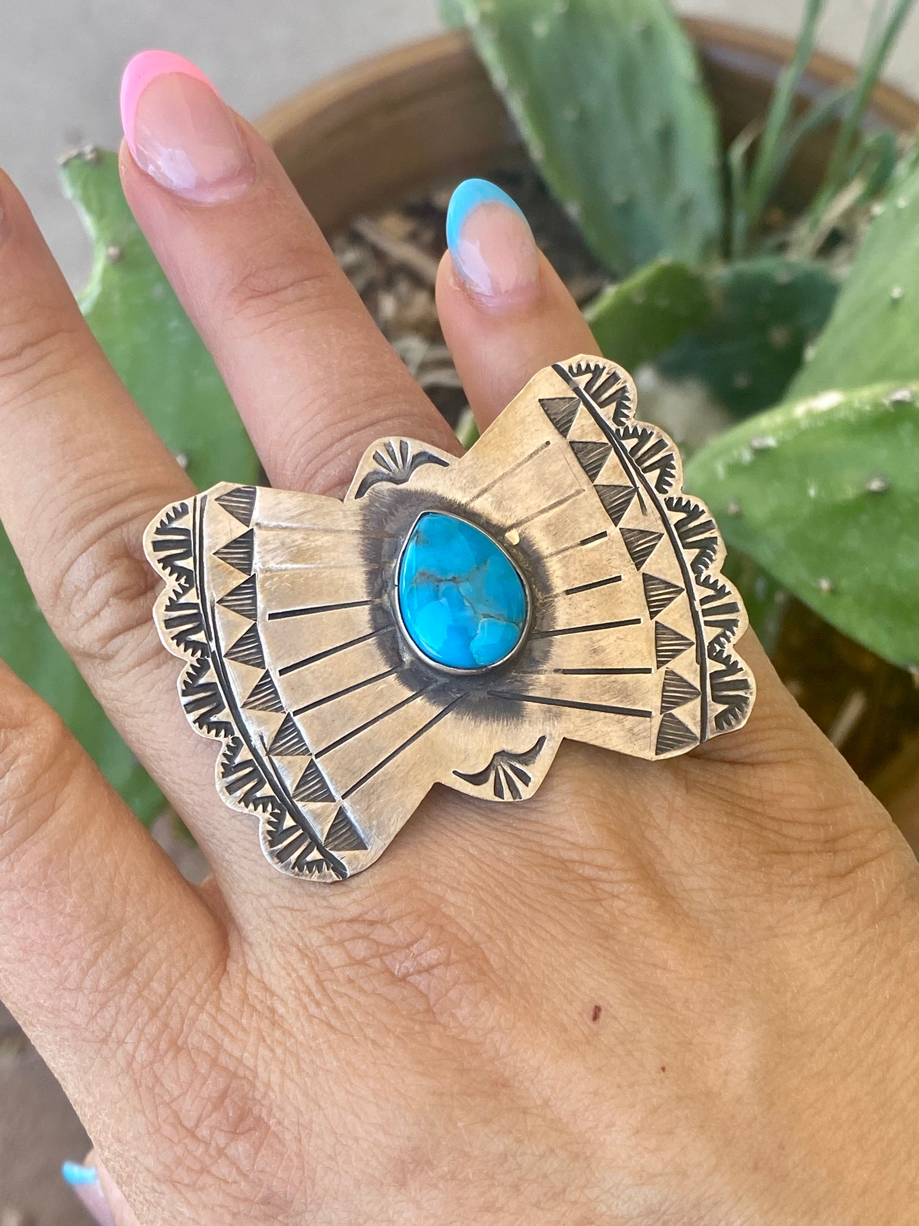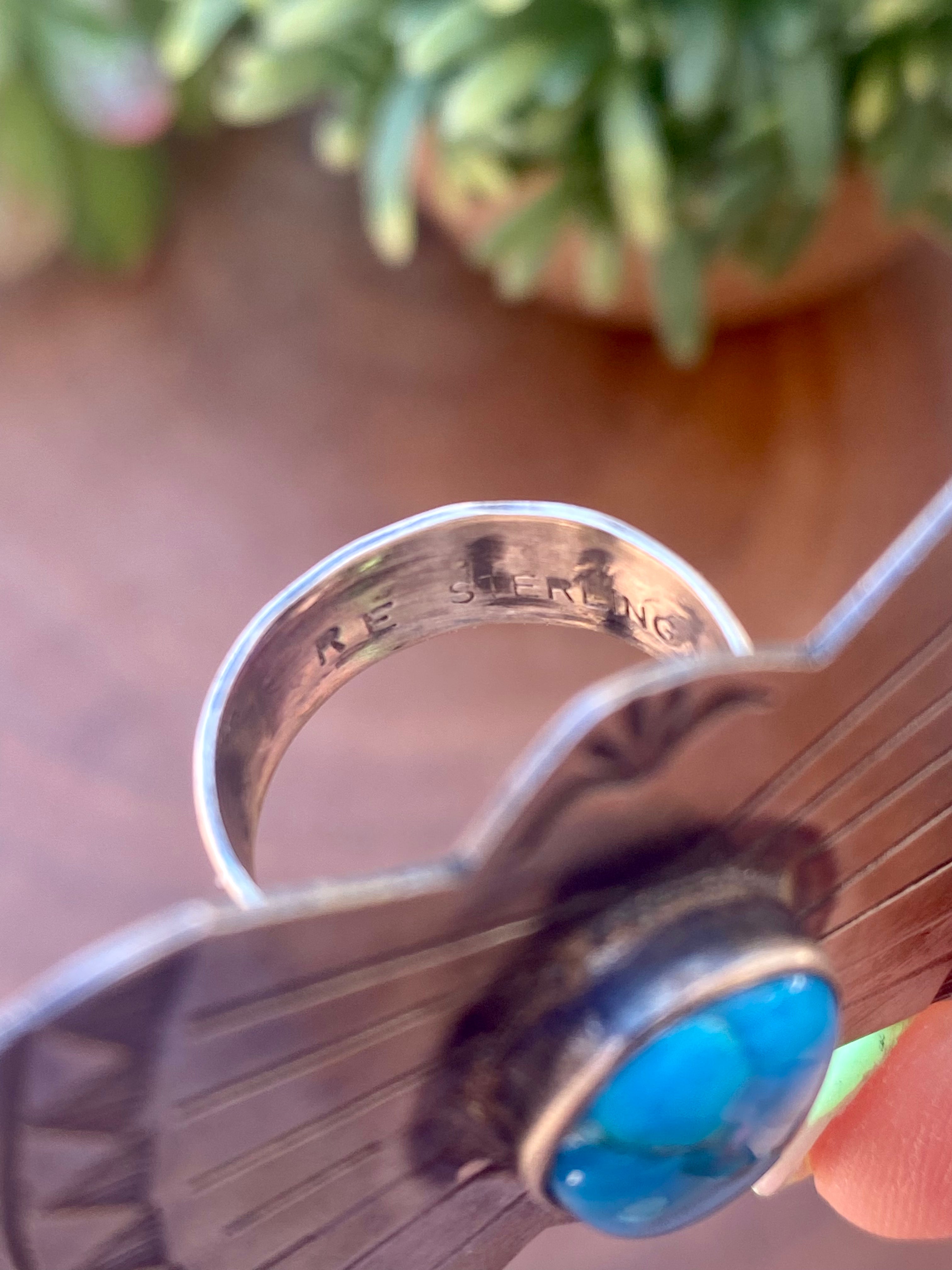 Rick Enriquez Kingman Turquoise & Sterling Silver Ring Size 7.5