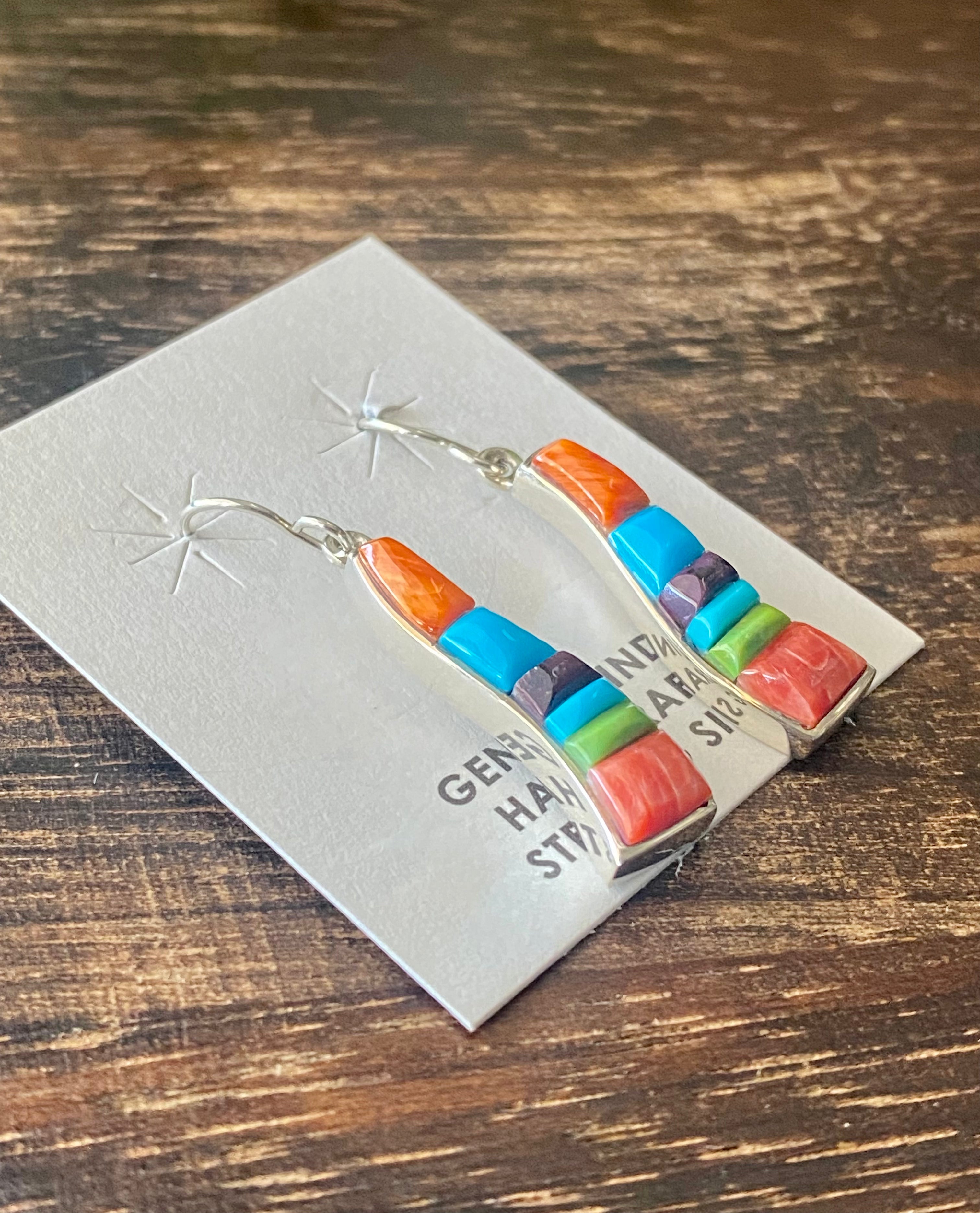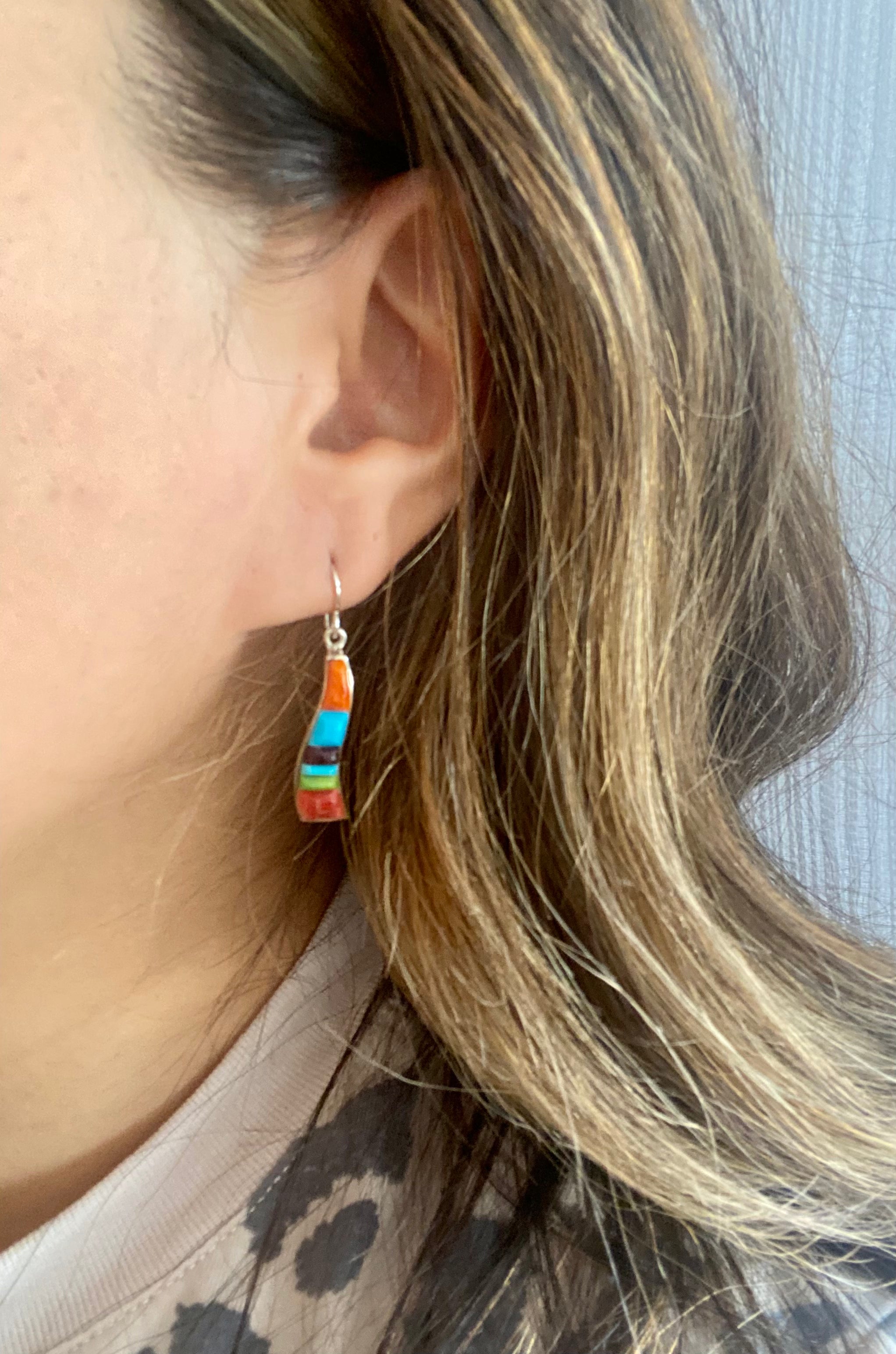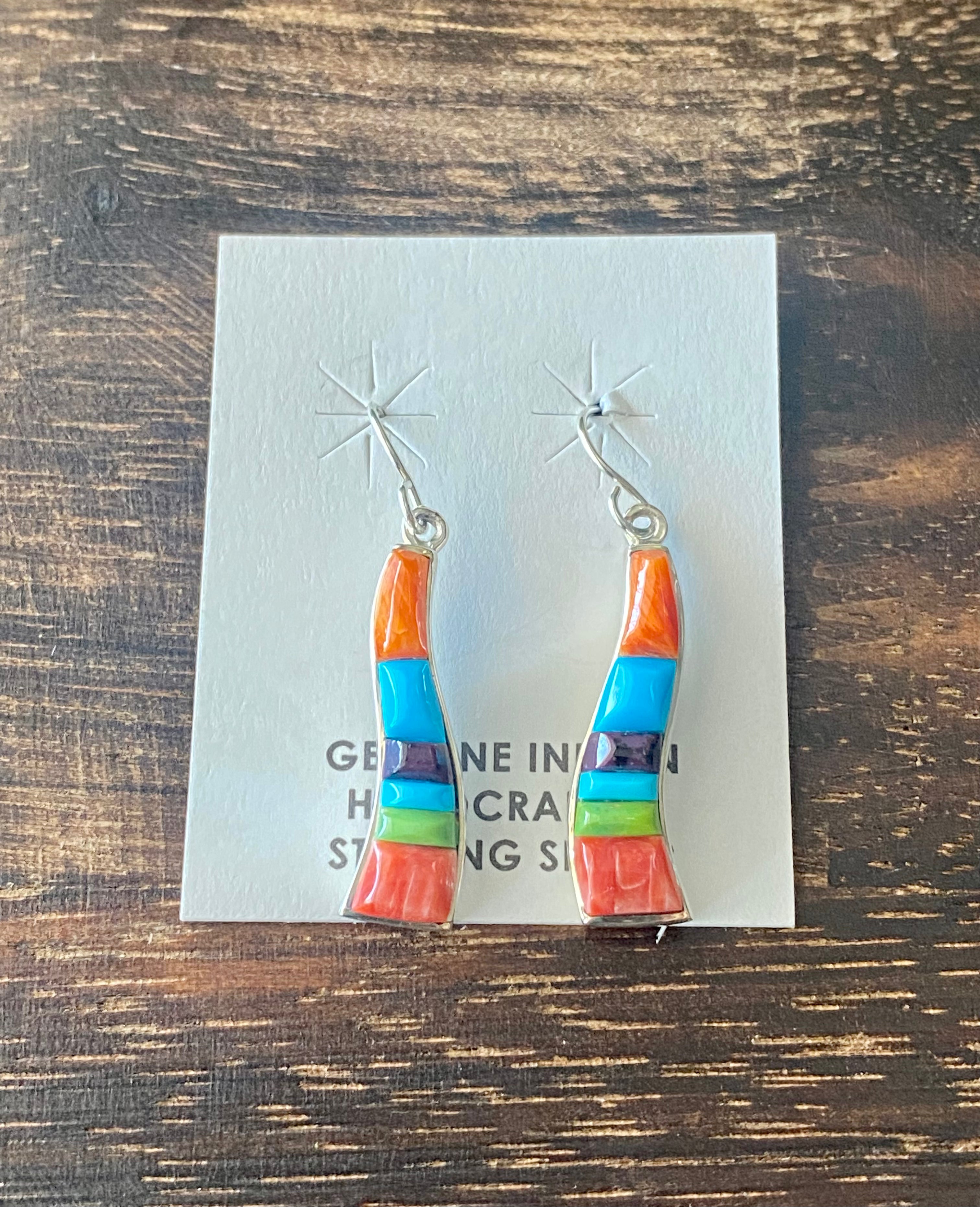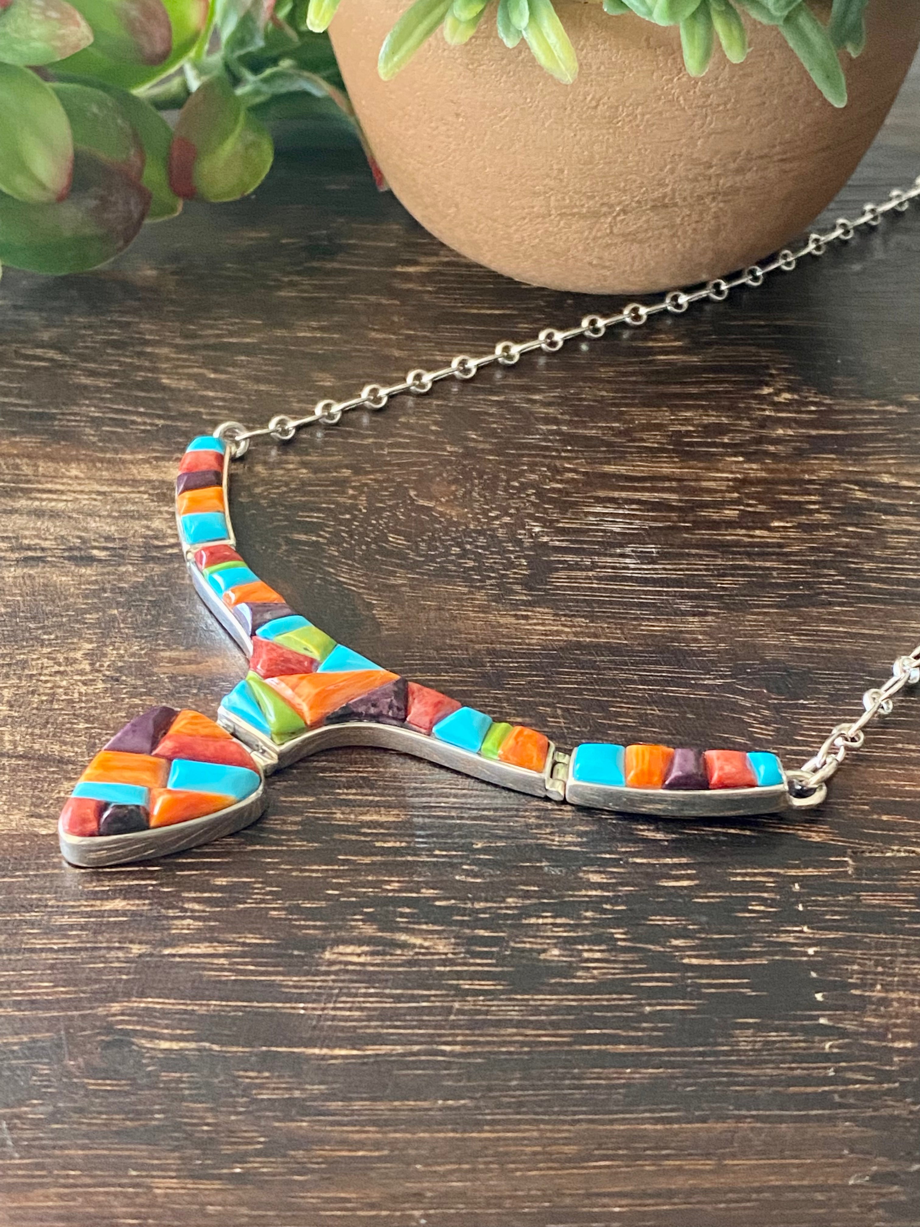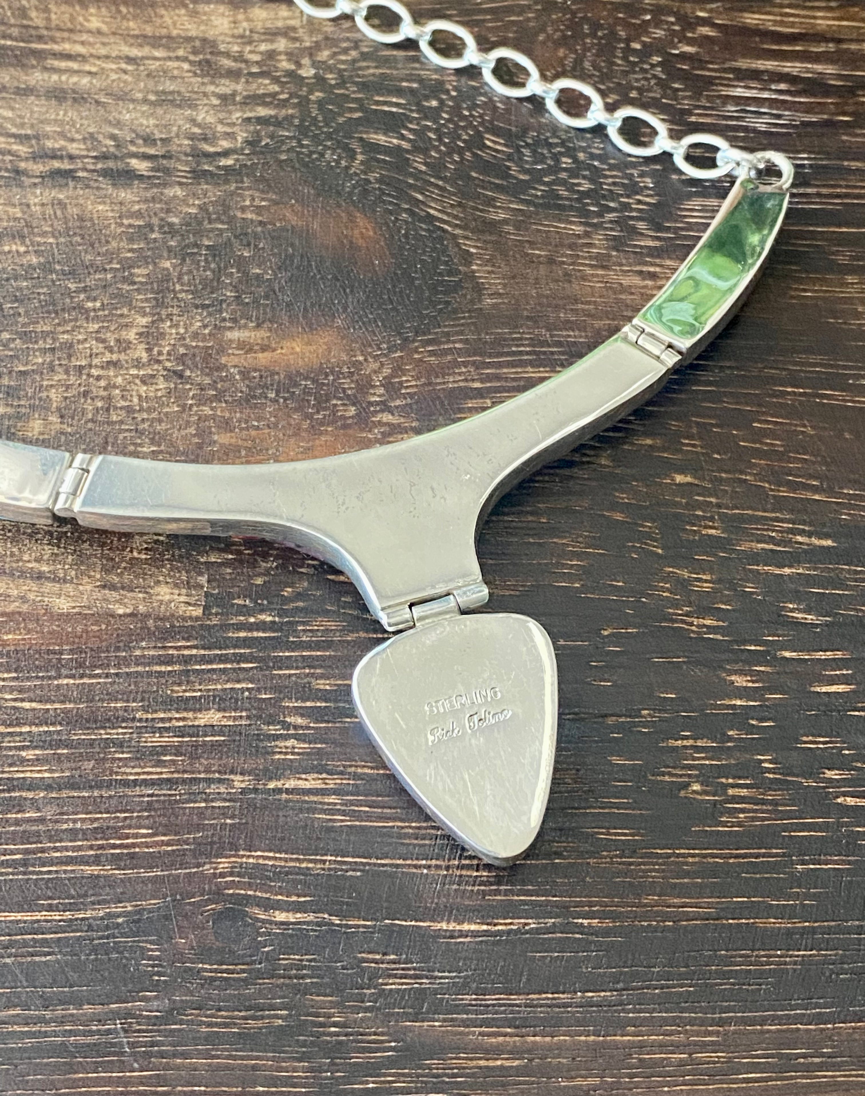 Rick Tolino Multi Stone & Sterling Silver Cobblestone Necklace Set. The necklace measures just over 21 inches long with hang while the chain by itself measures 17 inches long. The earrings are 1 1/2 inches long and just over 1/4 of an inch wide. Signed by the artist and stamped sterling silver.