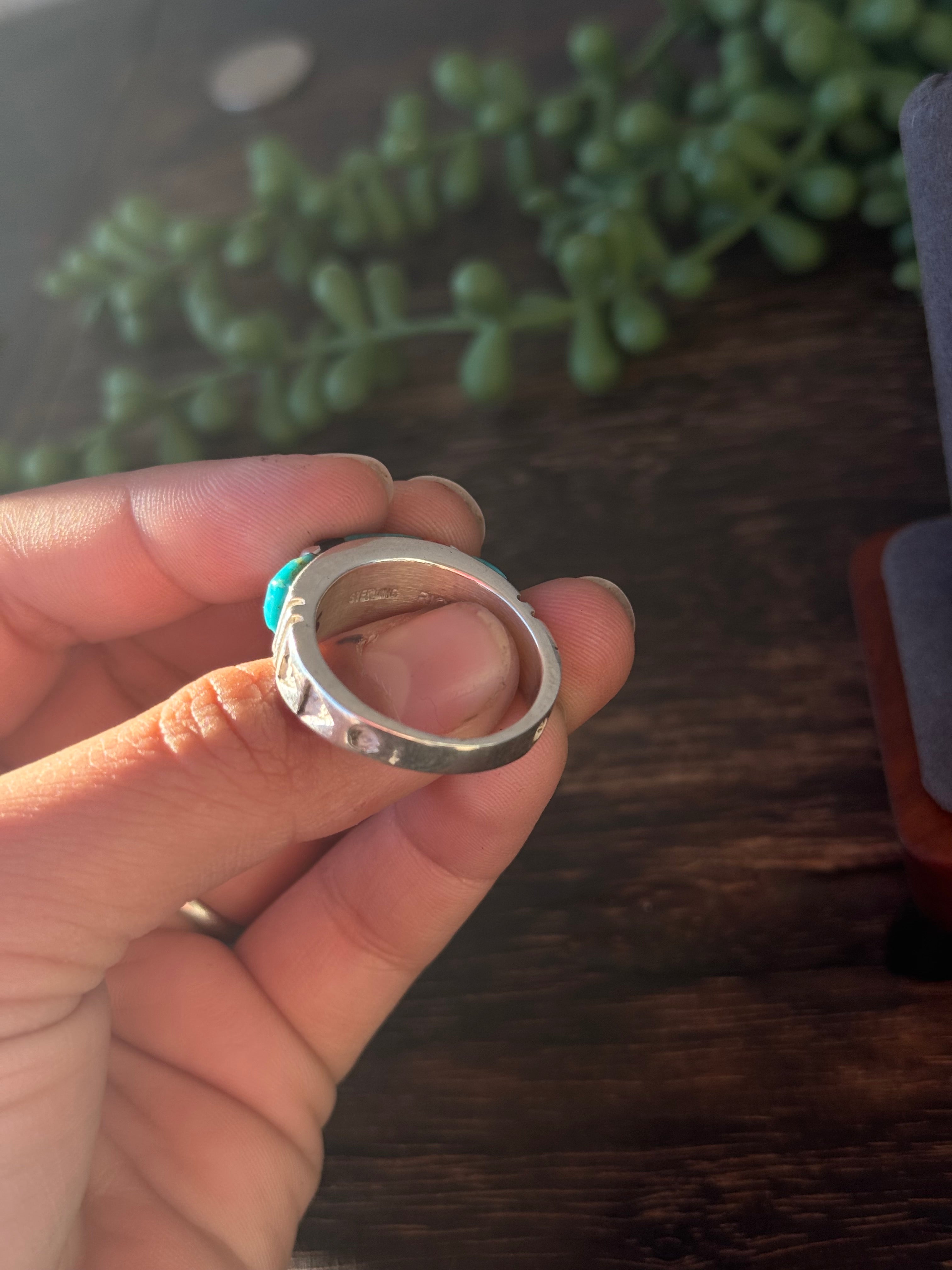 Rick Tolino Multi Stone & Sterling Silver Cobblestone Ring. It measures 3/8 of an inch long. Signed by the artist and stamped sterling silver.