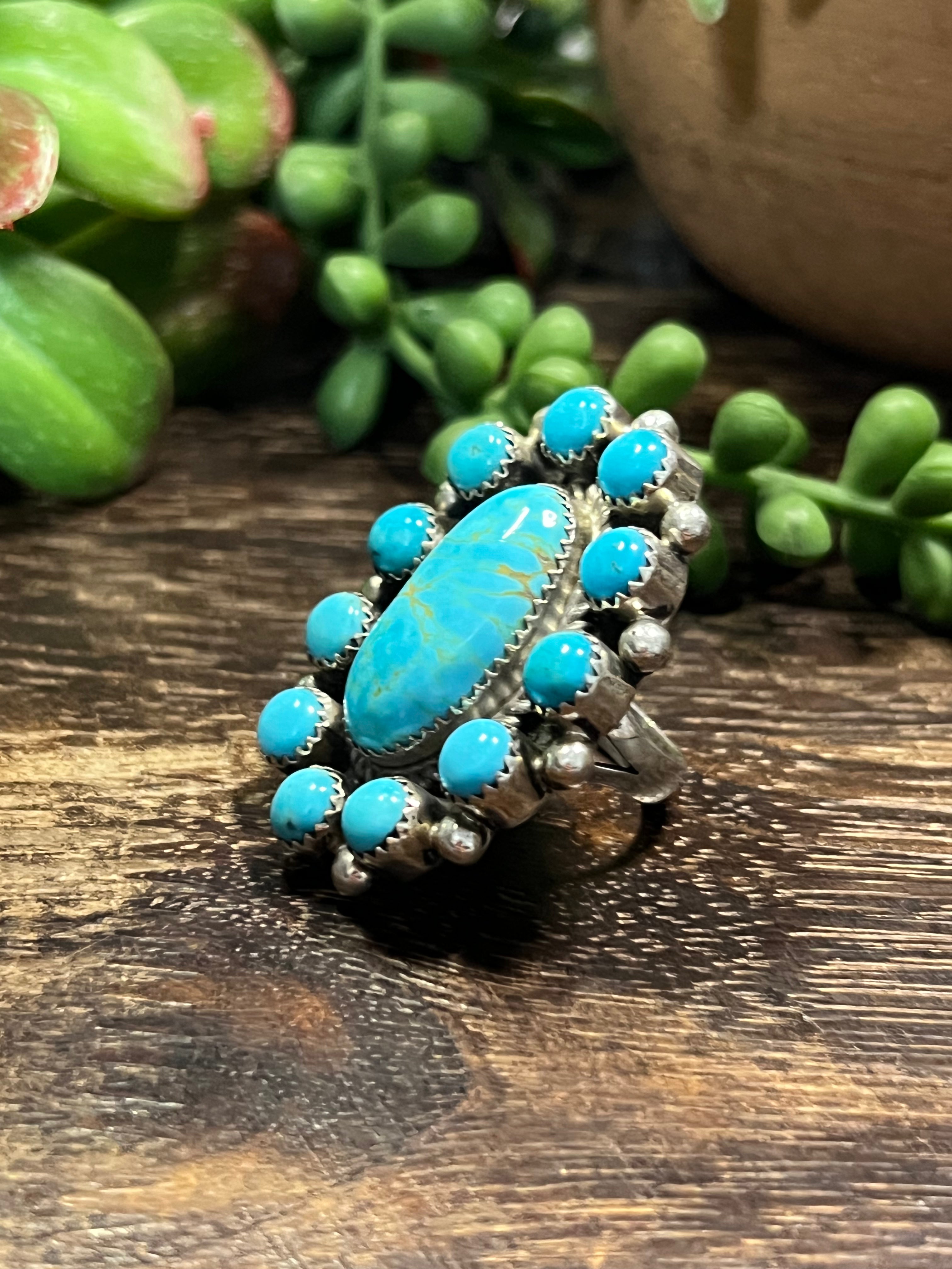 Robert Shakey Kingman Turquoise & Sterling Silver Ring Size 7.5