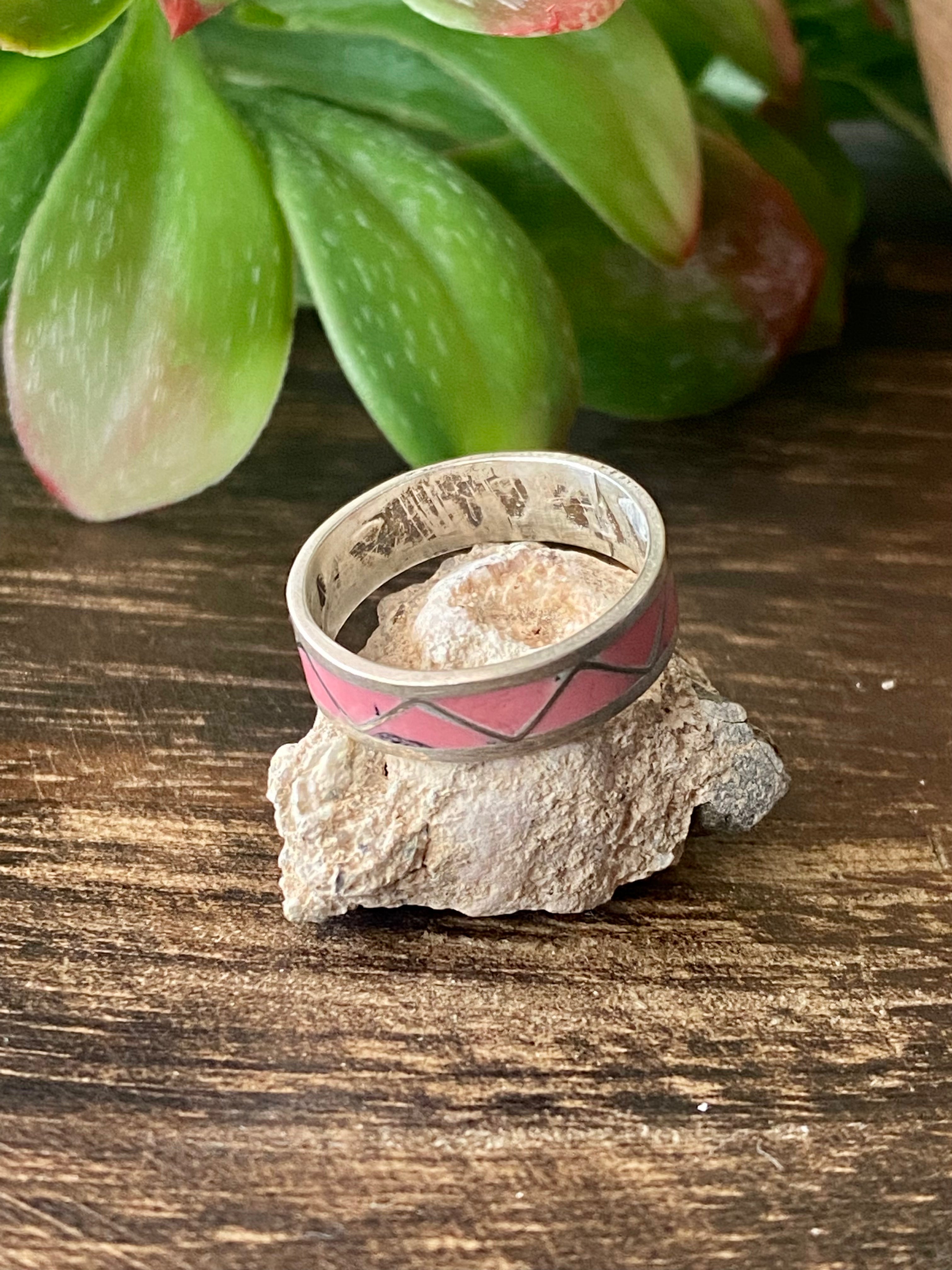 Roger Morgan Pink Coral & Sterling Silver Inlay Ring Size 10.25