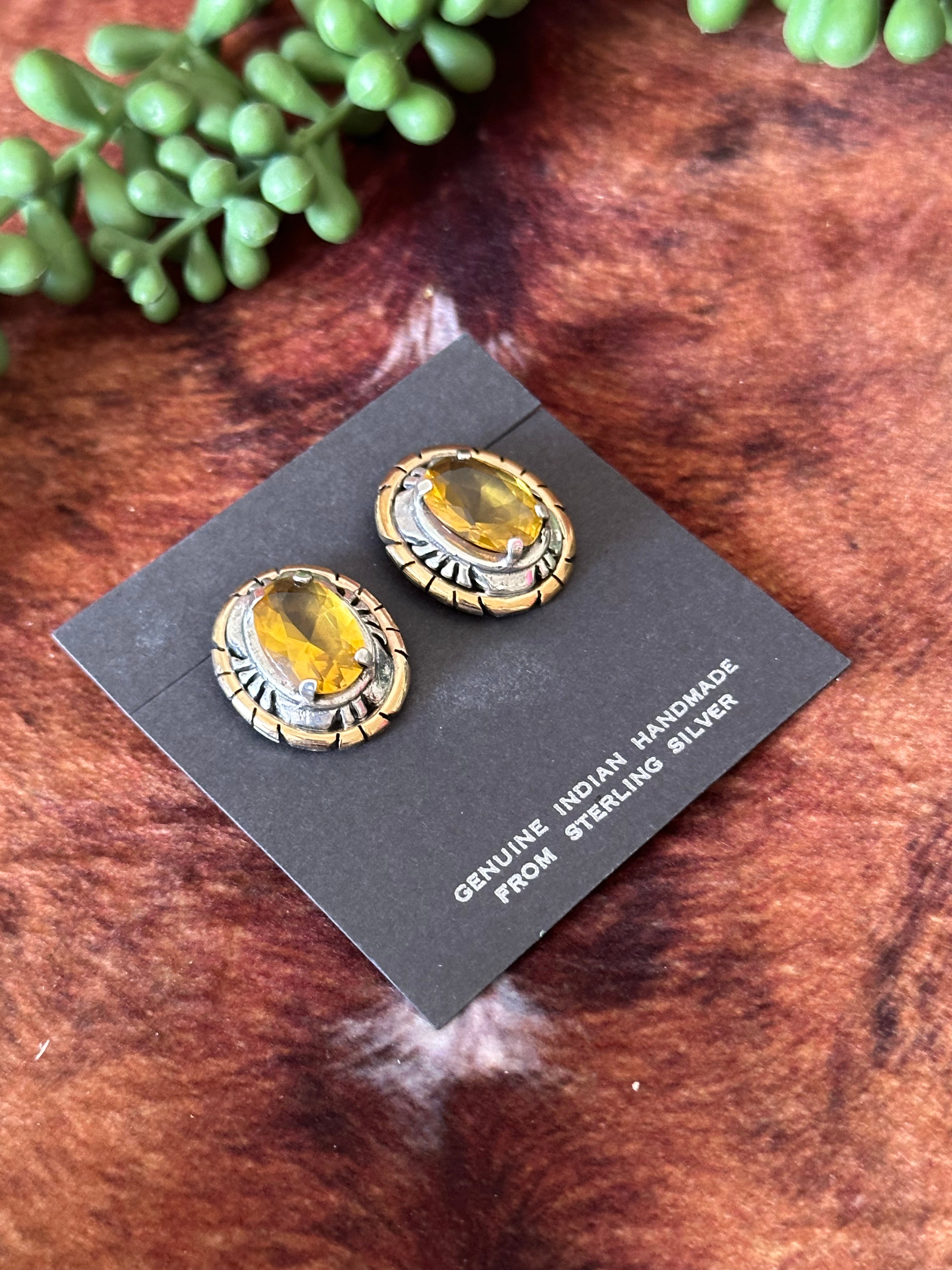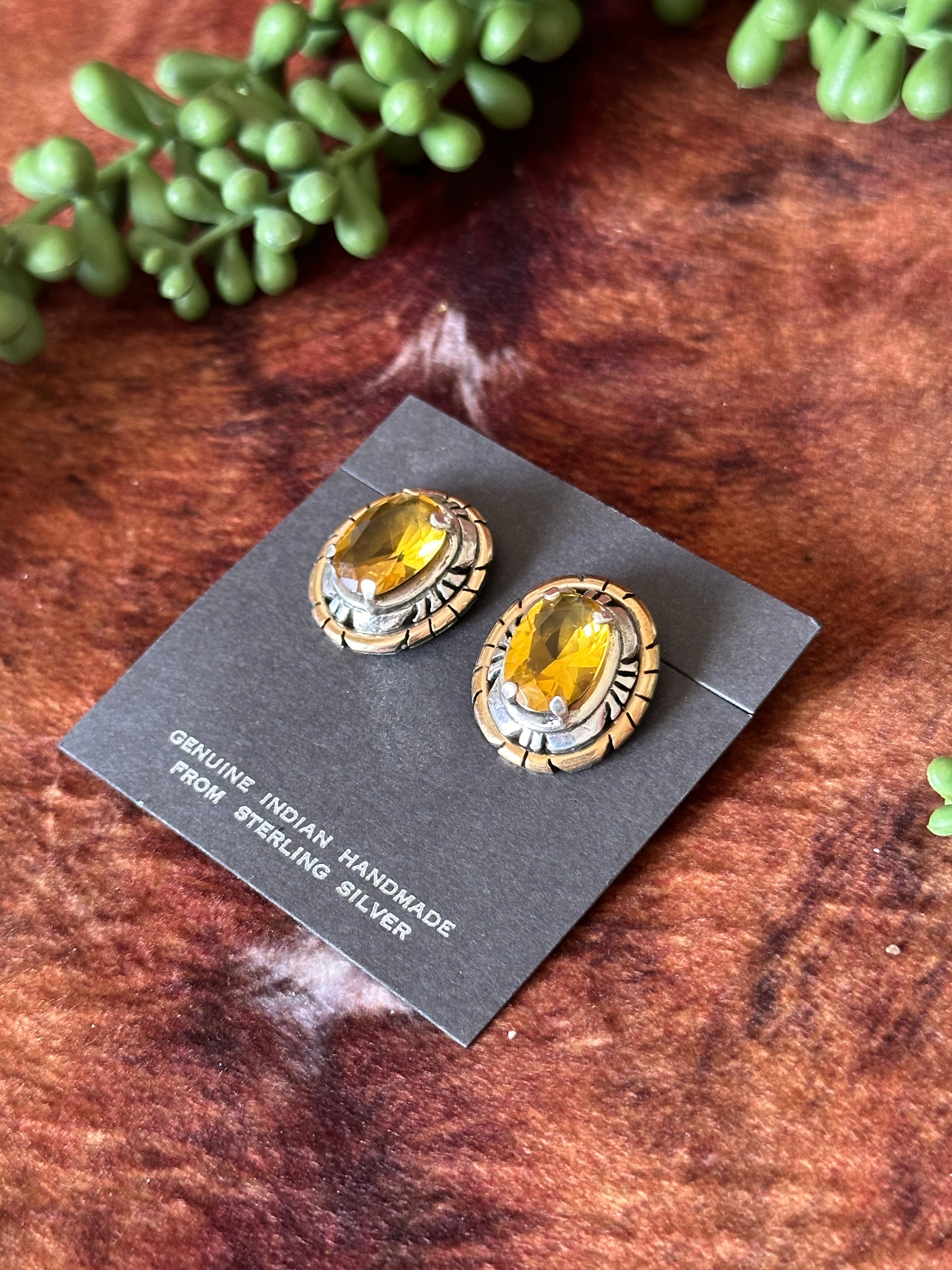 Russel Sam Citrine Stone & Sterling Silver Post Earrings