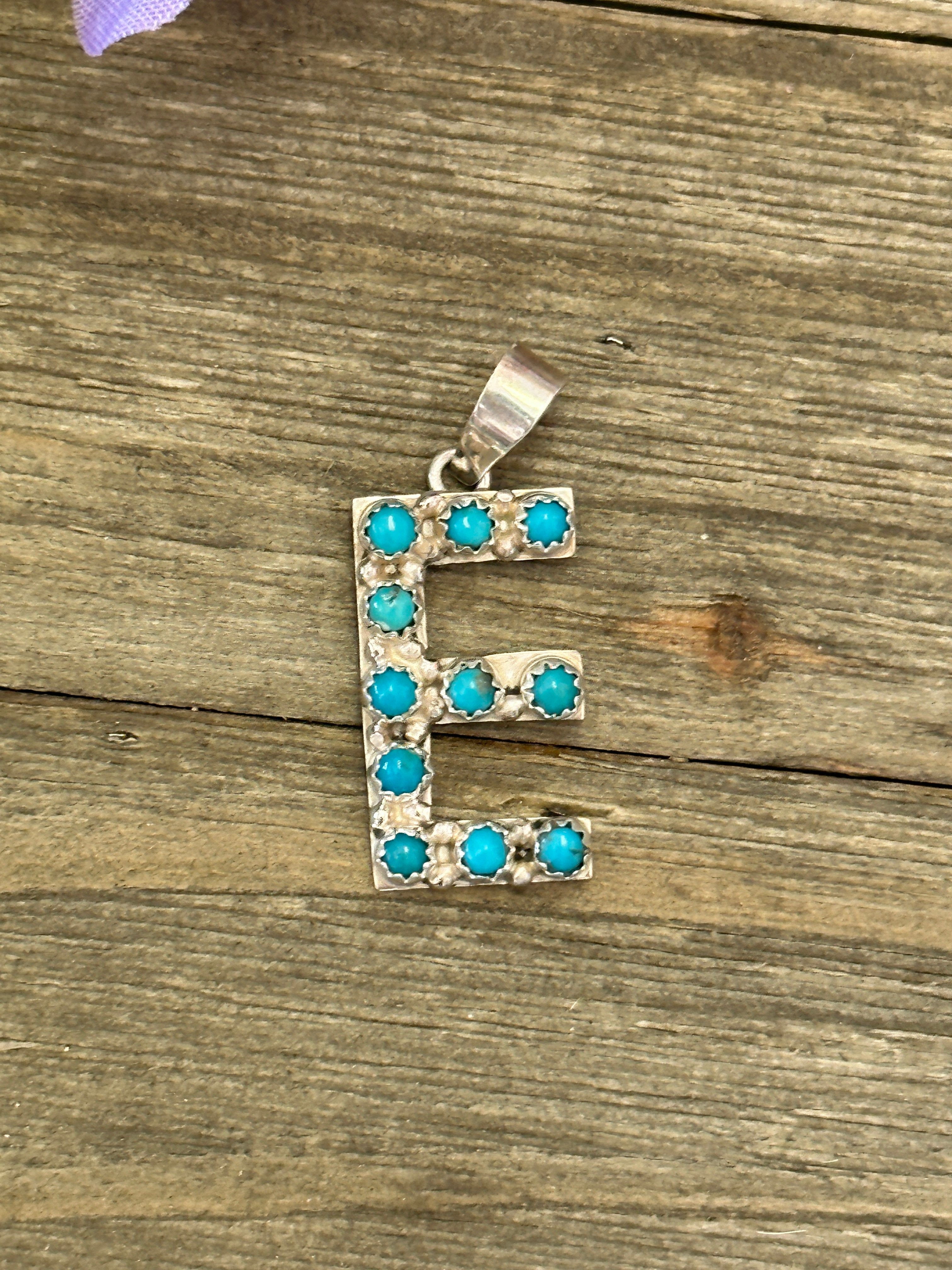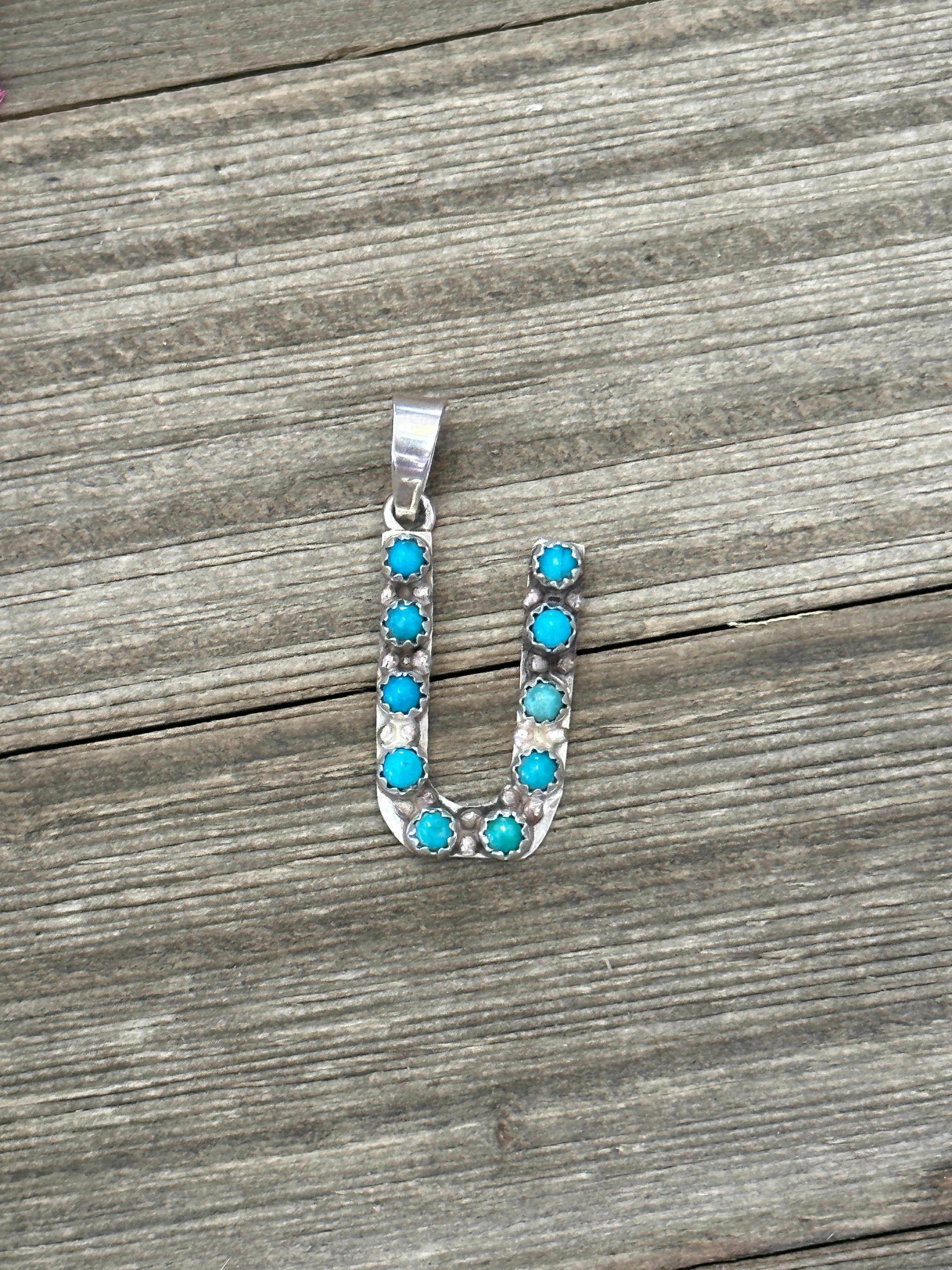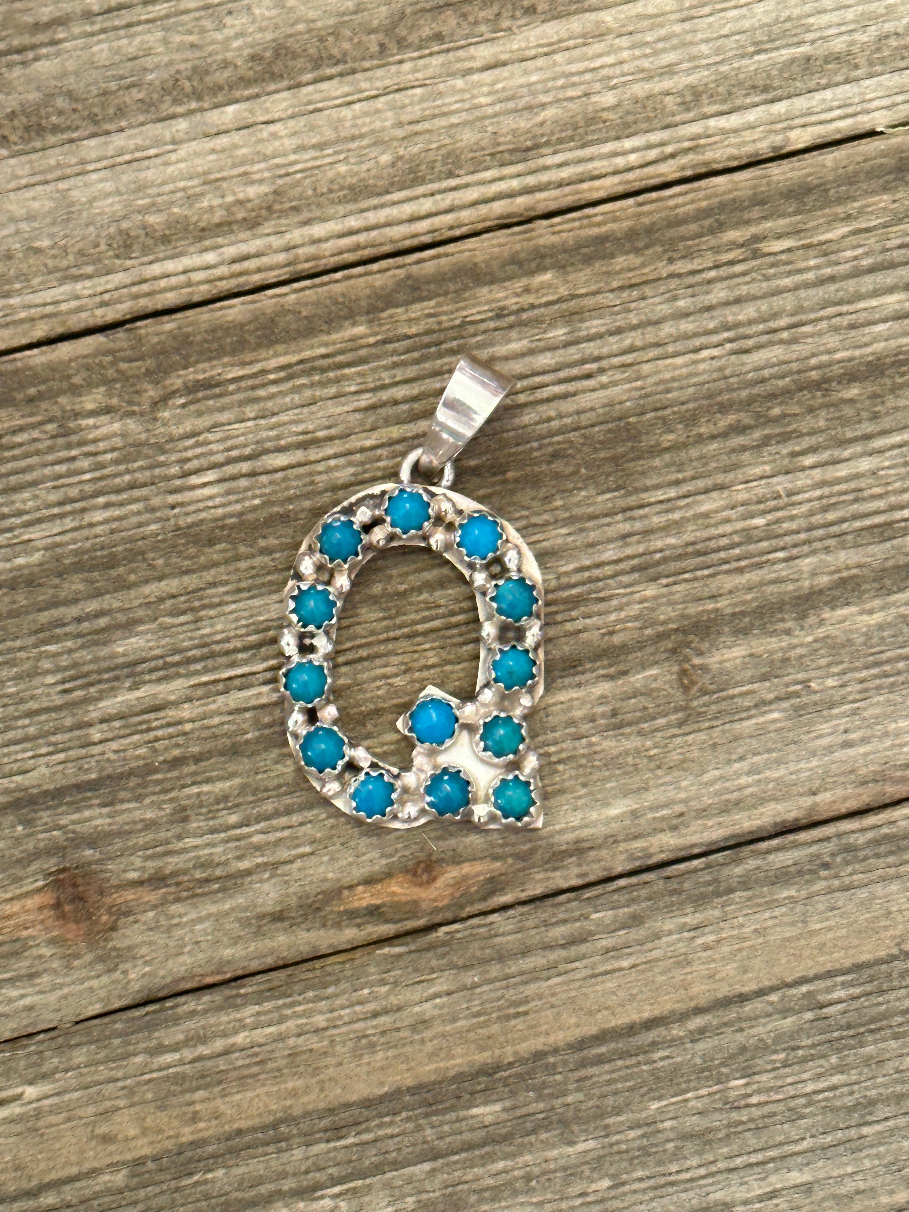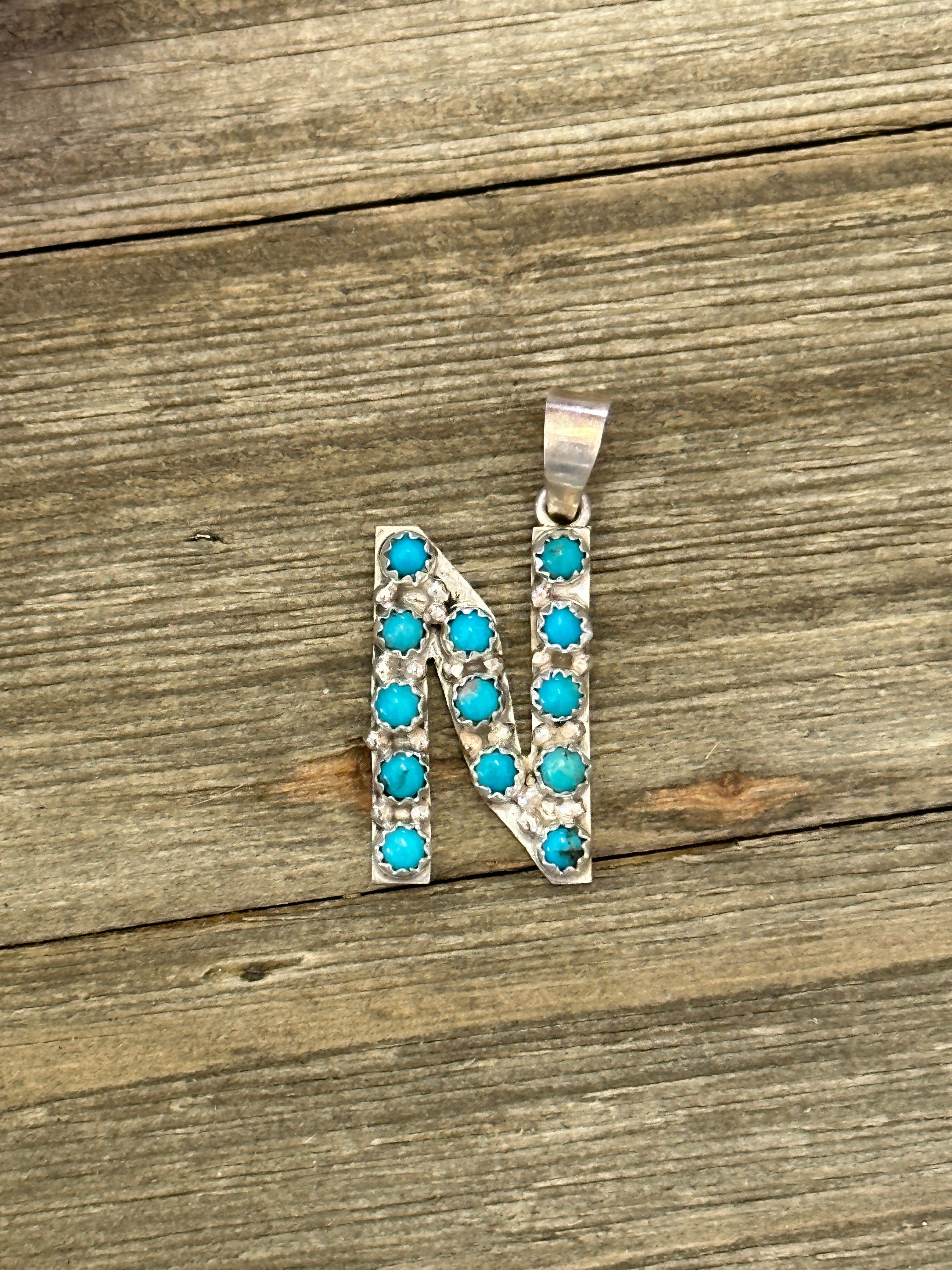 Scott Skeets Kingman Turquoise & Sterling Silver Letter Pendant