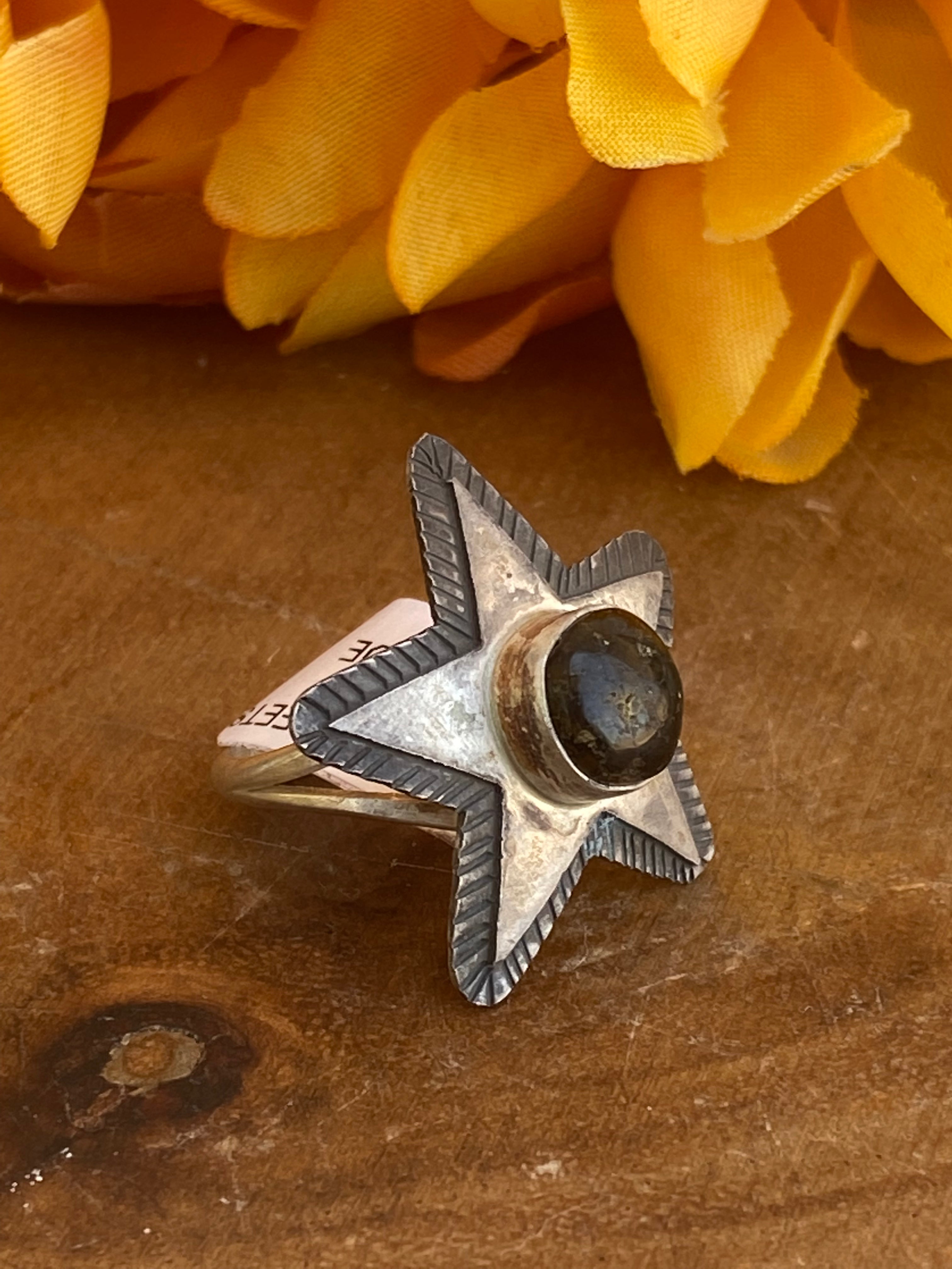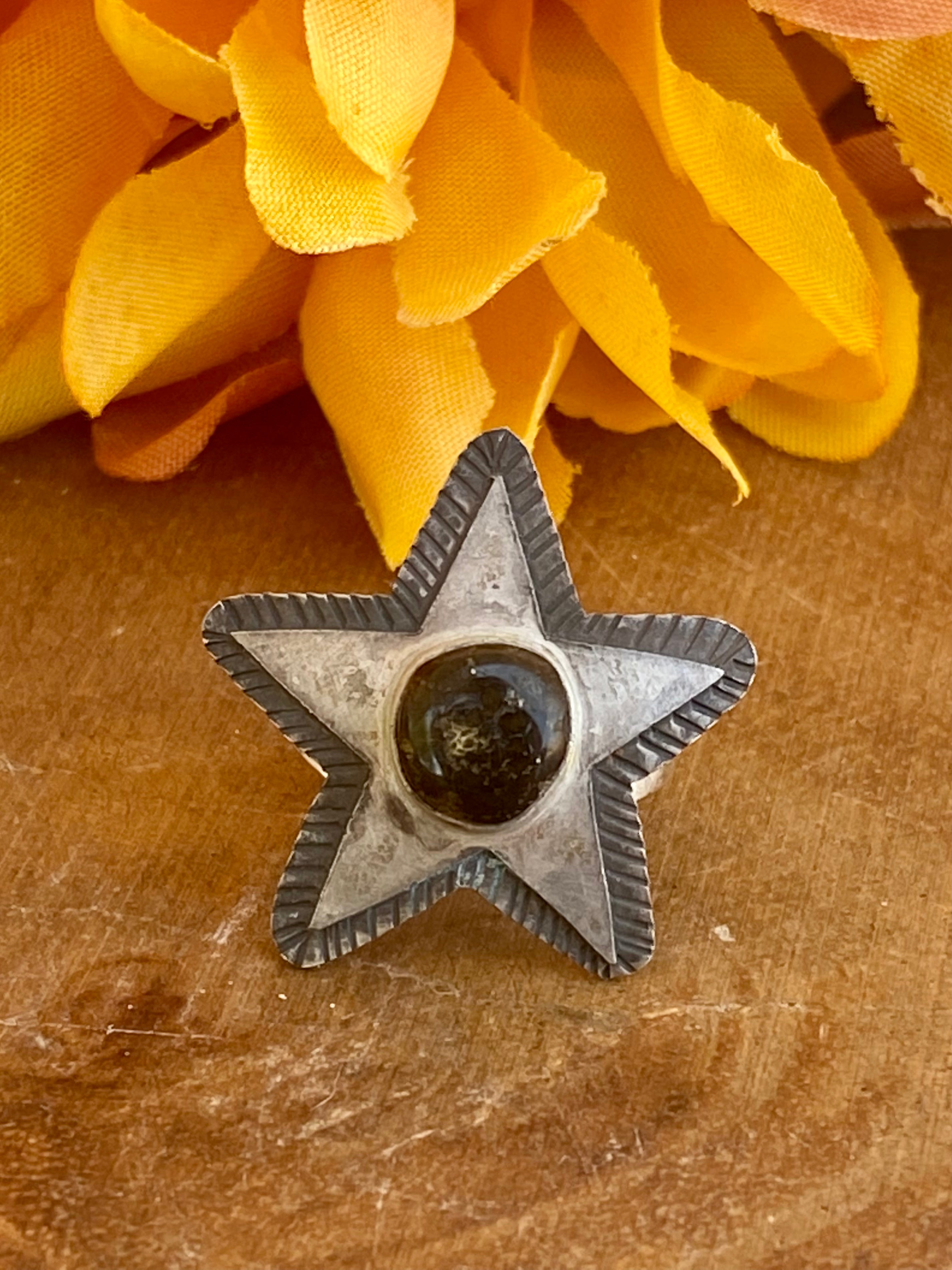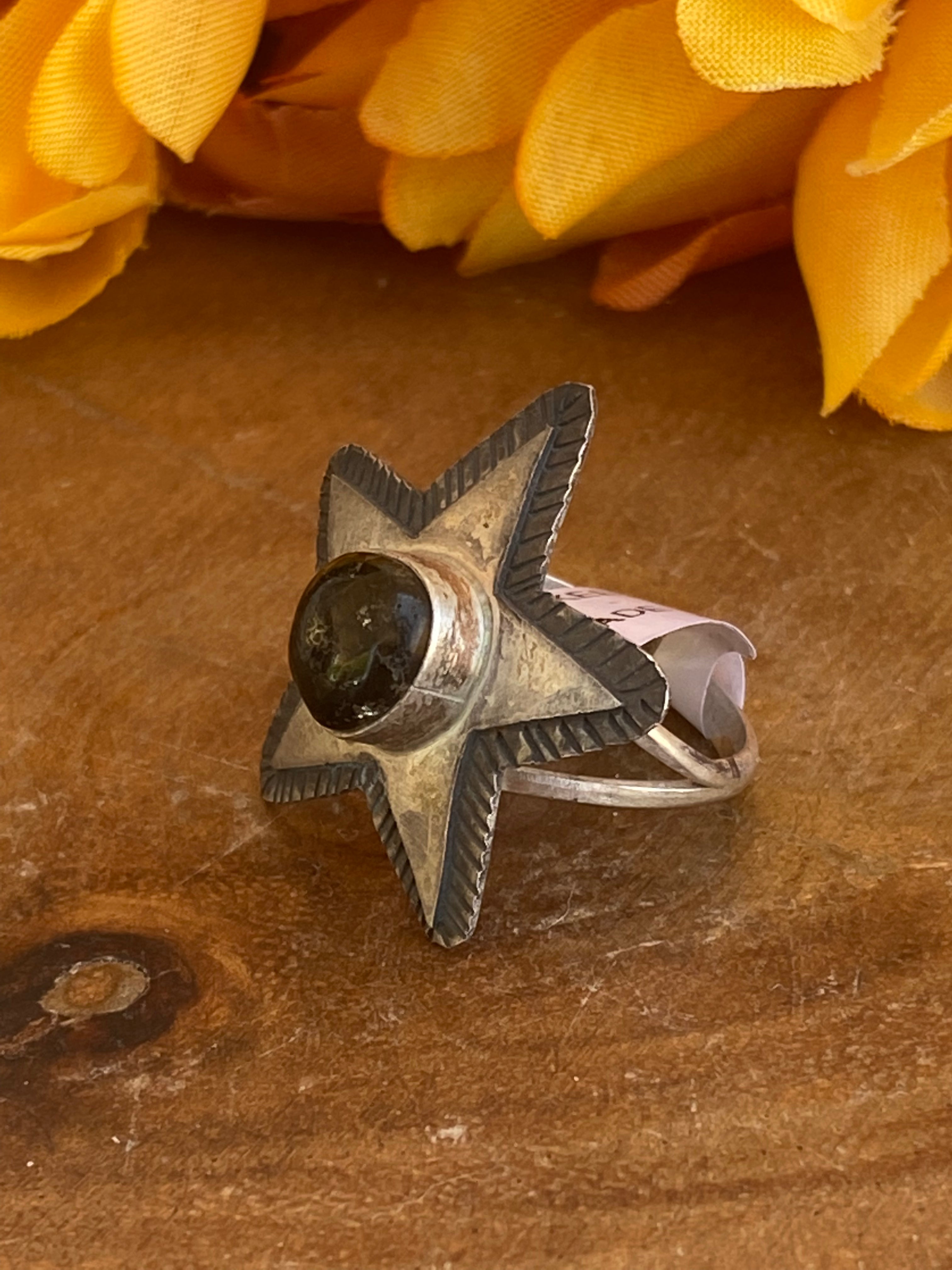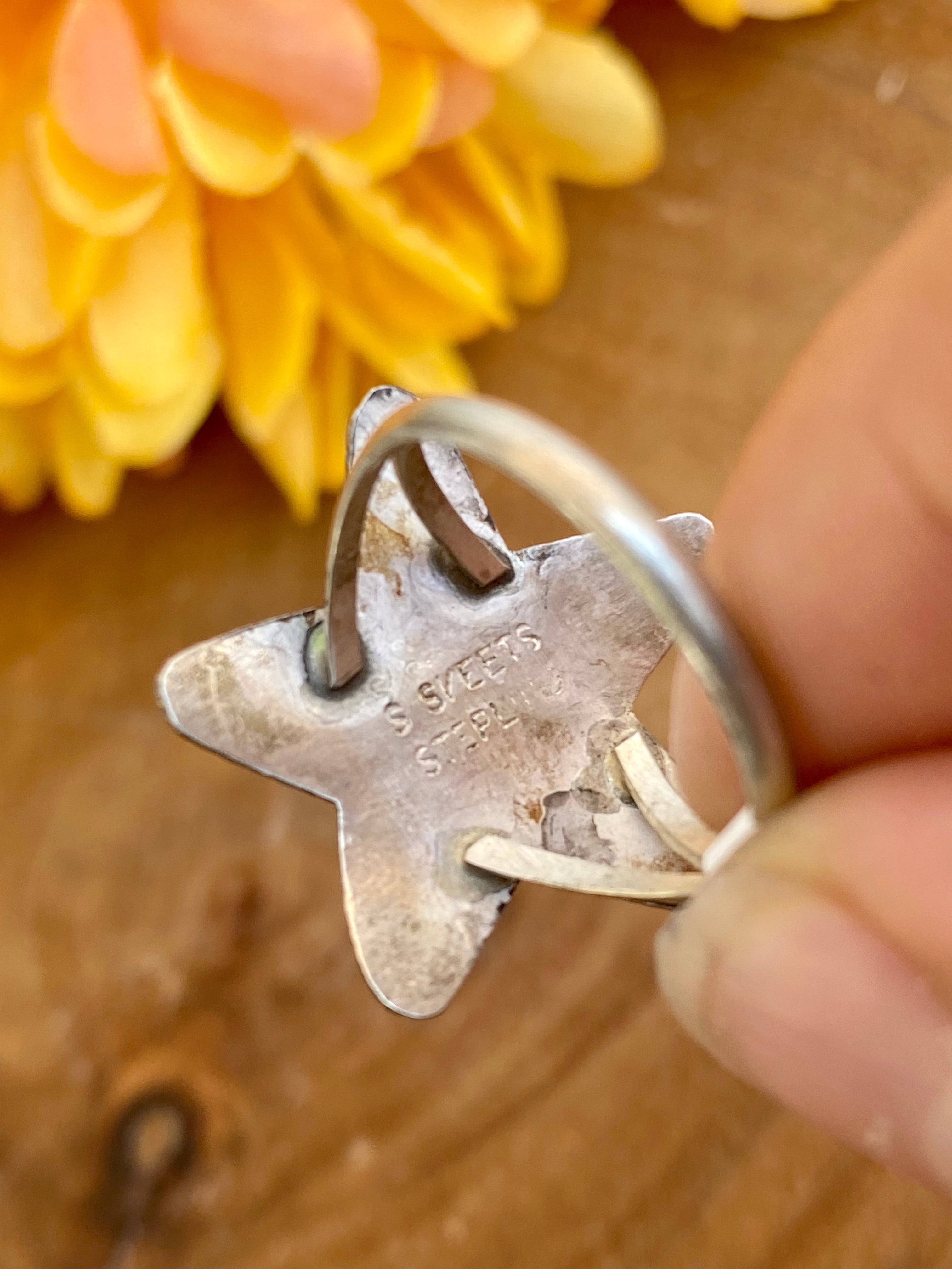 Scott Skeets Tibetan Turquoise & Sterling Silver Star Ring Size 6.75