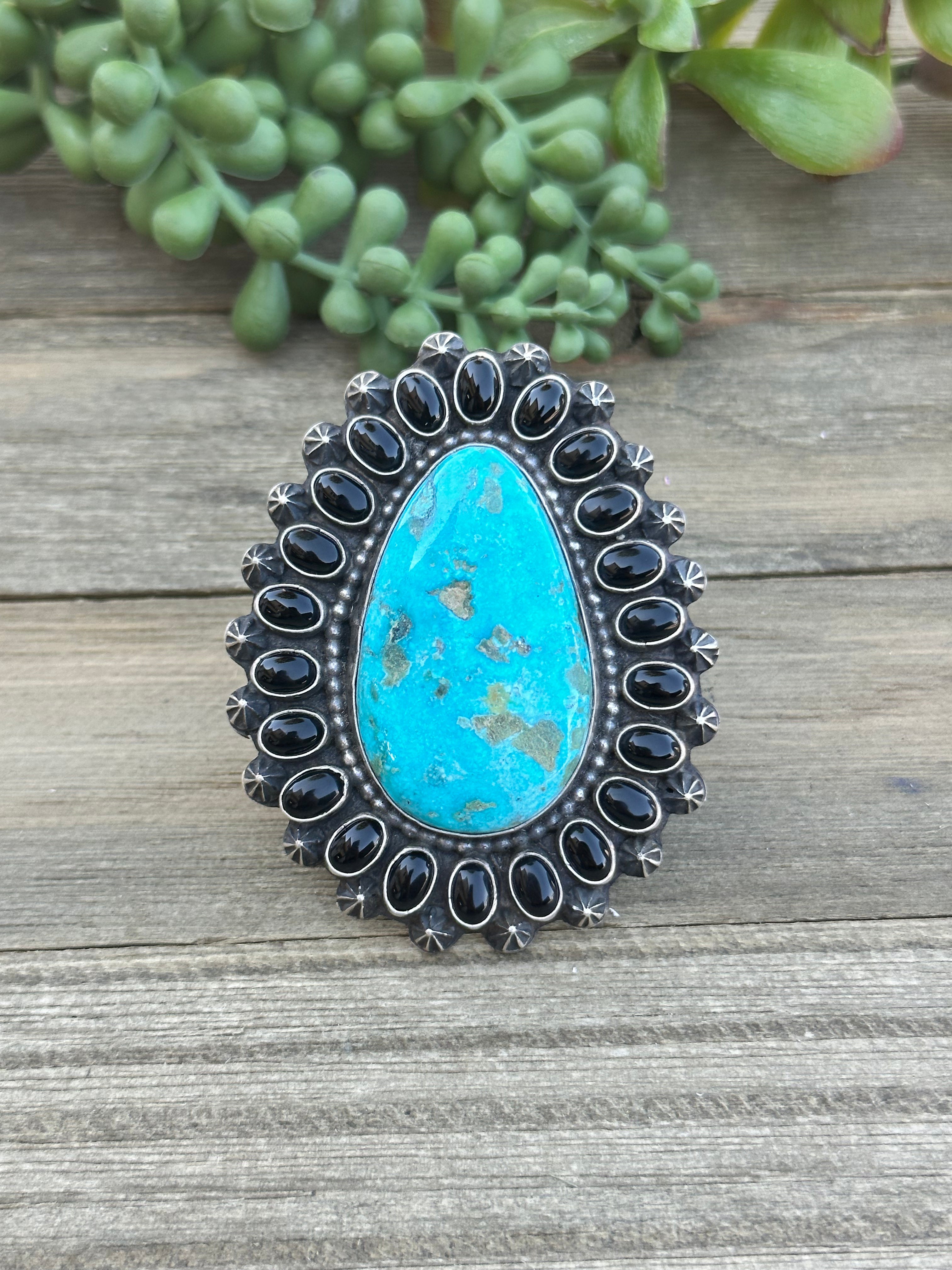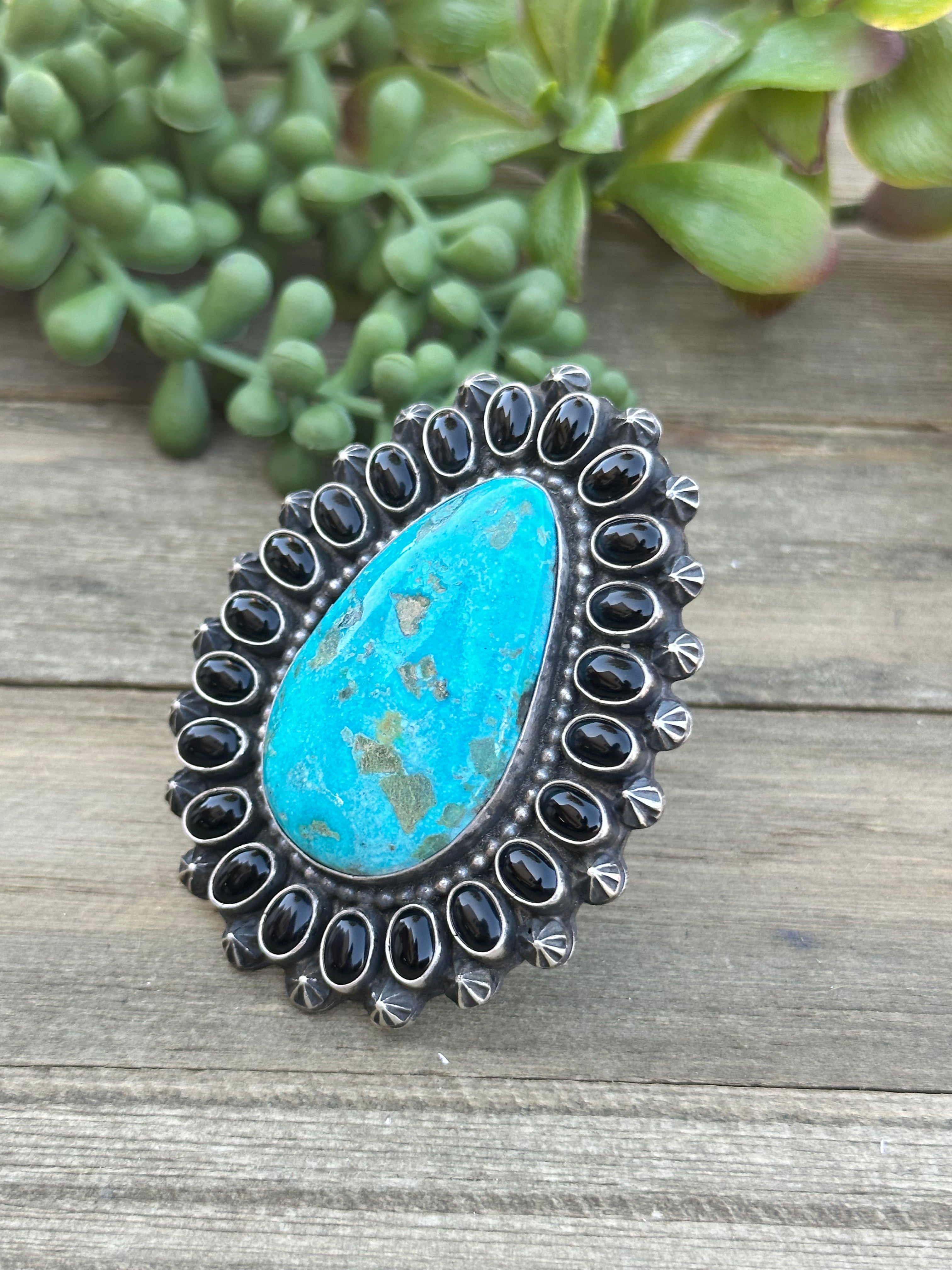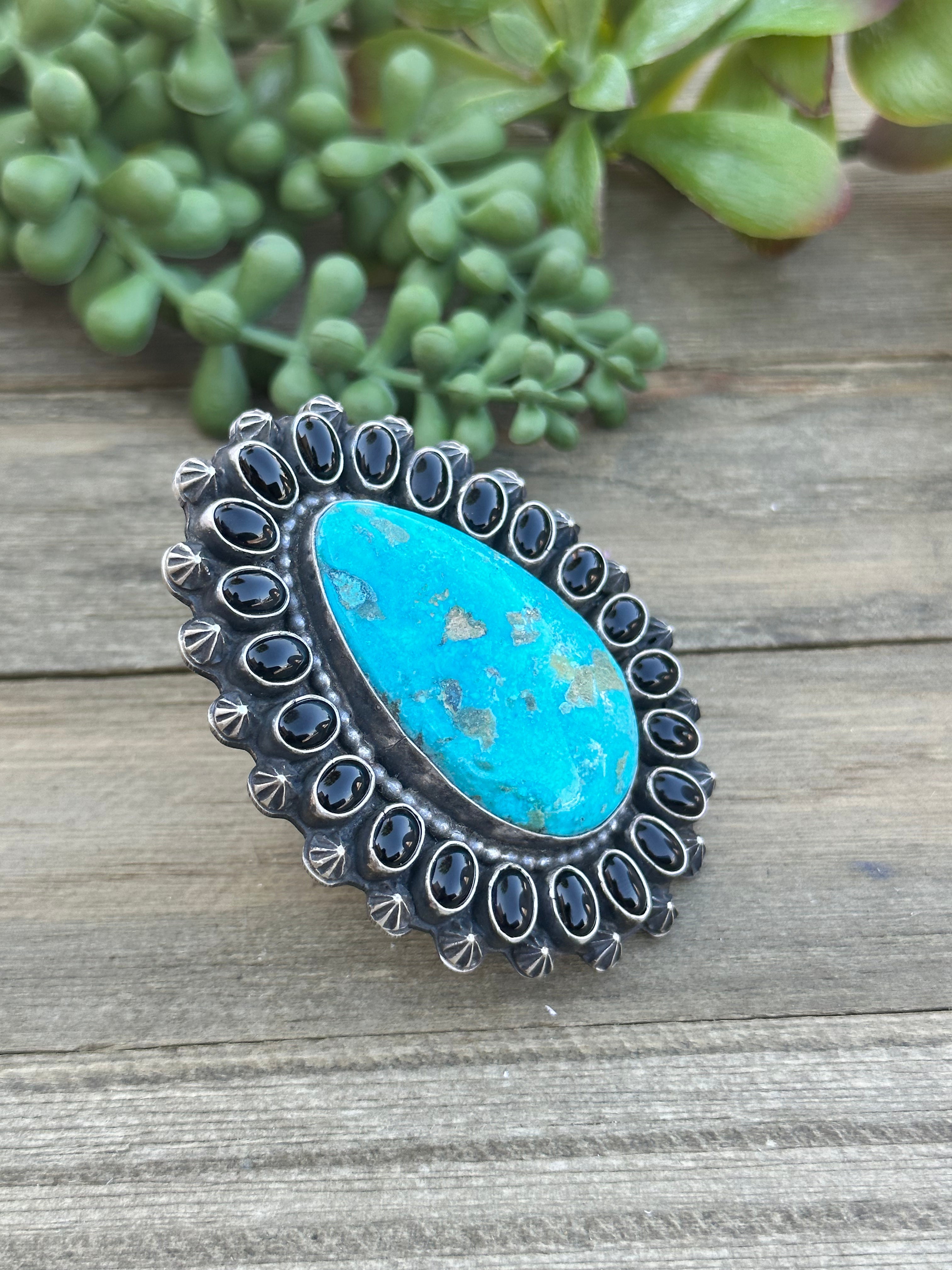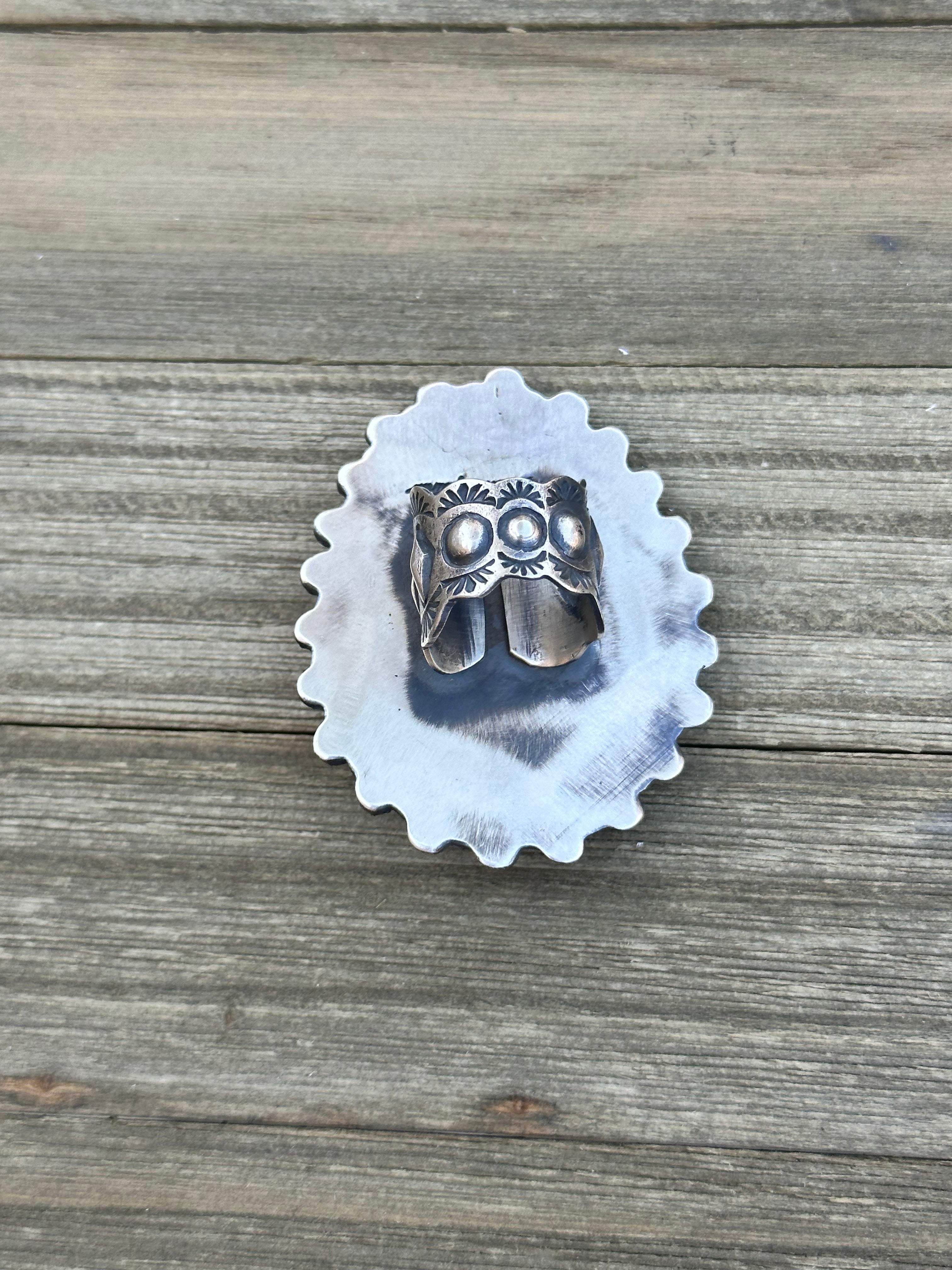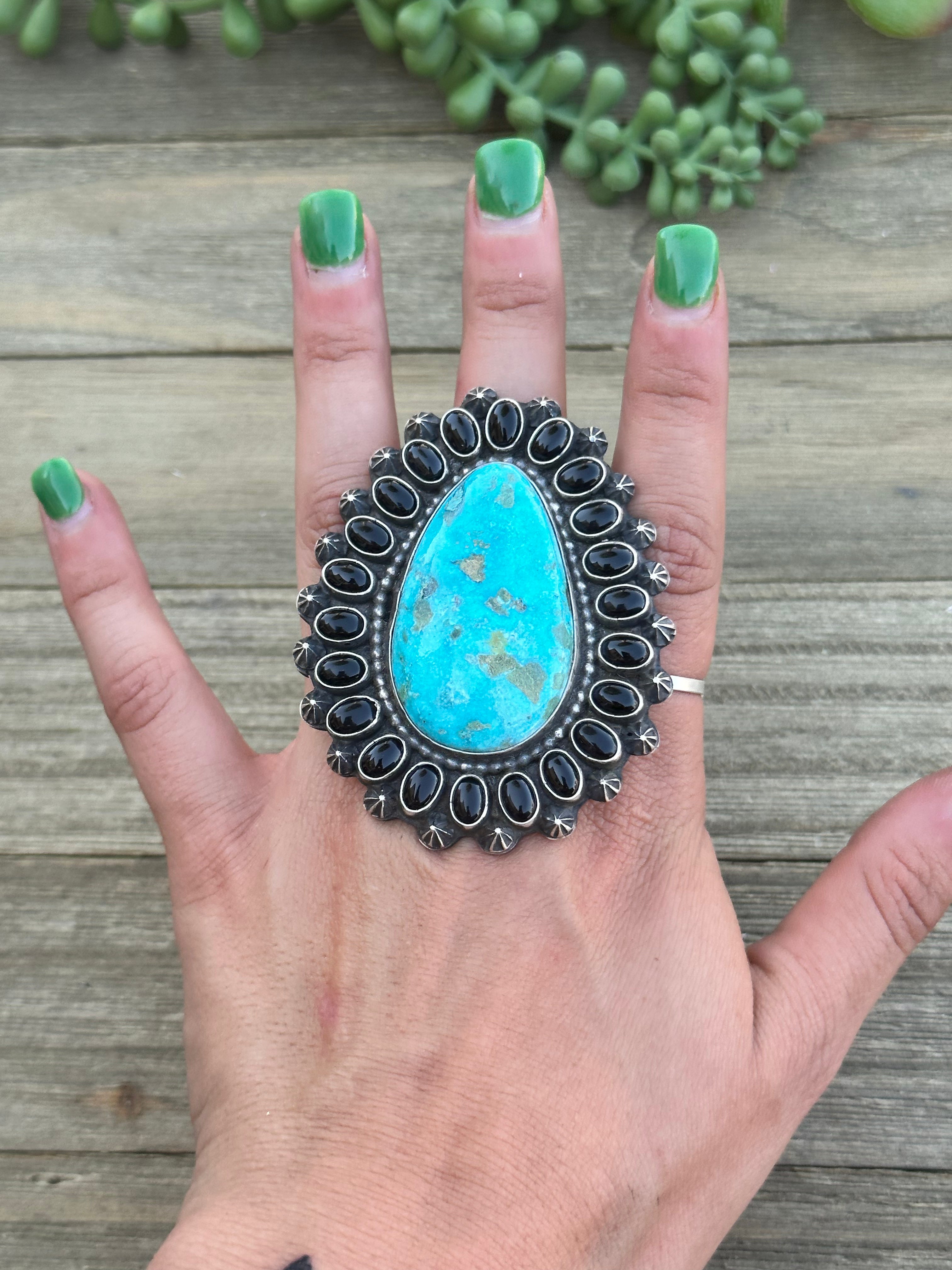 This is an awesome ring. Shawn Coyatinets Multi Stone & Sterling Silver Ring Size 8.5. It measures 2 5/8 inches long and 2 1/8 inches wide. Signed by the artist and stamped sterling silver.