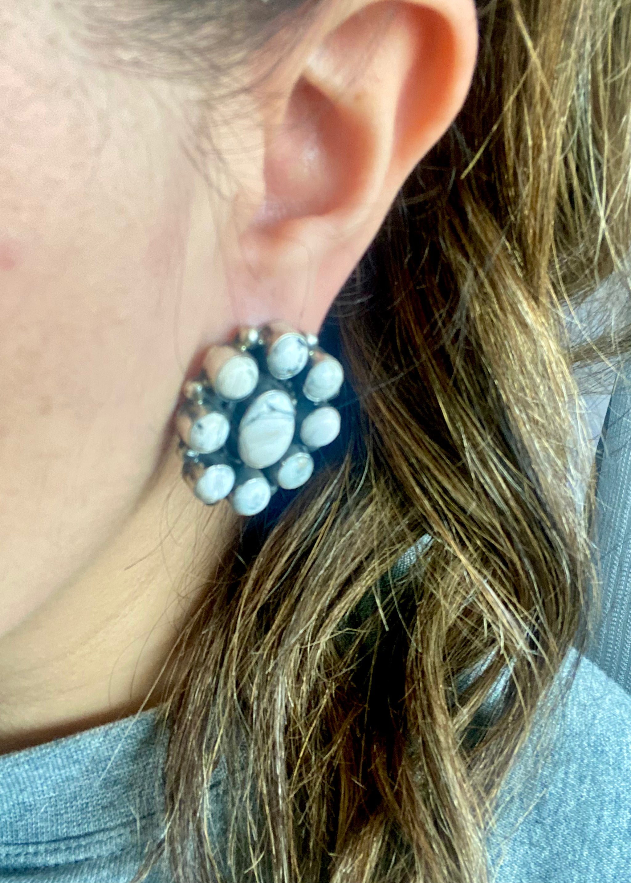 Sheila Becenti White Buffalo & Sterling Silver Post Cluster Earrings