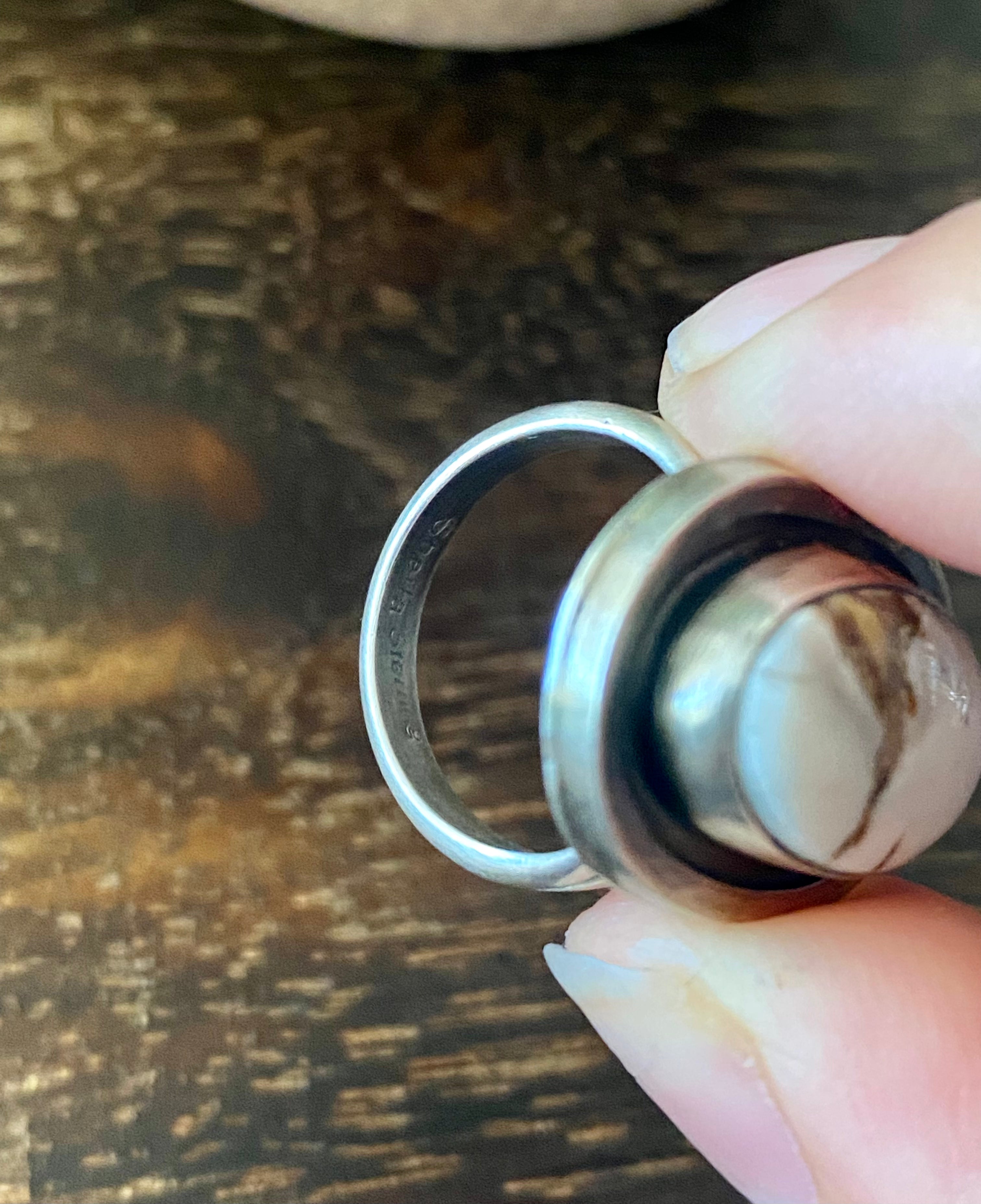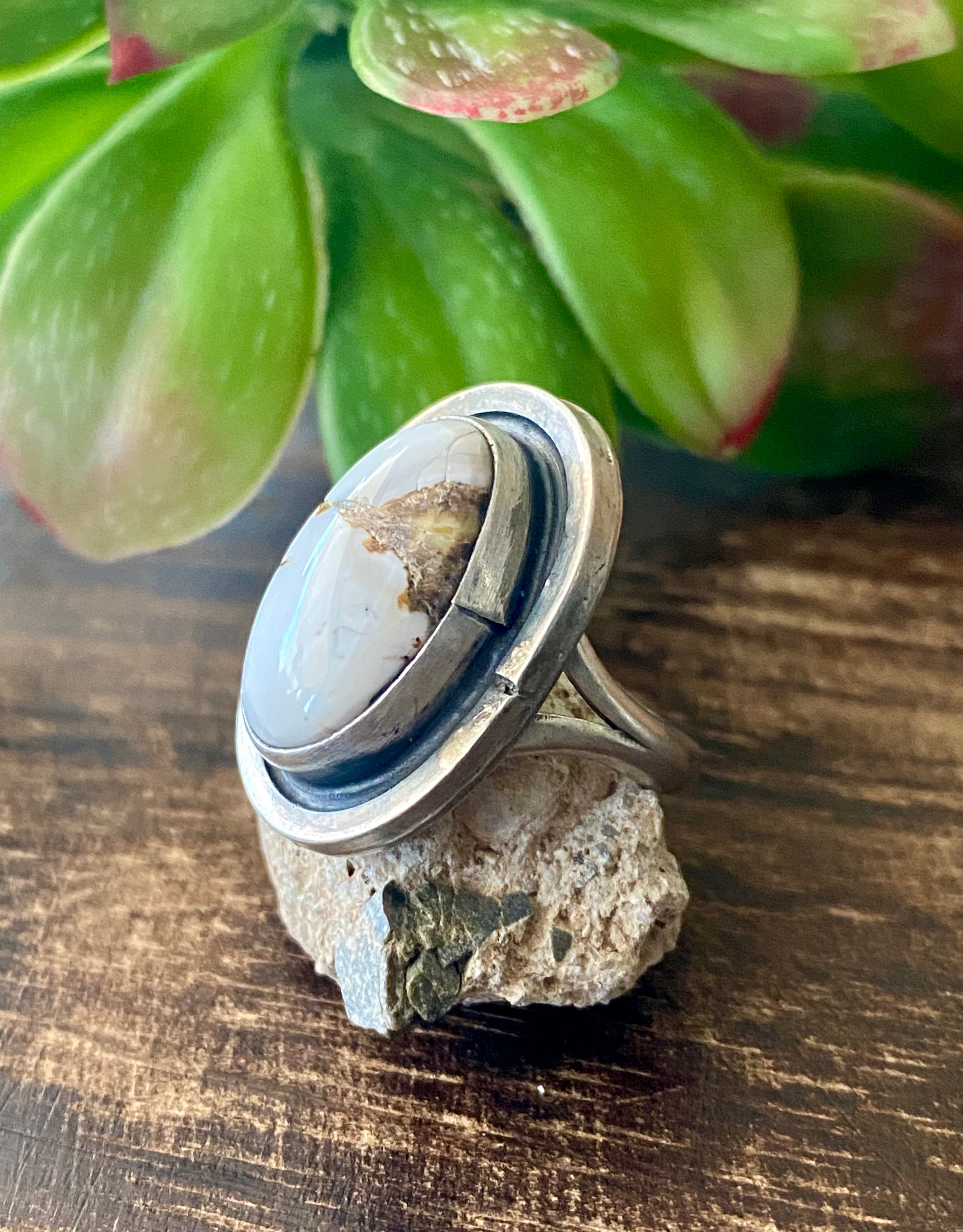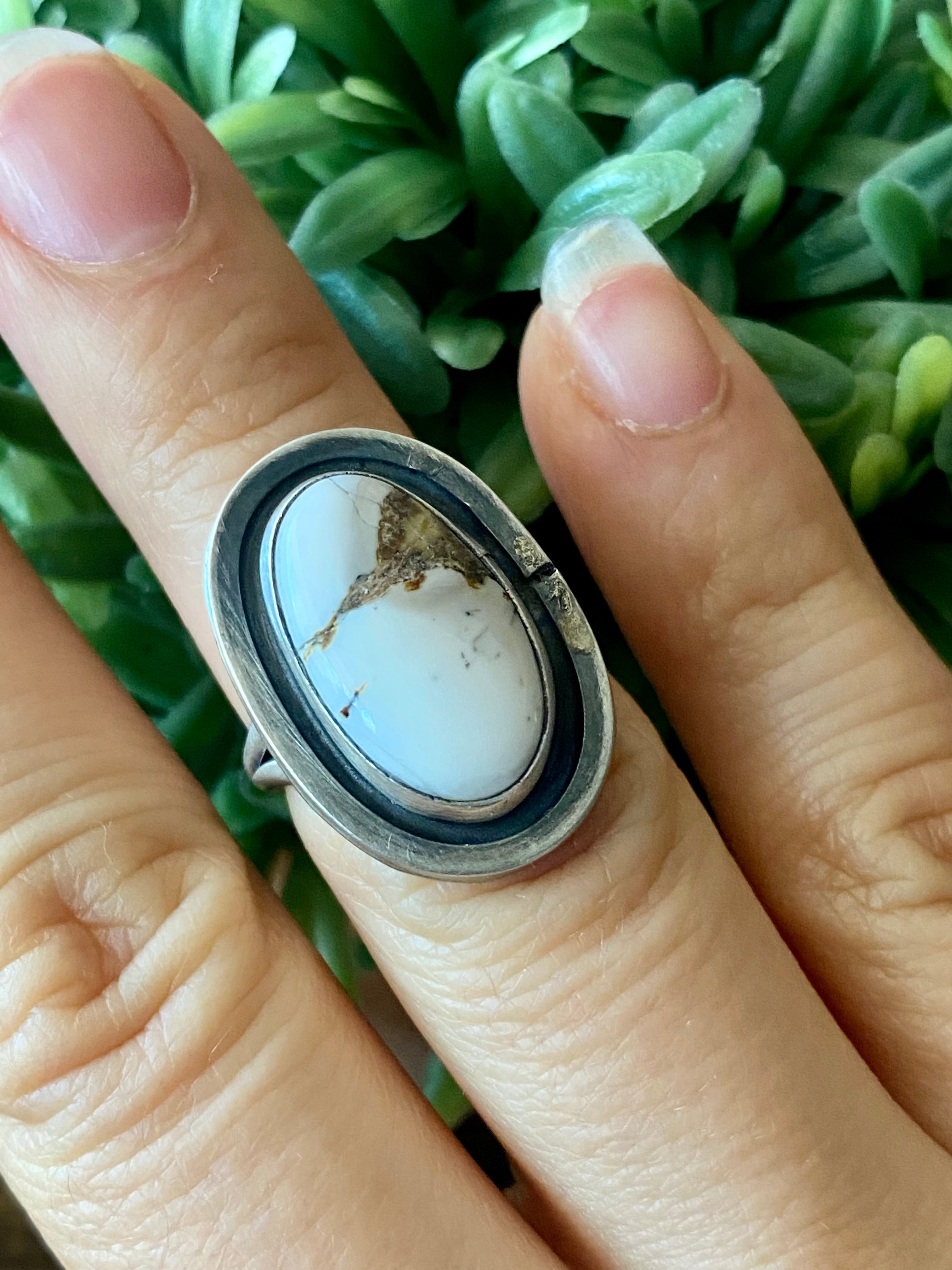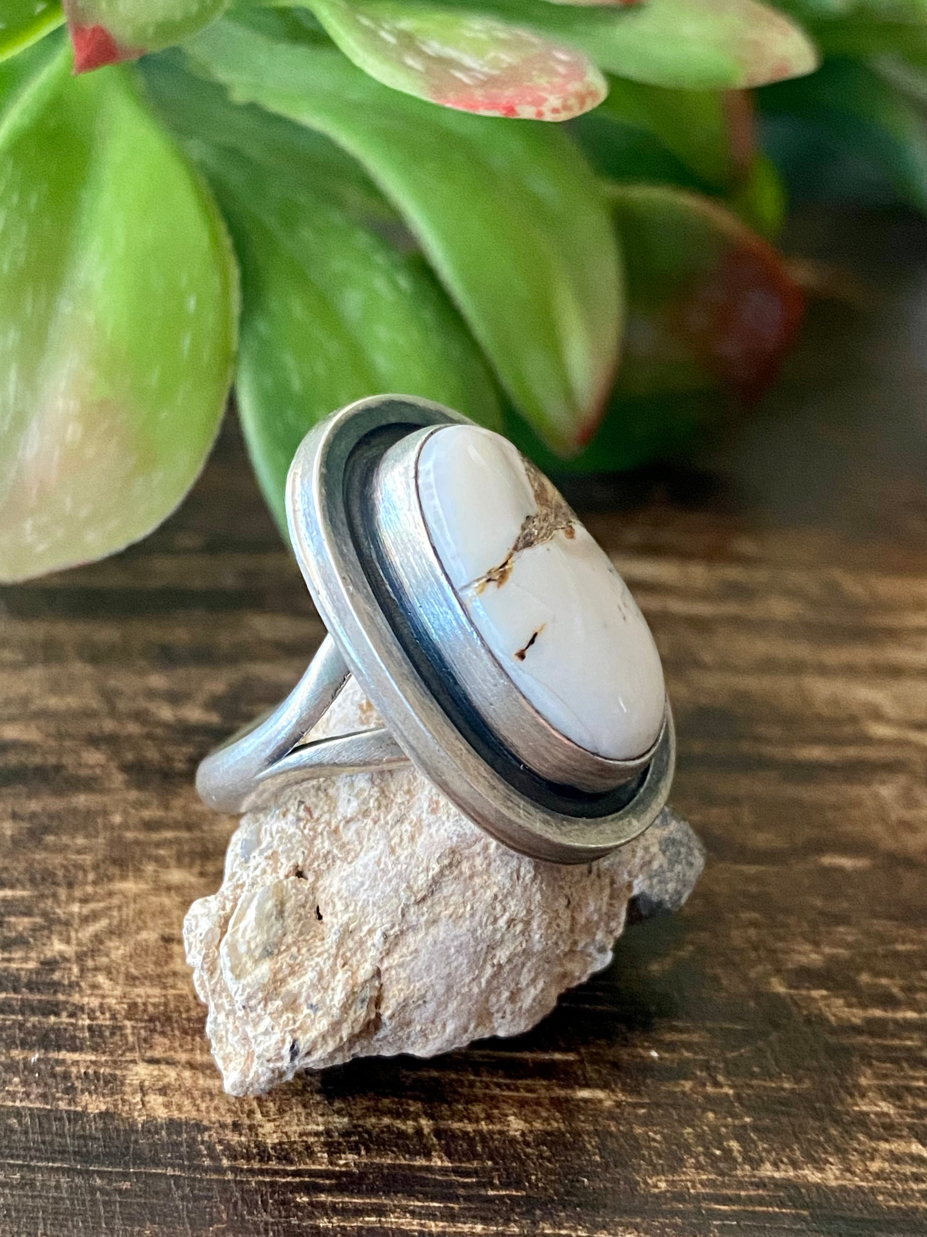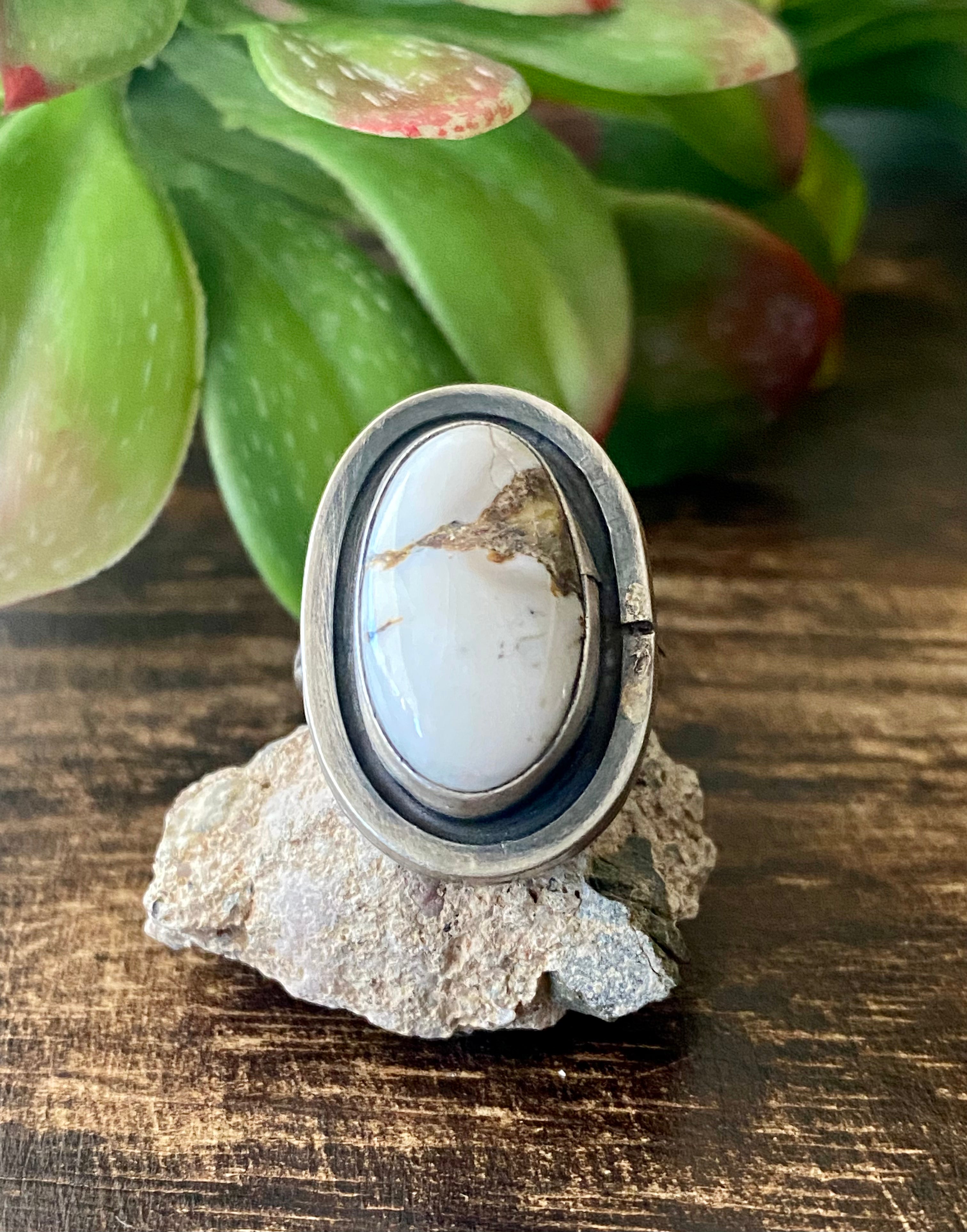 Sheila Becenti White Buffalo & Sterling Silver Ring Size 6.25