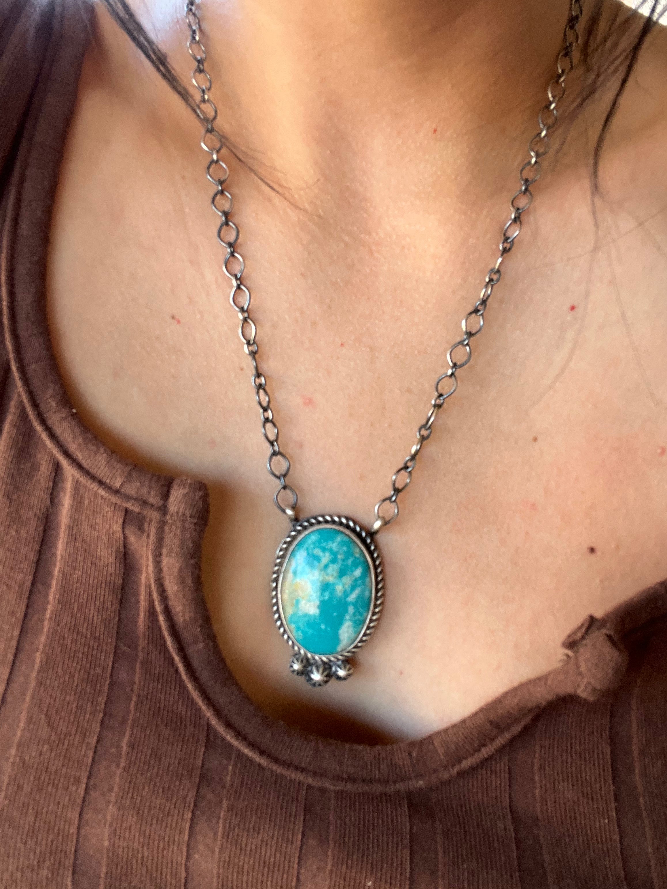 Shelia Becenti Kingman Turquoise & Sterling Silver Necklace