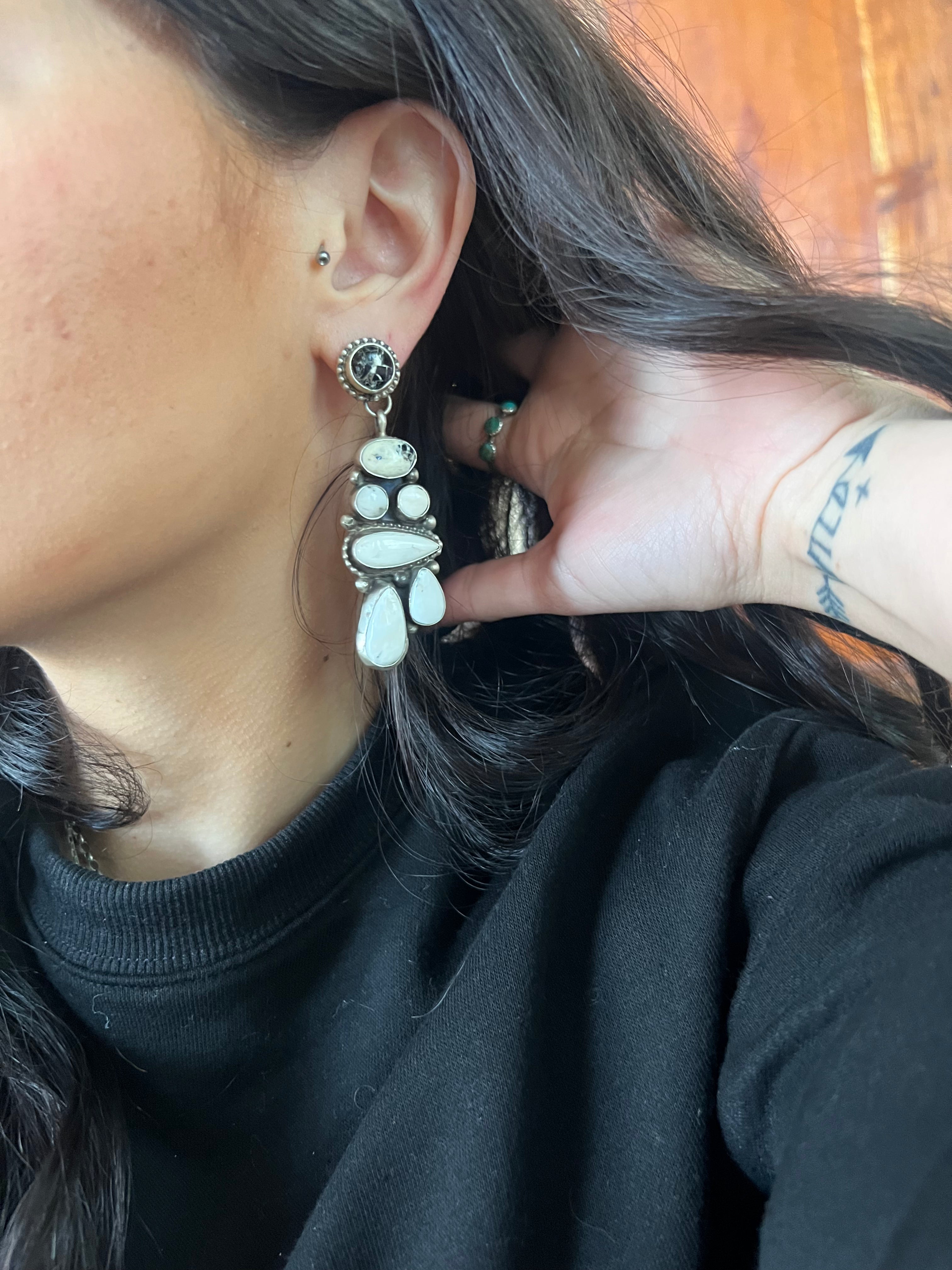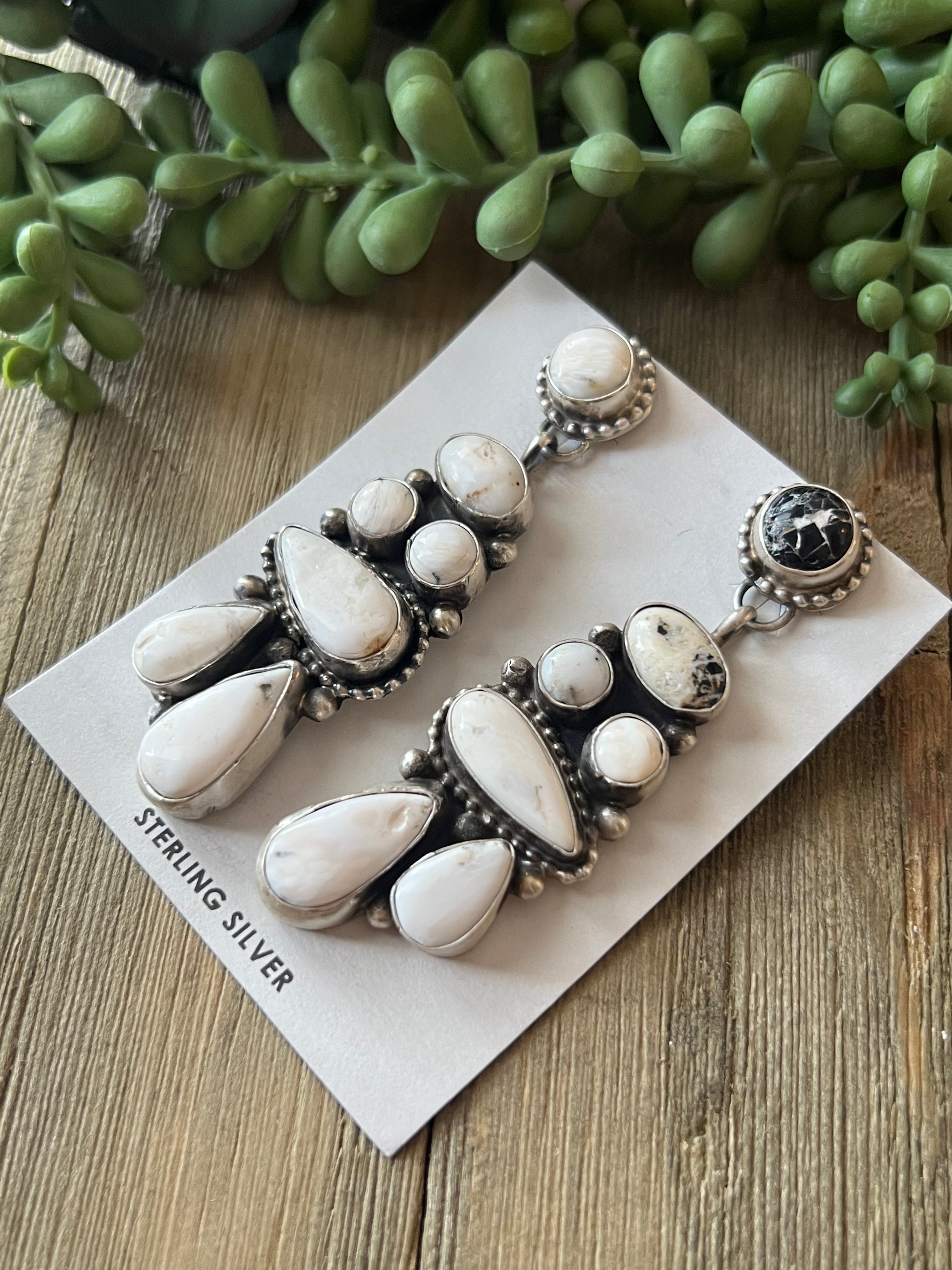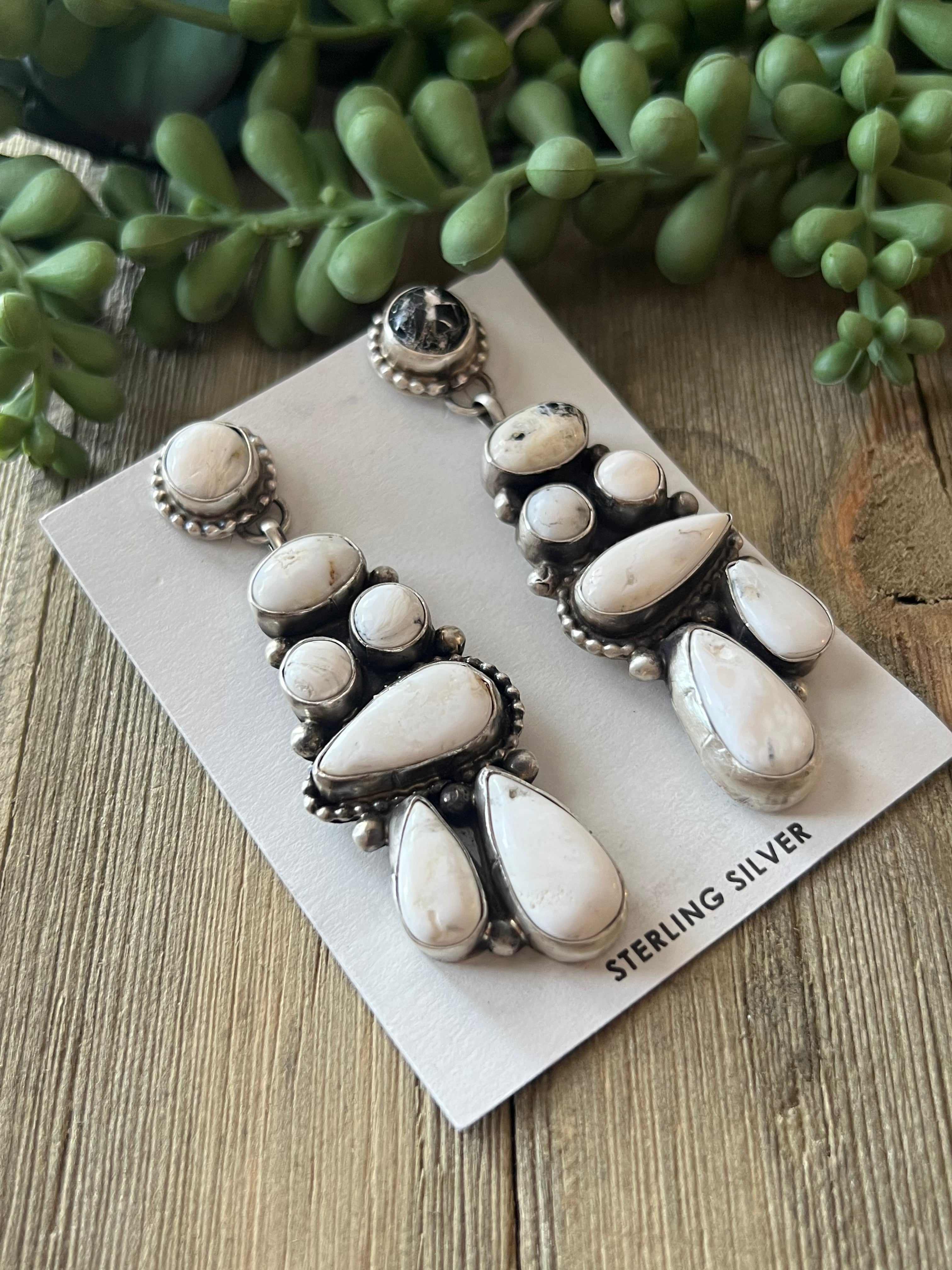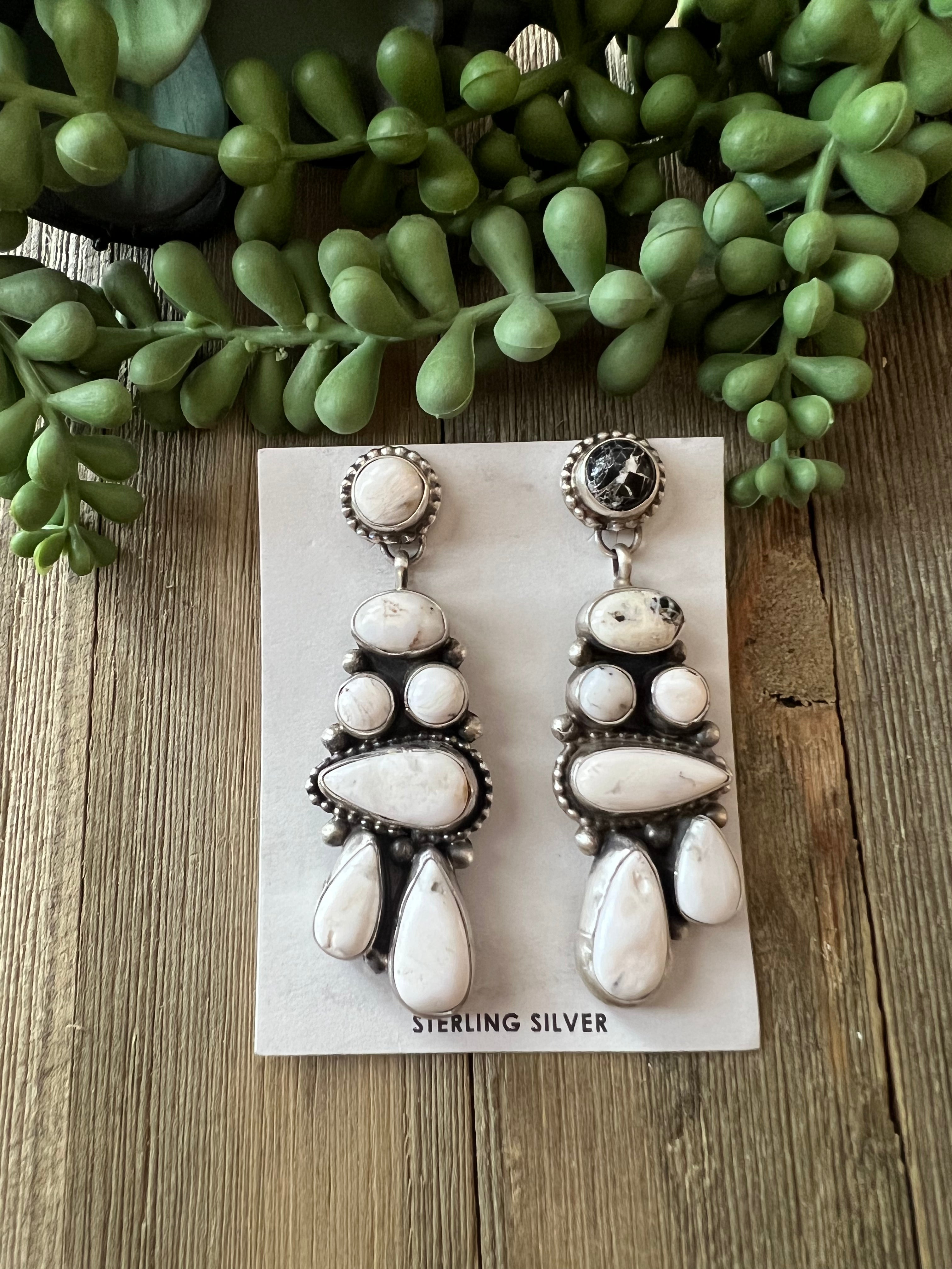 Shelia Becenti White Buffalo & Sterling Silver Post Dangle Earrings