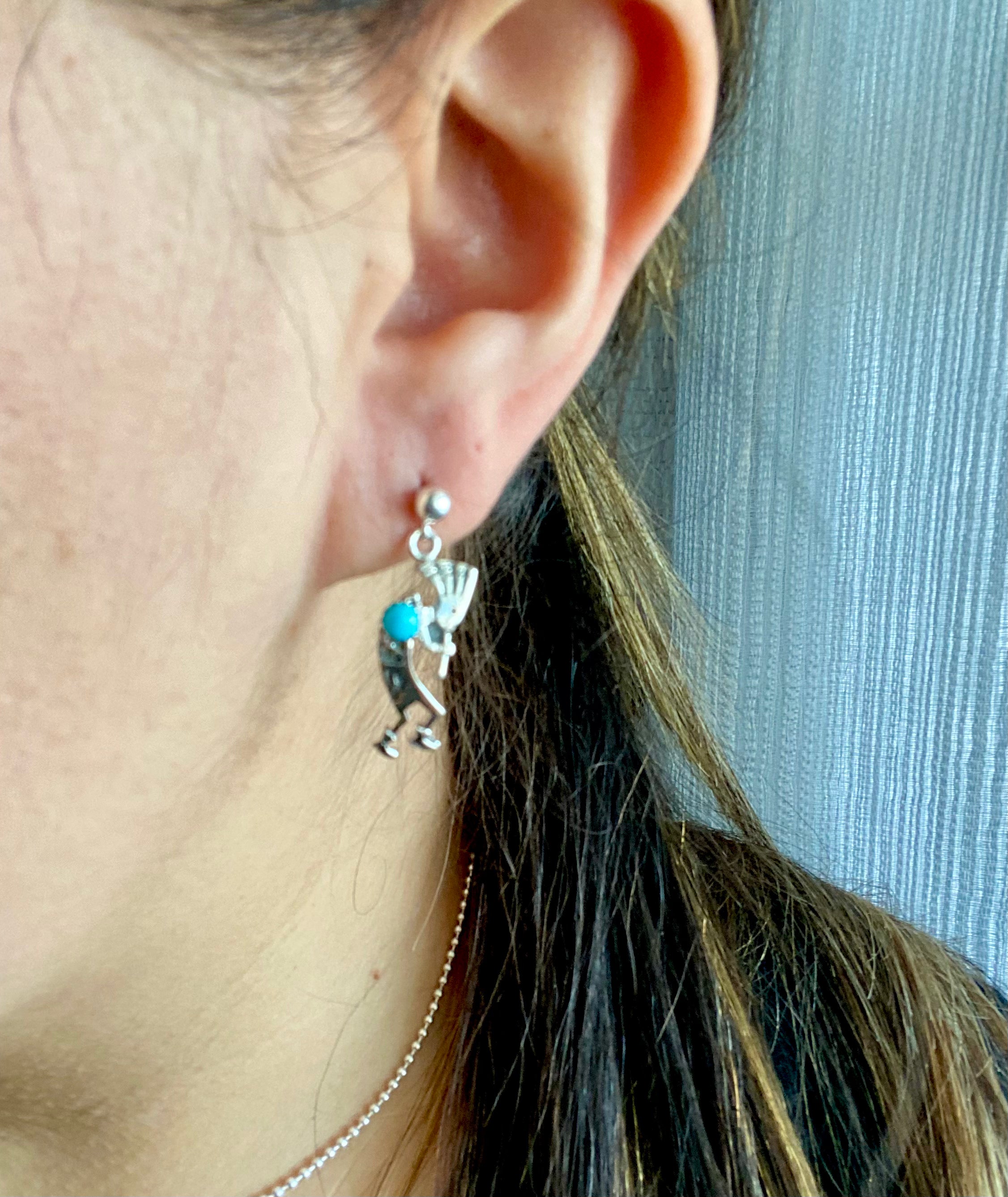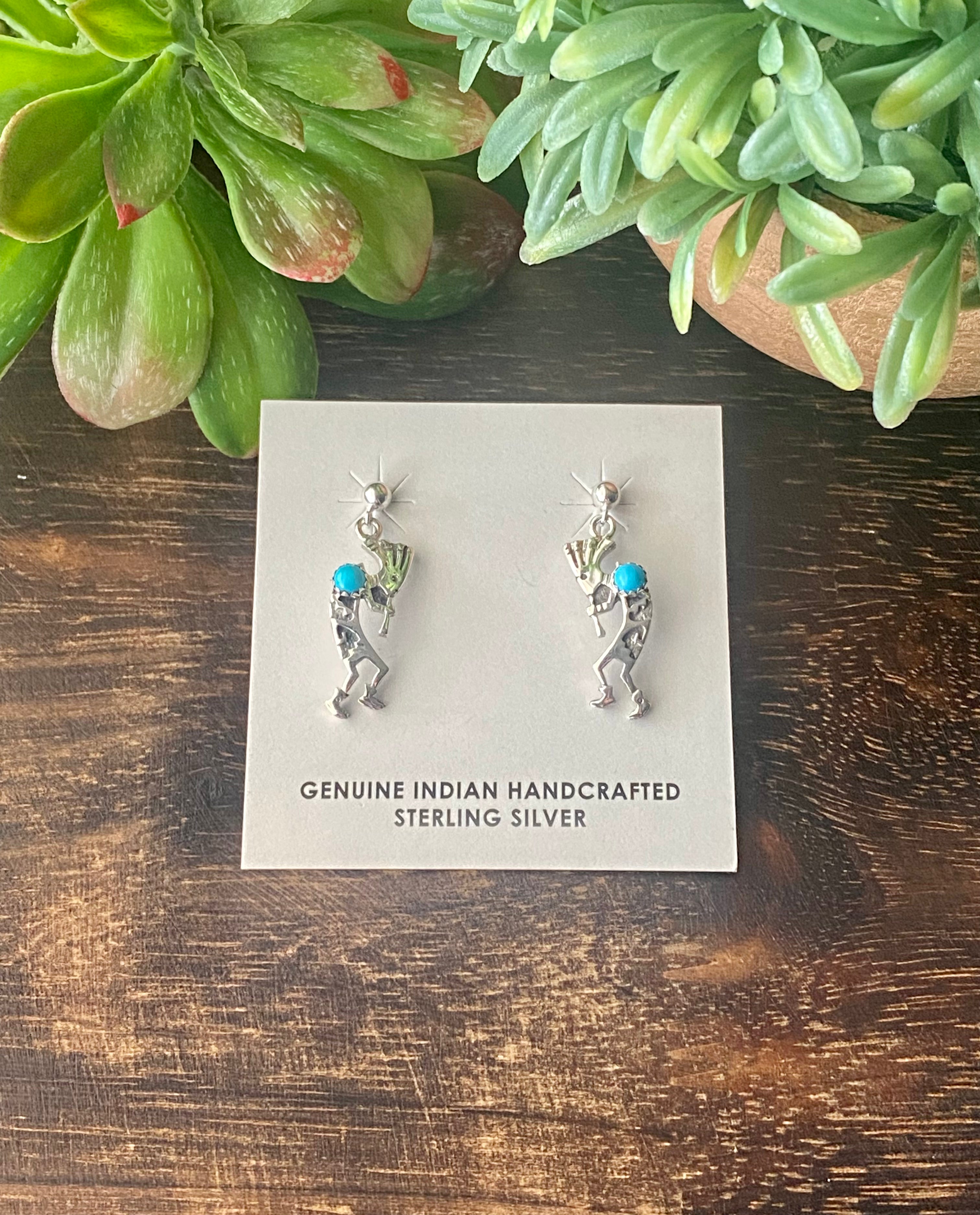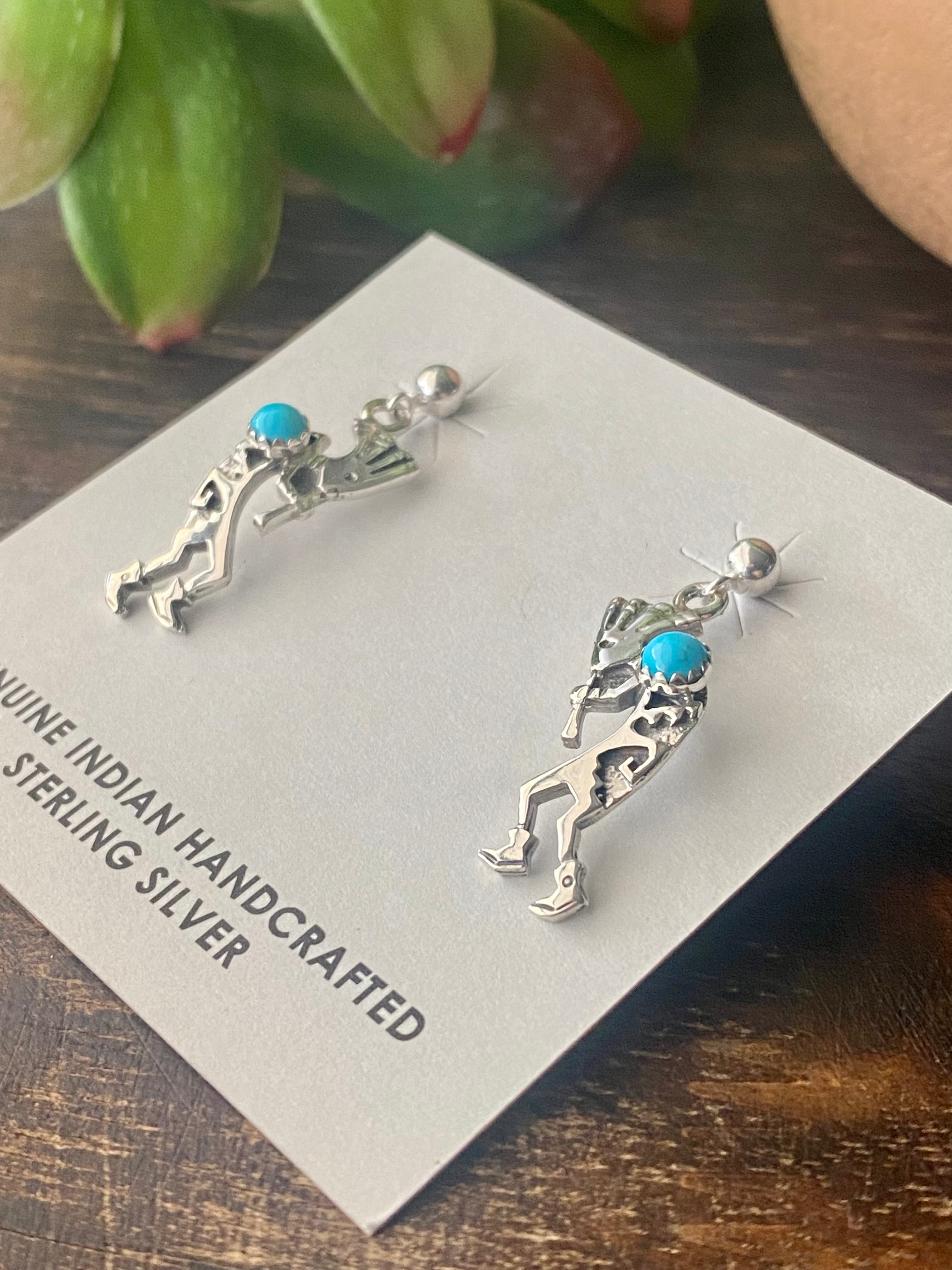 Shirley Henry Turquoise & Sterling Silver Kokopelli Post Dangle Earrings