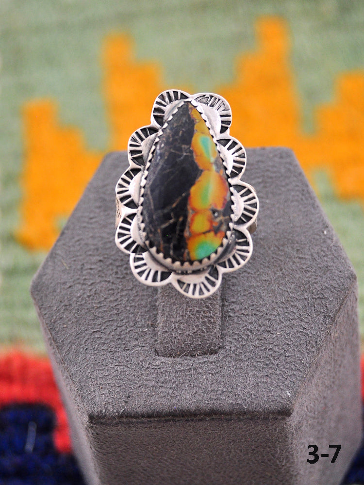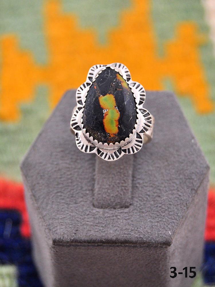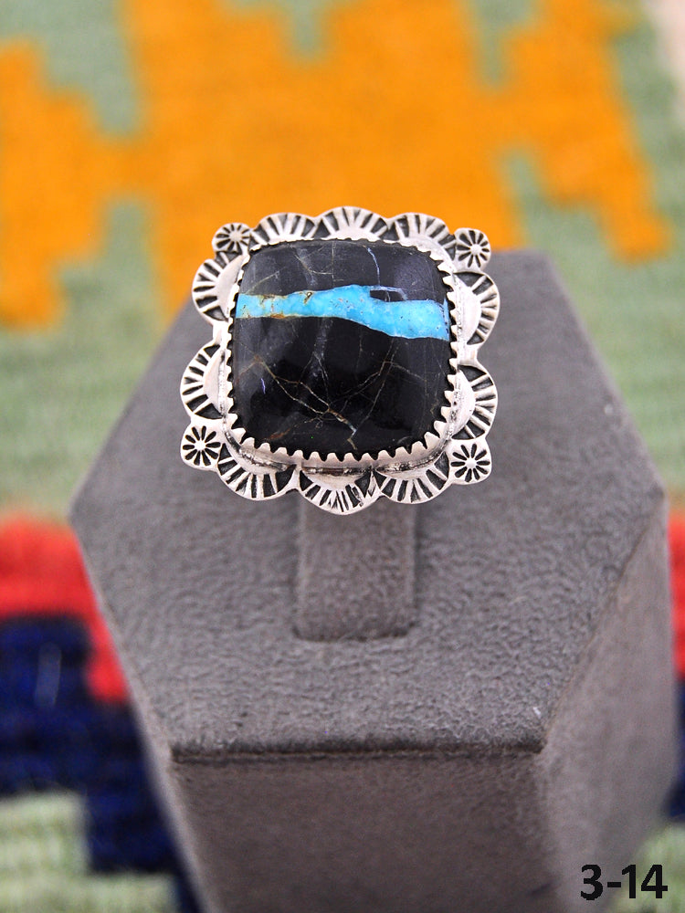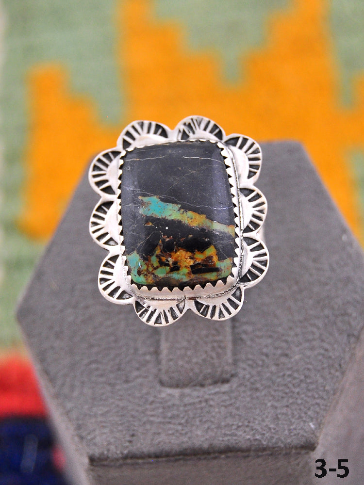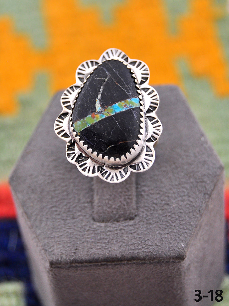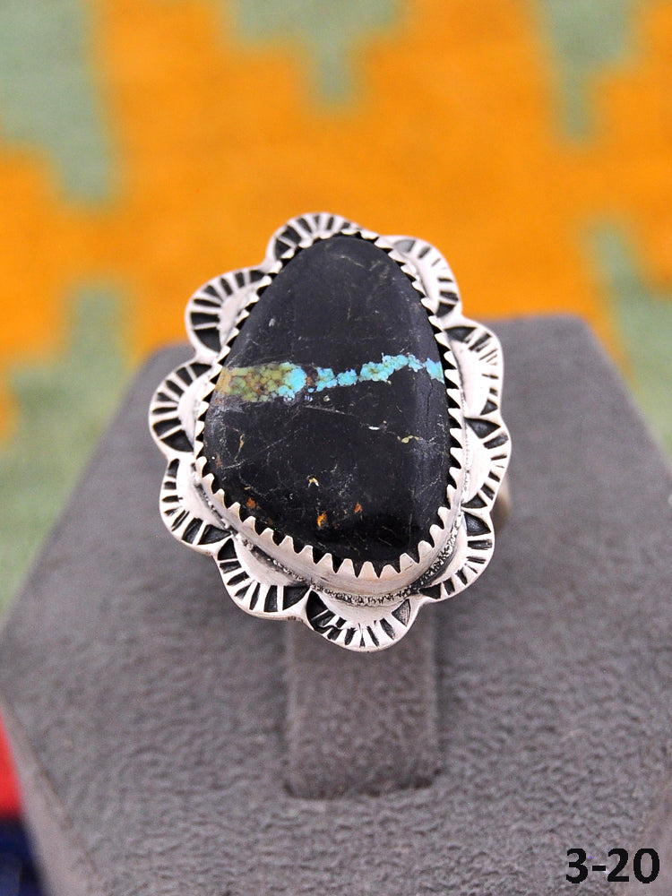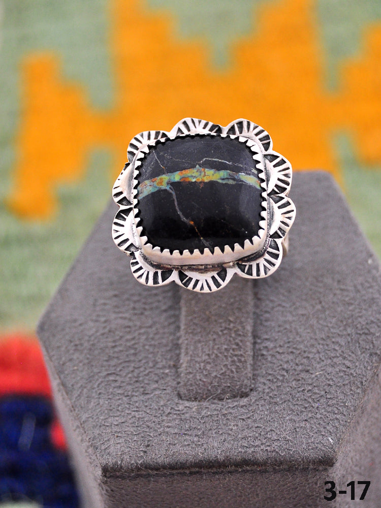 Beautiful rings! Southwest Handmade Black Jack Turquoise & Sterling Silver Adjustable Ring. Signed by the artist and stamped sterling silver.