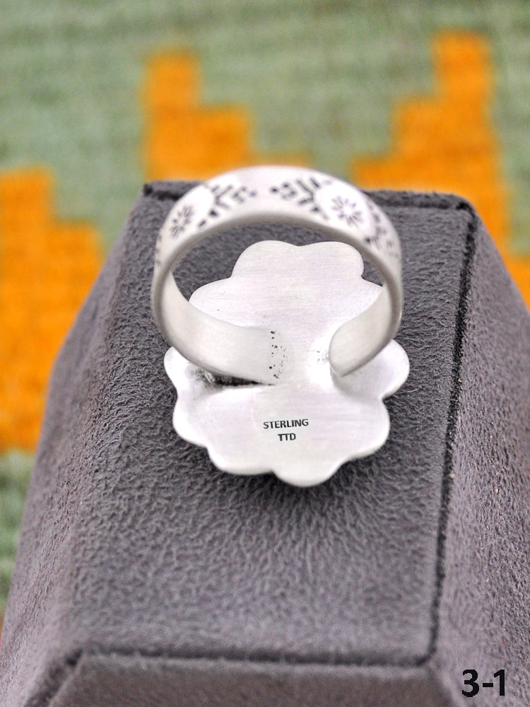 Southwest Handmade Black Jack Turquoise & Sterling Silver Adjustable Ring