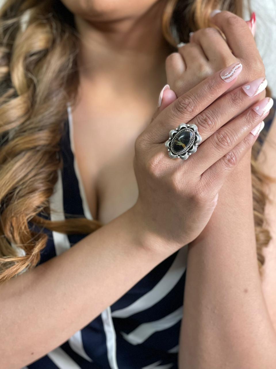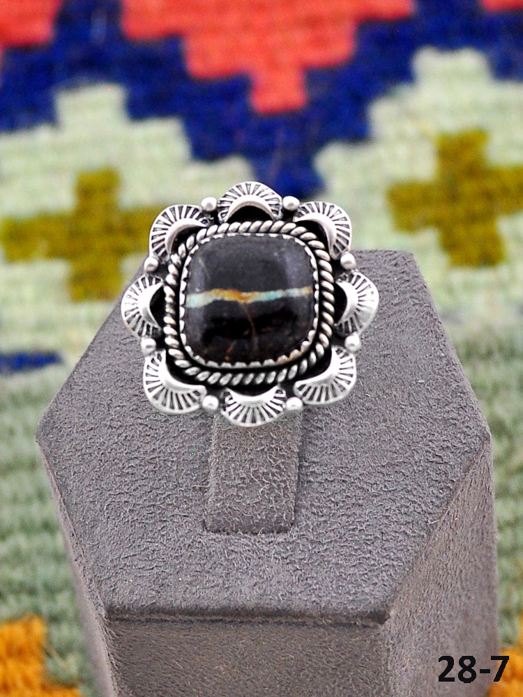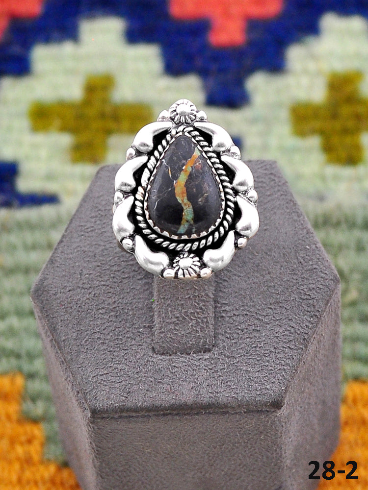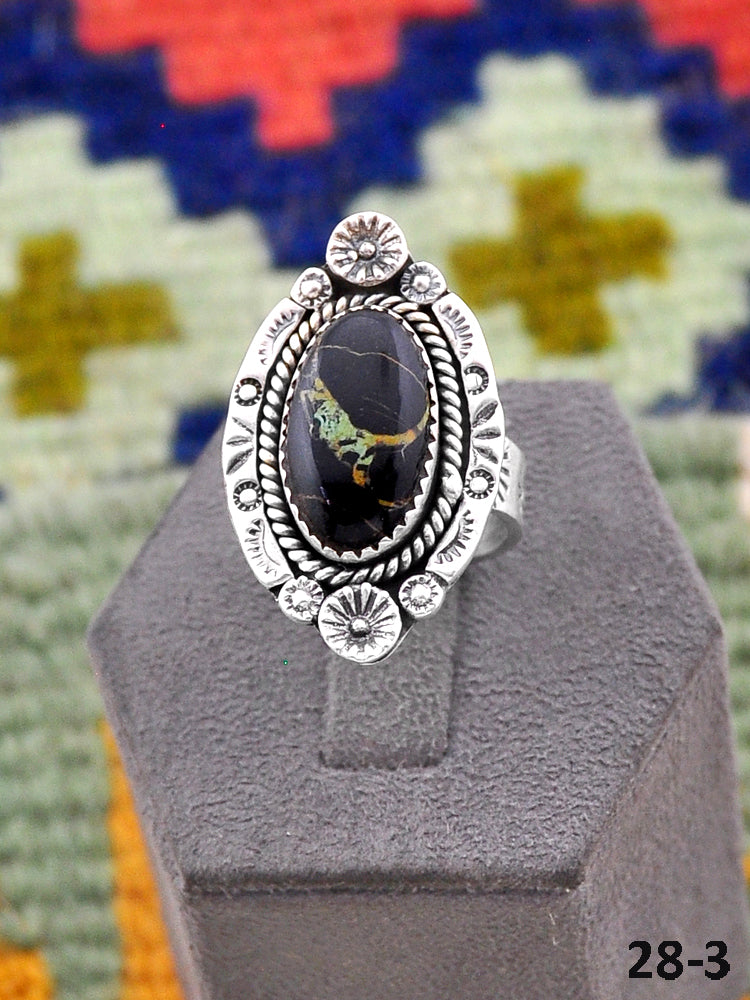 Beautiful rings! Southwest Handmade Black Jack Turquoise & Sterling Silver Adjustable Ring. Signed by the artist and stamped sterling silver.