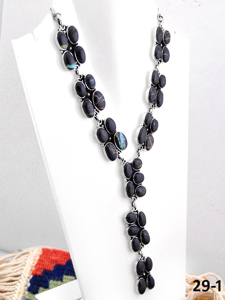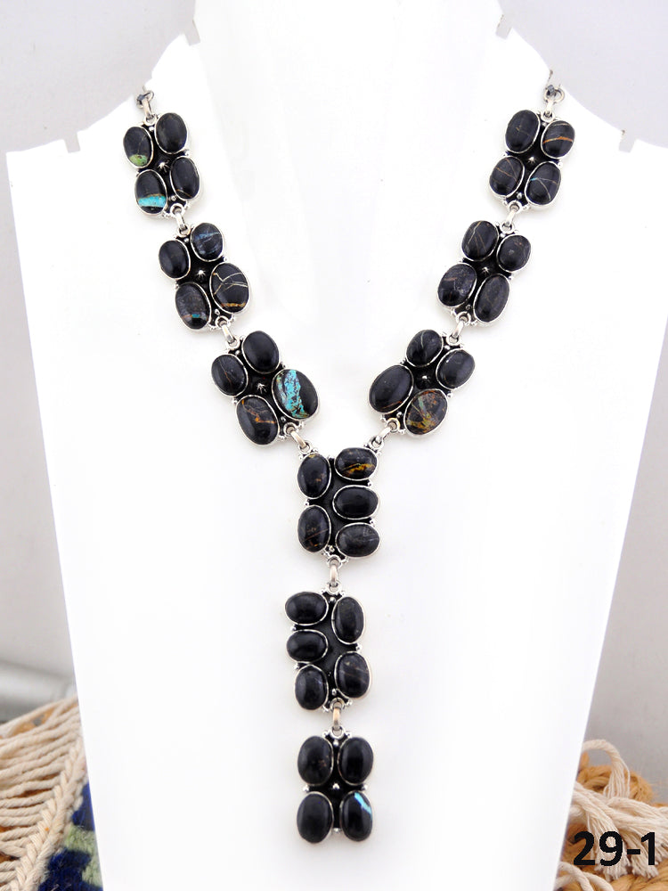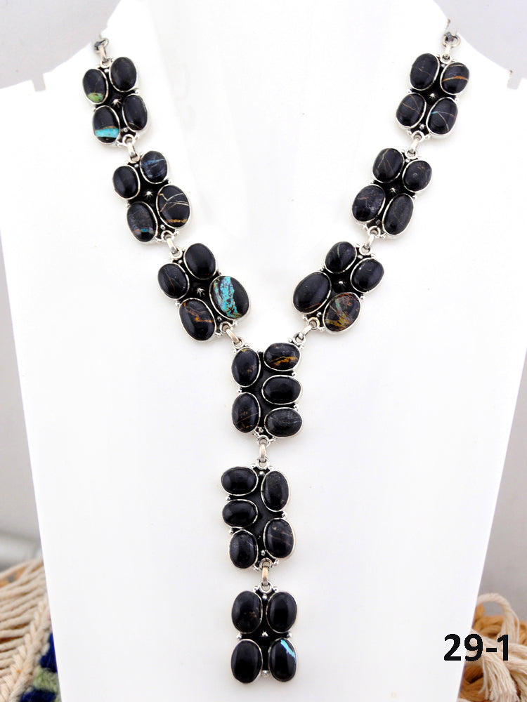 Southwest Handmade Black Jack Turquoise & Sterling Silver Necklace