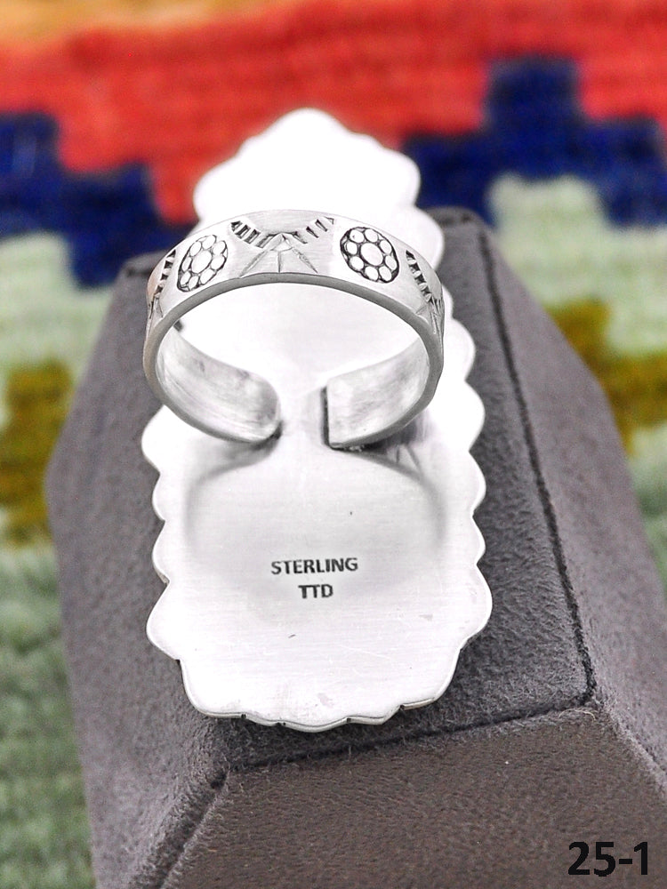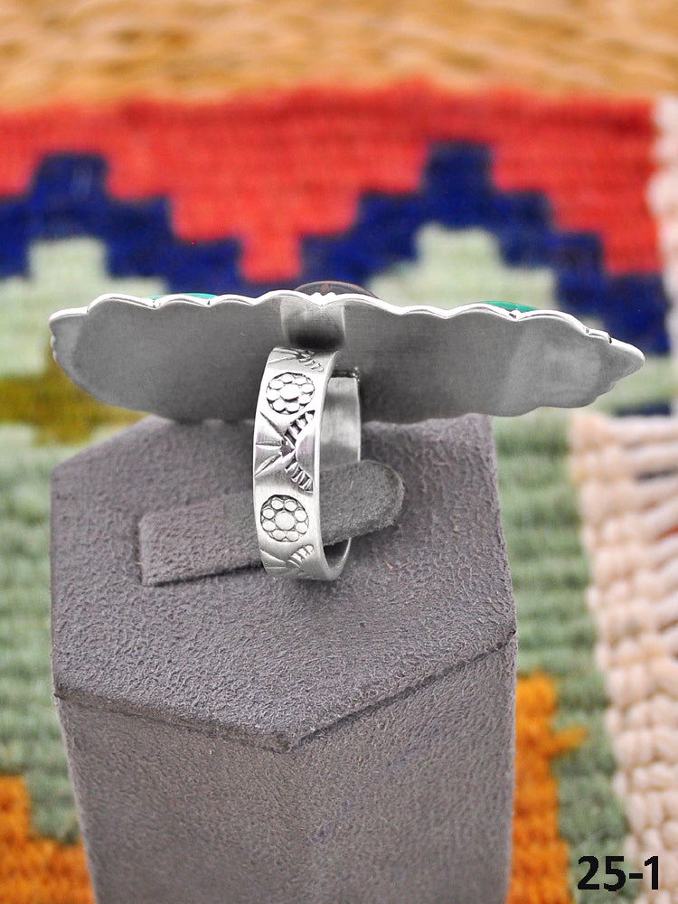 Southwest Handmade Black Jack Turquoise with Emerald Valley & Sterling Silver Adjustable Ring