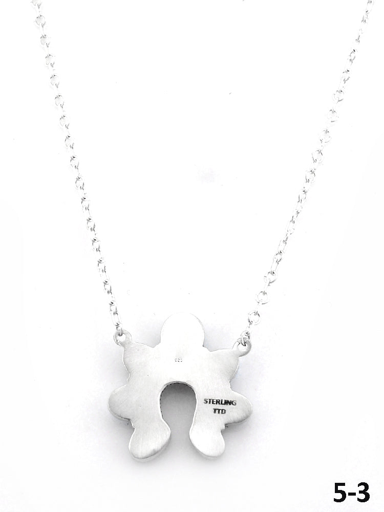 This stunning necklace features a vibrant collection of natural stones set in sterling silver, showcasing exceptional Southwest craftsmanship. It measures 19 inches long with a hang while the chain by itself measures 18 inches long. Width of the pendant is 1 1/2 by 1 5/8 inches.