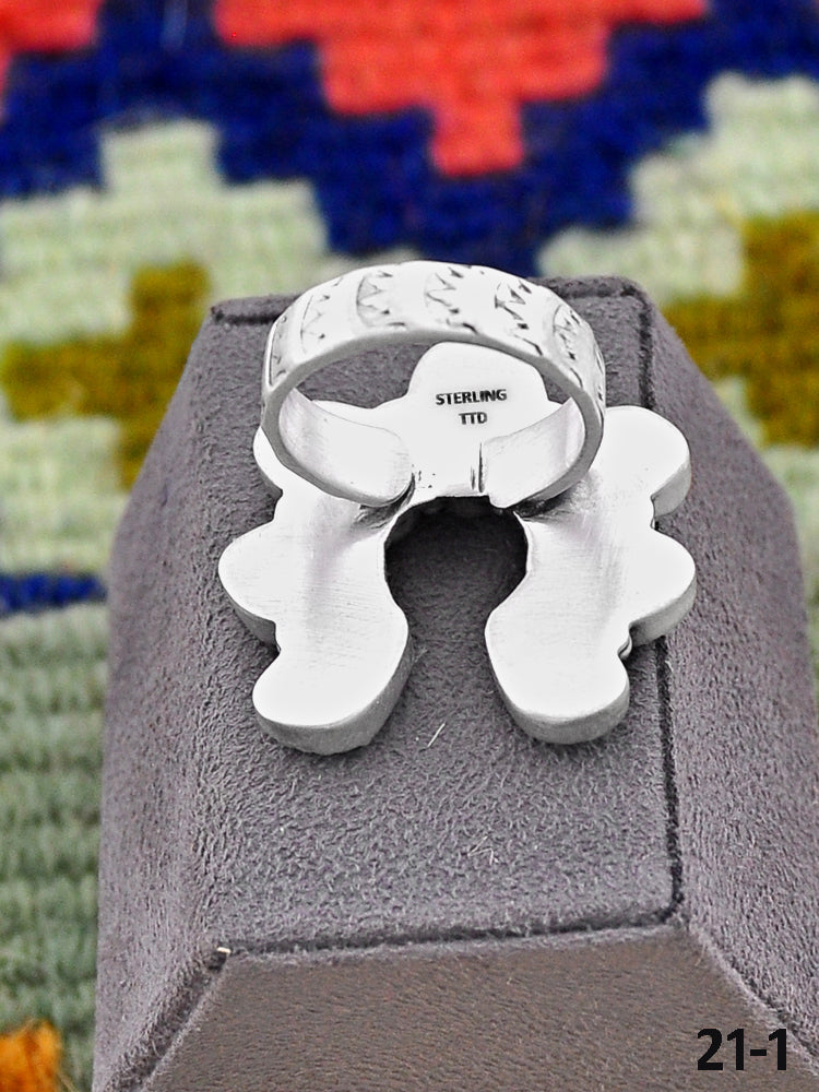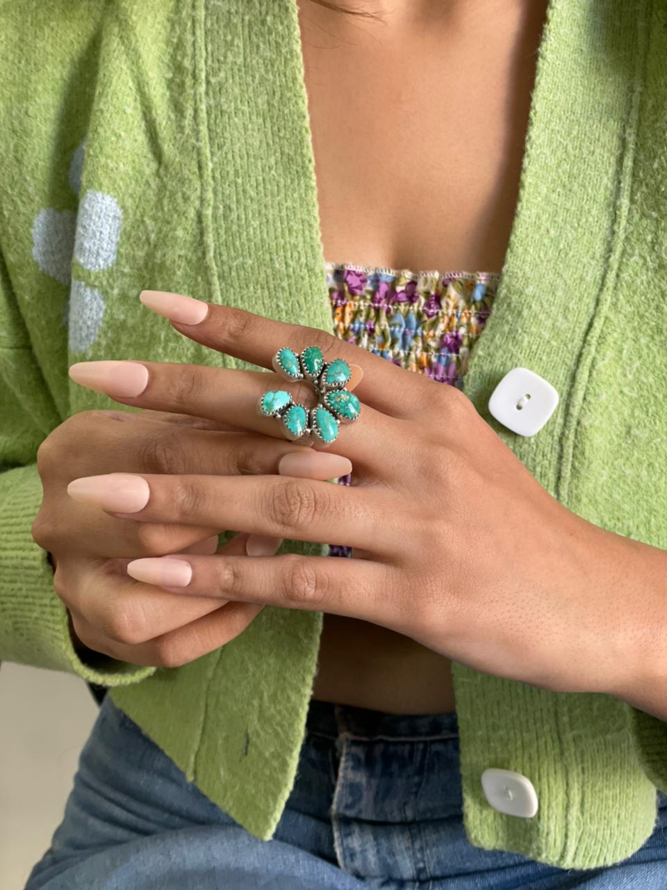 Beautiful ring! Southwest Handmade Emerald Valley Turquoise & Sterling Silver Adjustable Naja Ring. Signed by the artist and stamped sterling silver.