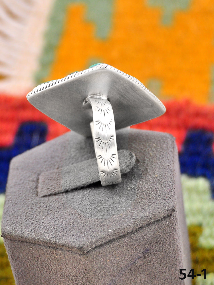 Beautiful rings! Southwest Handmade Emerald Valley Turquoise & Sterling Silver Adjustable Ring. Signed by the artist and stamped sterling silver.