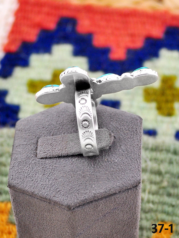 Southwest Handmade Emerald Valley Turquoise & Sterling Silver Adjustable Ring