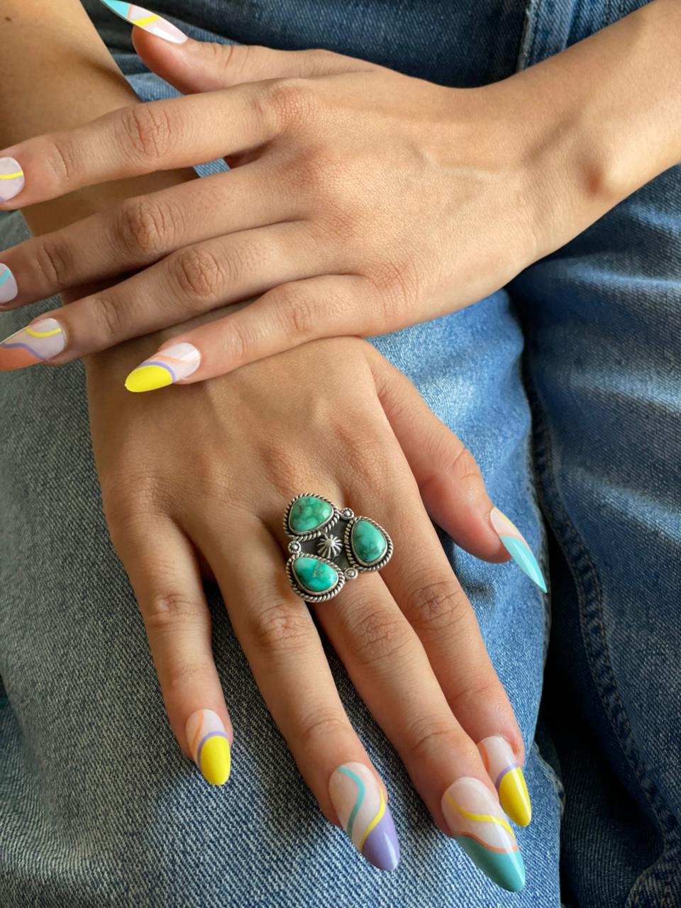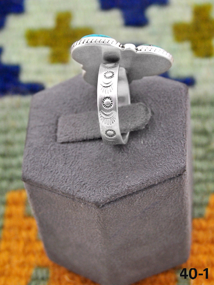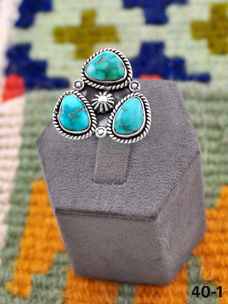 Beautiful rings! Southwest Handmade Emerald Valley Turquoise & Sterling Silver Adjustable Ring. Signed by the artist and stamped sterling silver.