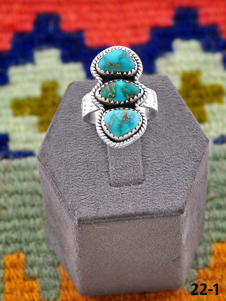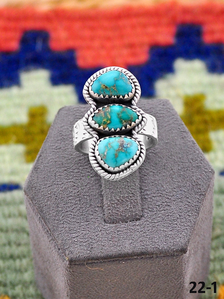 Beautiful rings! Southwest Handmade Emerald Valley Turquoise & Sterling Silver Adjustable Ring. Signed by the artist and stamped sterling silver.