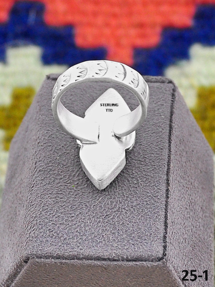 Beautiful ring! Southwest Handmade Emerald Valley Turquoise & Sterling Silver Adjustable Ring. Signed by the artist and stamped sterling silver.