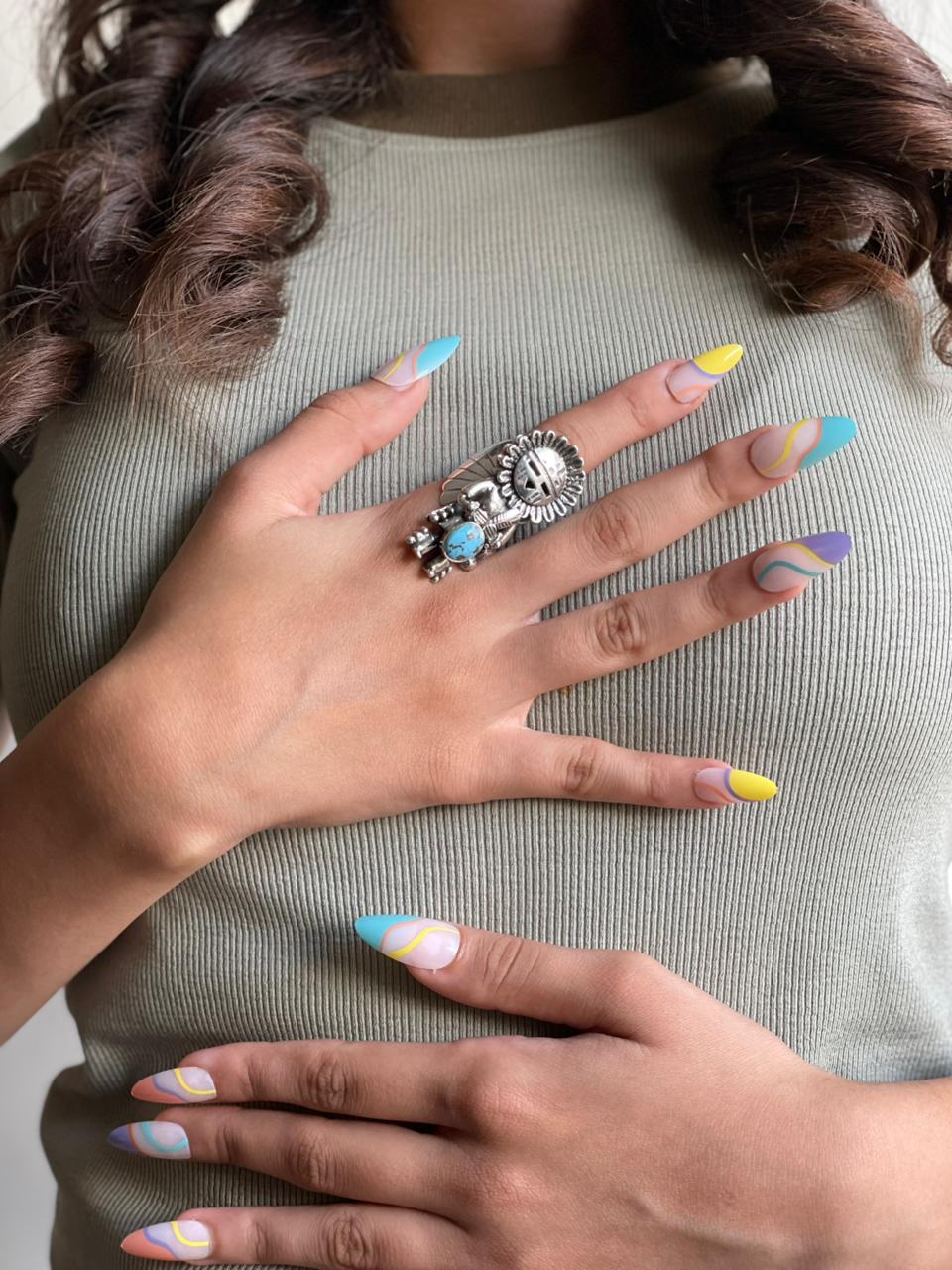 Beautiful ring! Southwest Handmade Golden Hills Turquoise & Sterling Silver Adjustable Ring. Signed by the artist and stamped sterling silver.