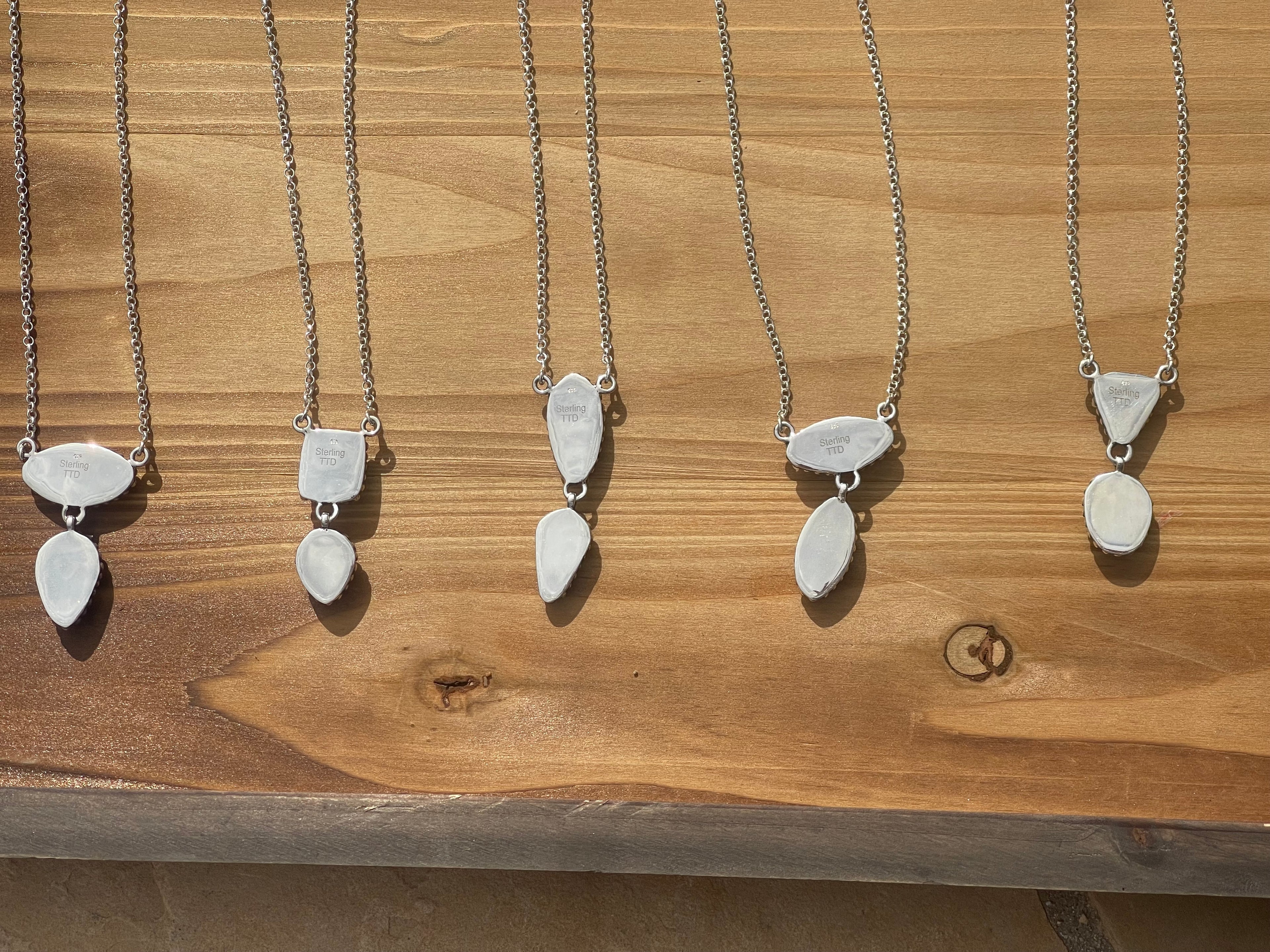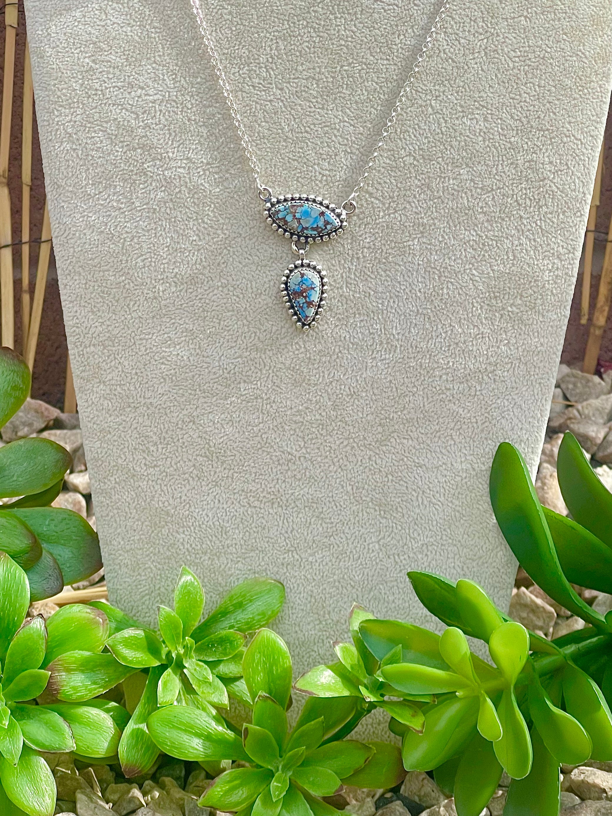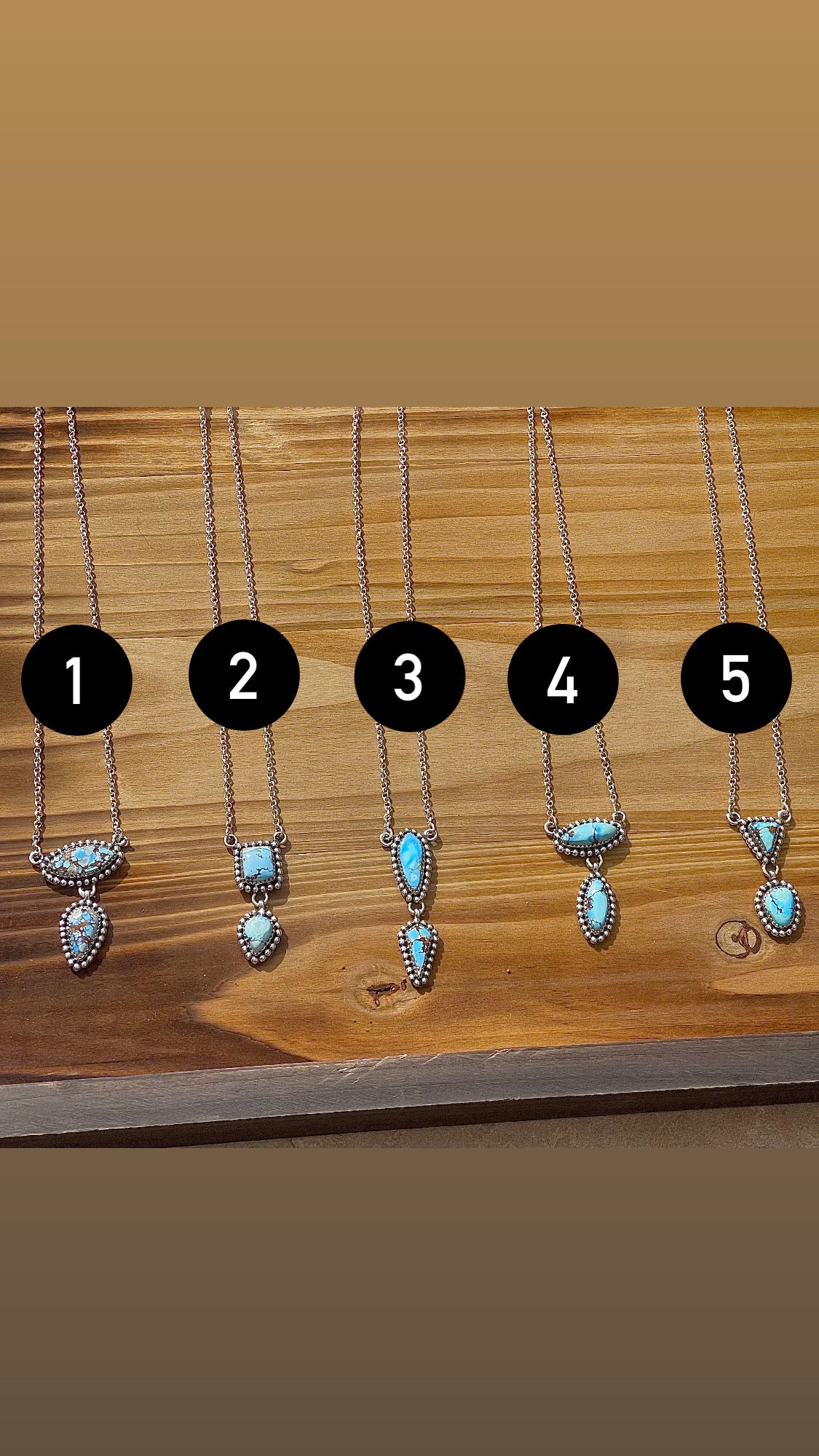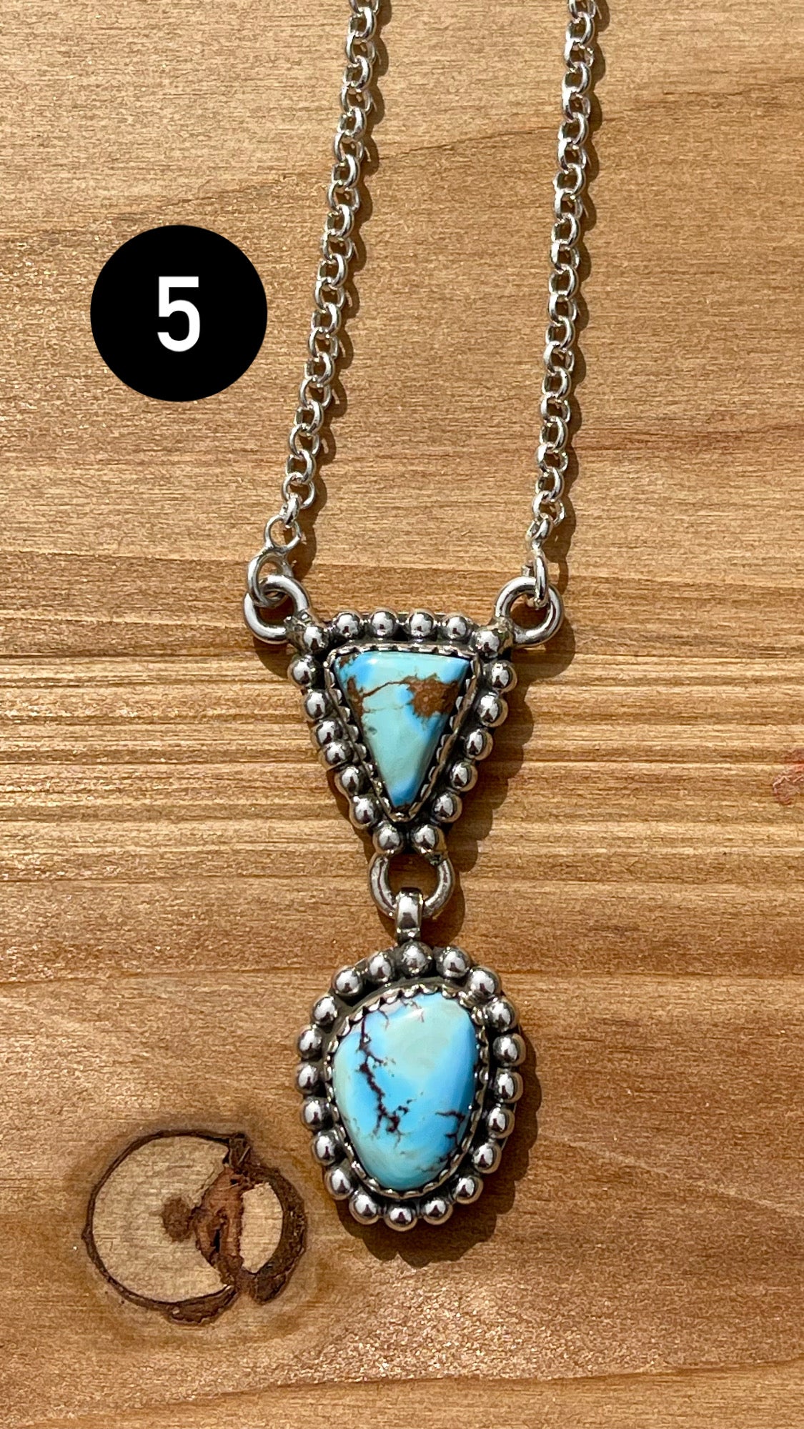 Beautiful necklace. Southwest Handmade Golden Hills Turquoise & Sterling Silver Drop Necklace. They measure from 20 3/4 - 21 1/2” inches long with hang while the chain by itself measures 19 inches long but can be adjusted down. Signed by the artist and stamped sterling silver.