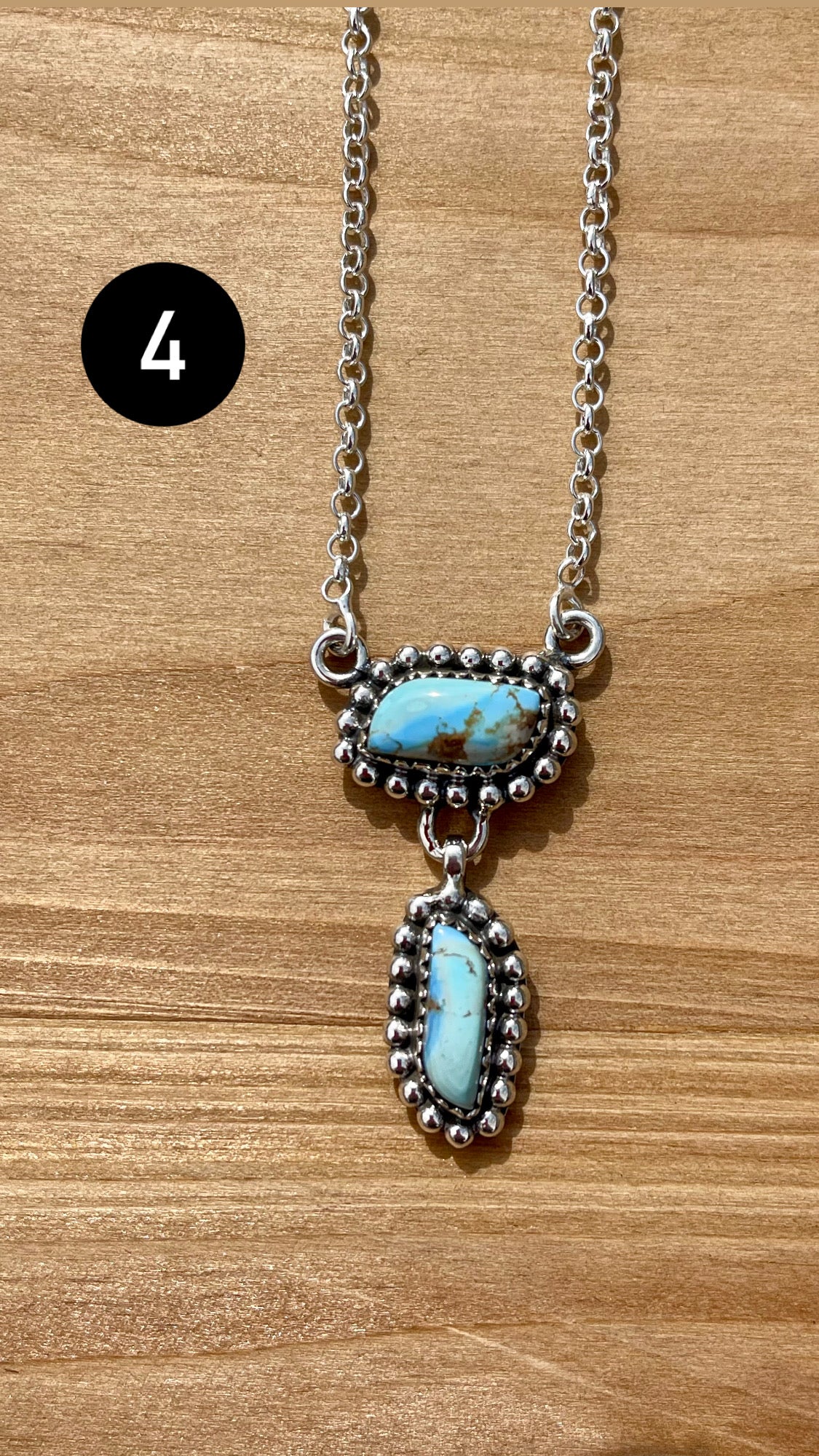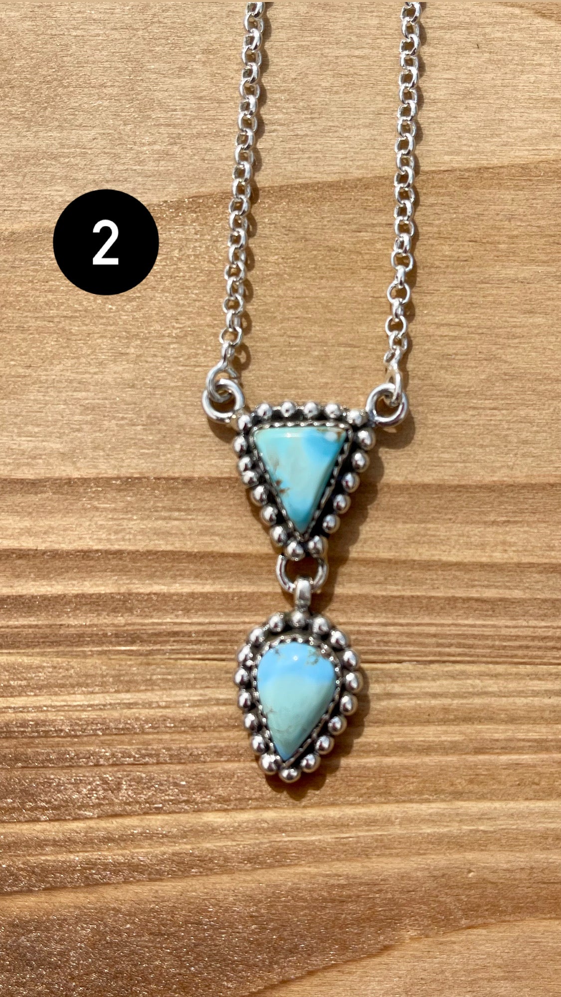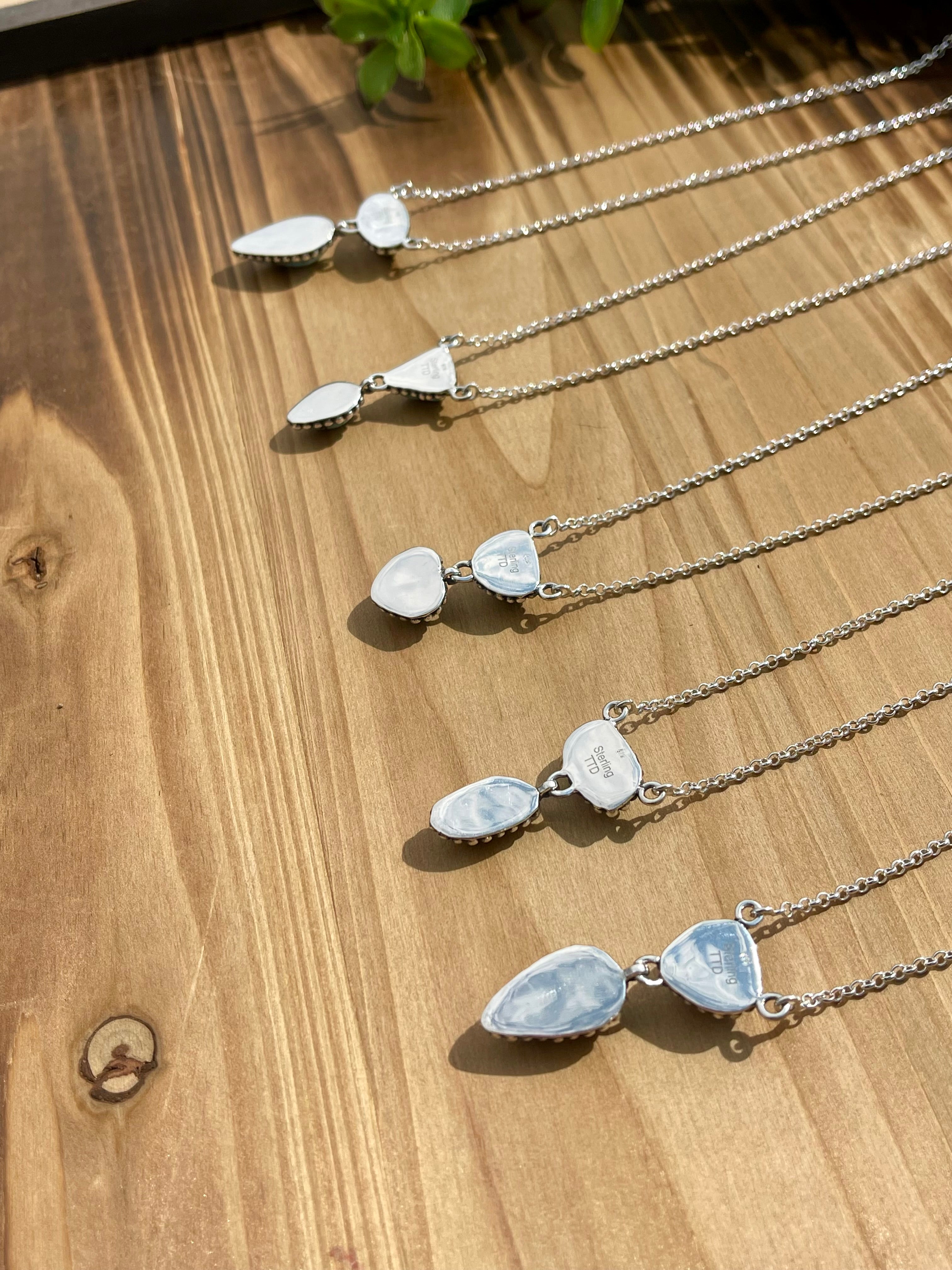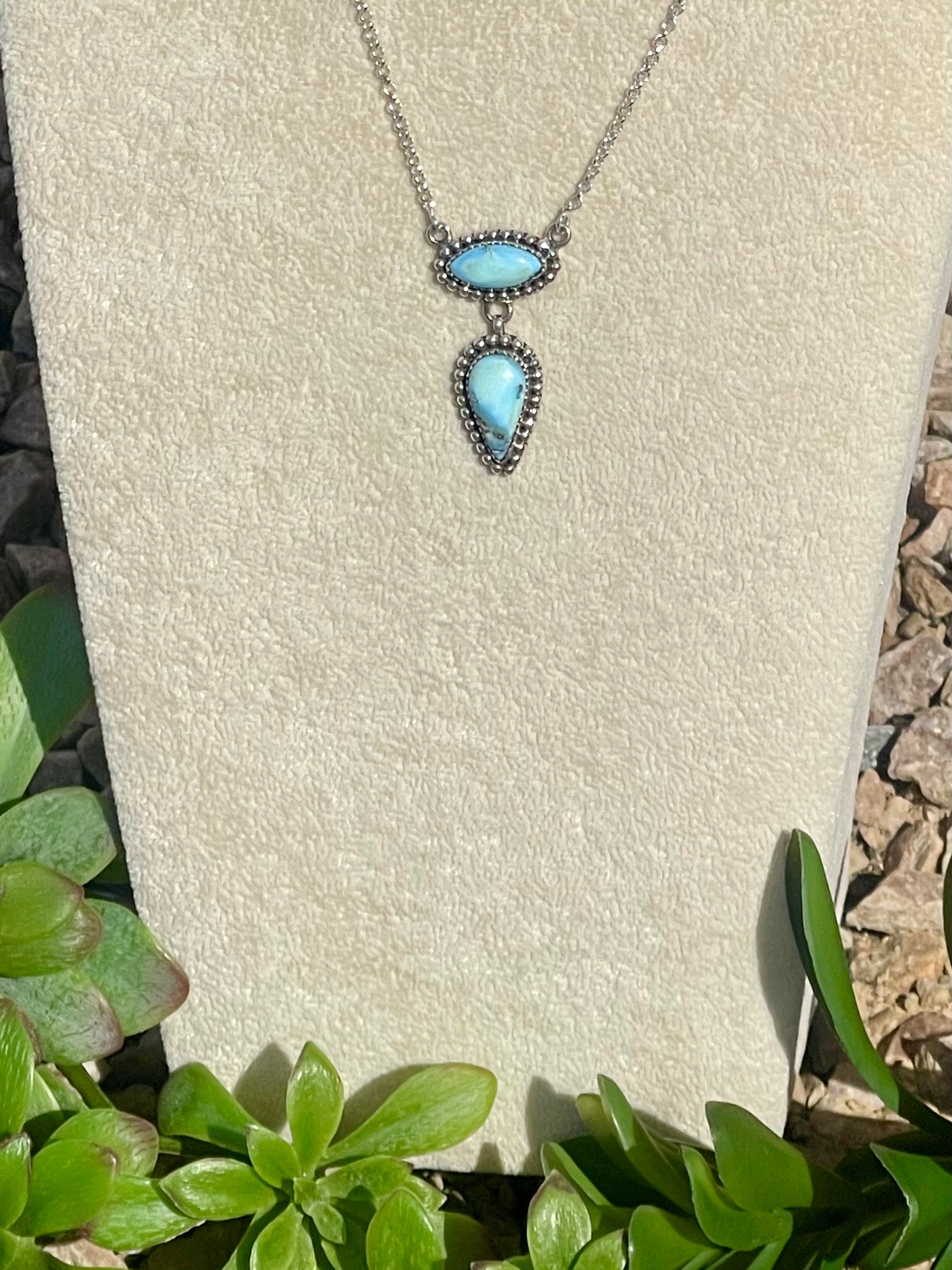 Beautiful necklace. Southwest Handmade Golden Hills Turquoise & Sterling Silver Drop Necklace. They measure from 20 3/4 - 21” inches long with hang while the chain by itself measures 19 inches long but can be adjusted down. Signed by the artist and stamped sterling silver.