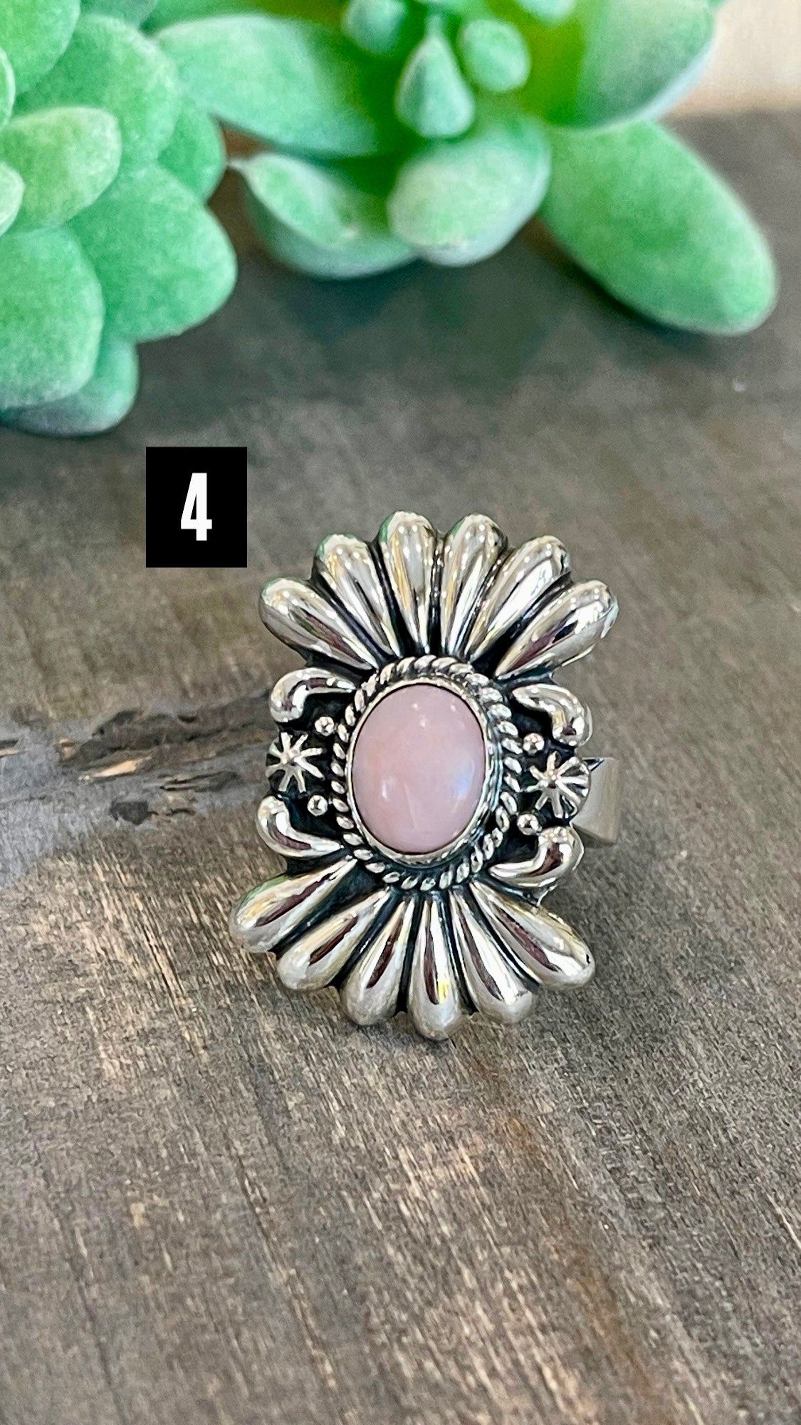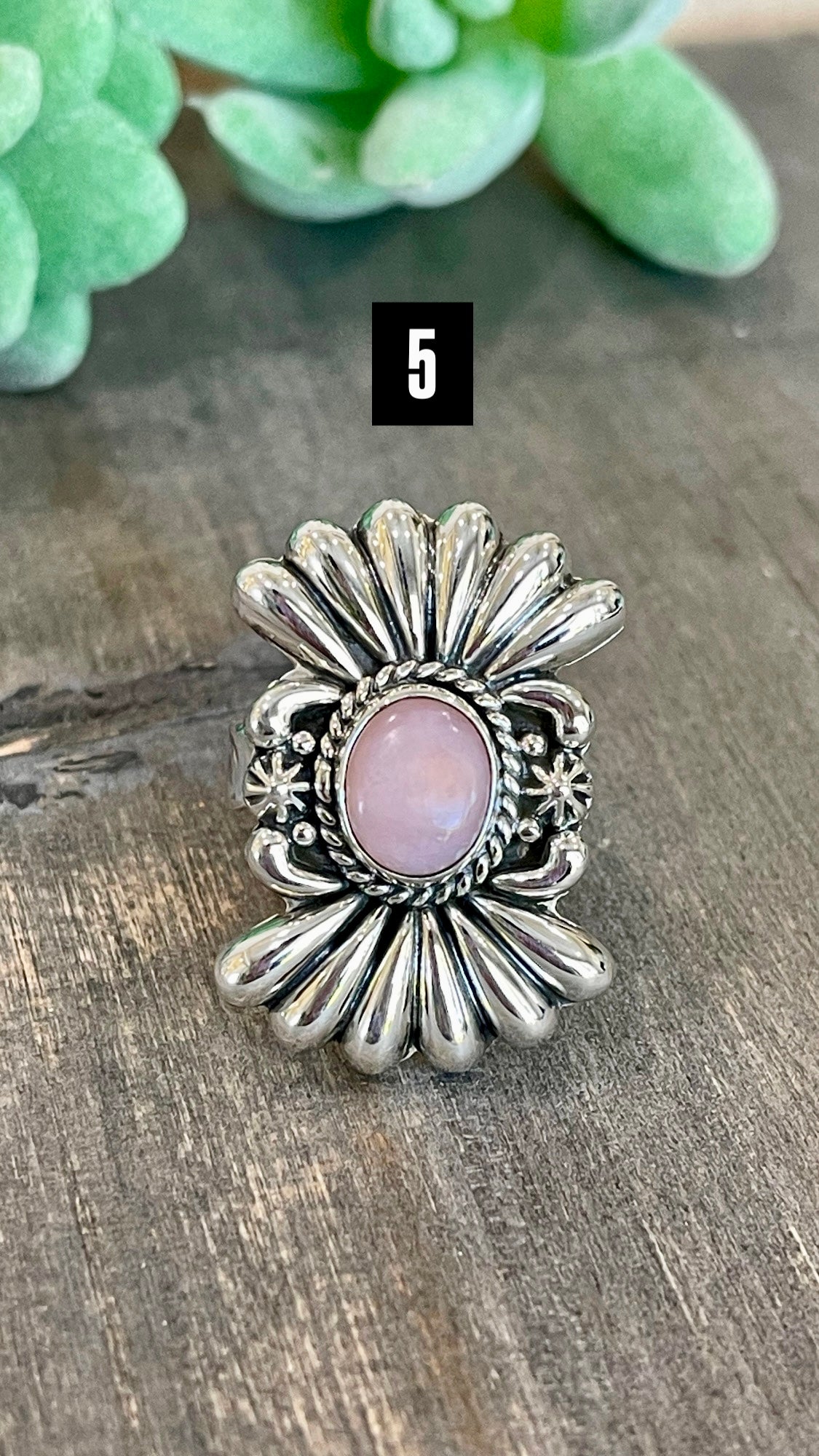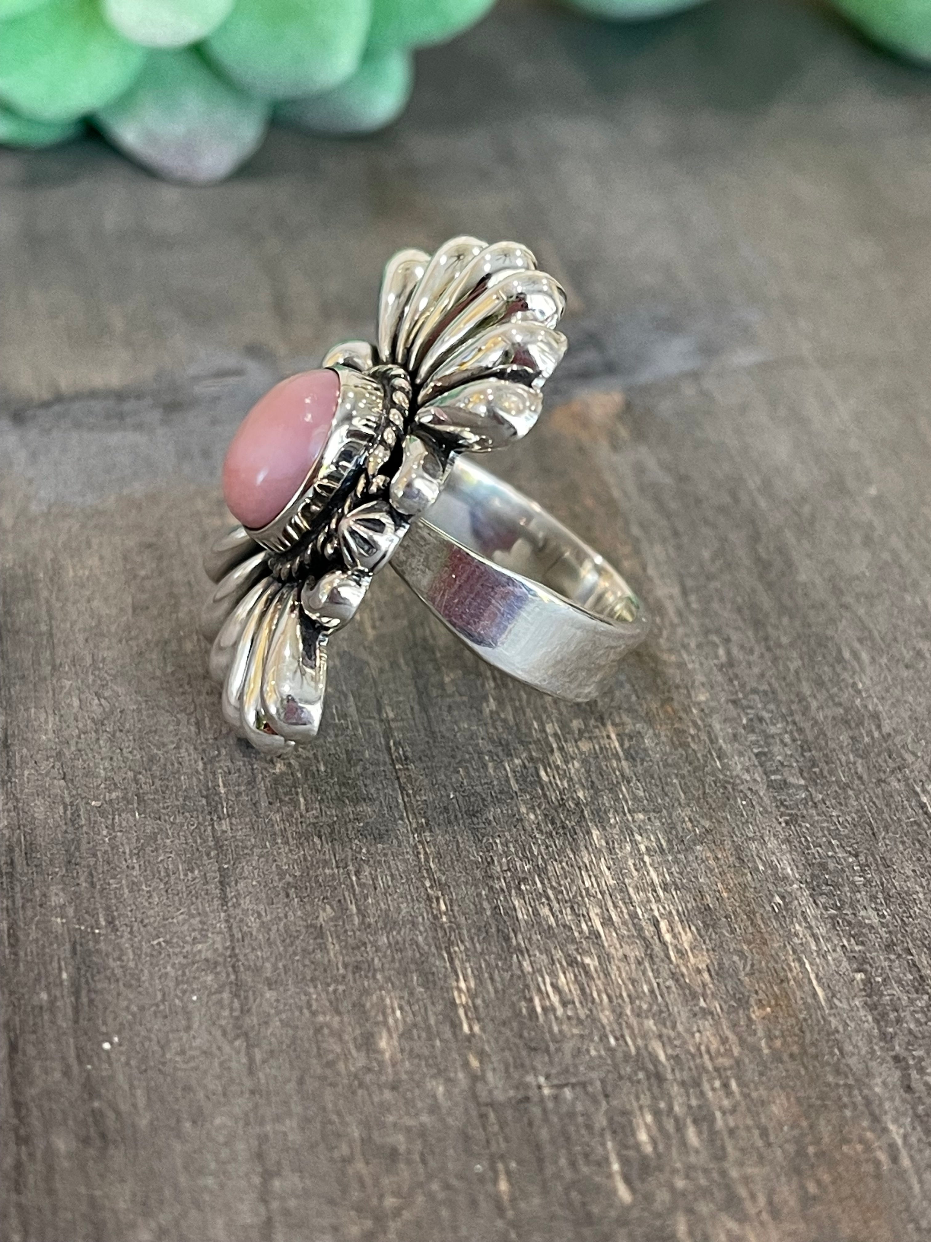 Southwest Handmade Peruvian Pink Opal & Sterling Silver Adjustable Ring