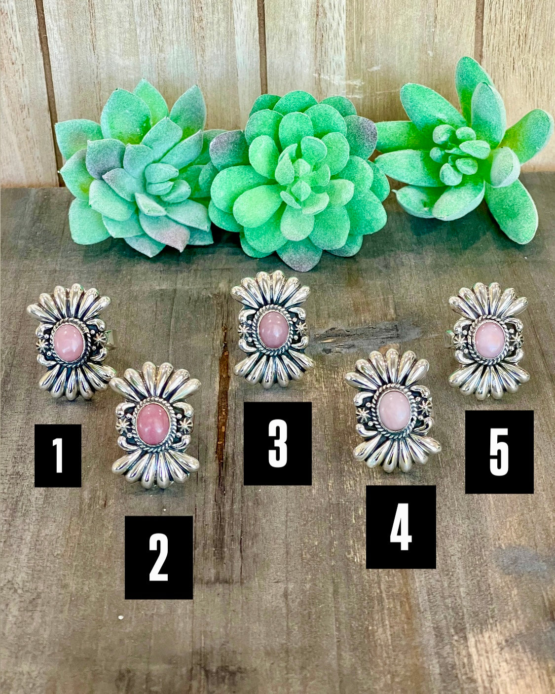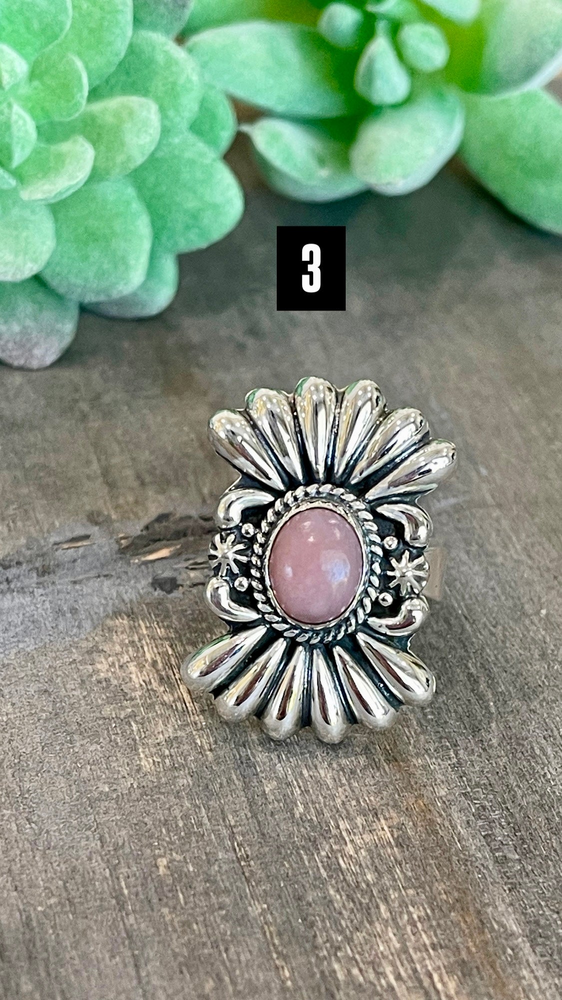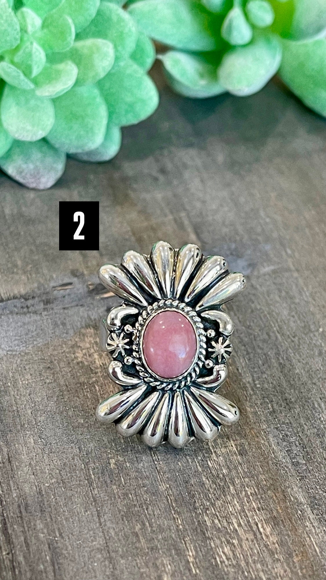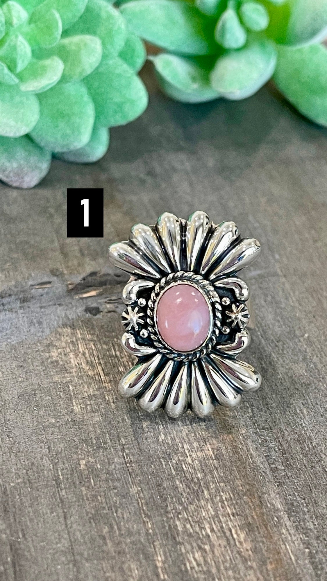 Southwest Handmade Peruvian Pink Opal & Sterling Silver Adjustable Ring