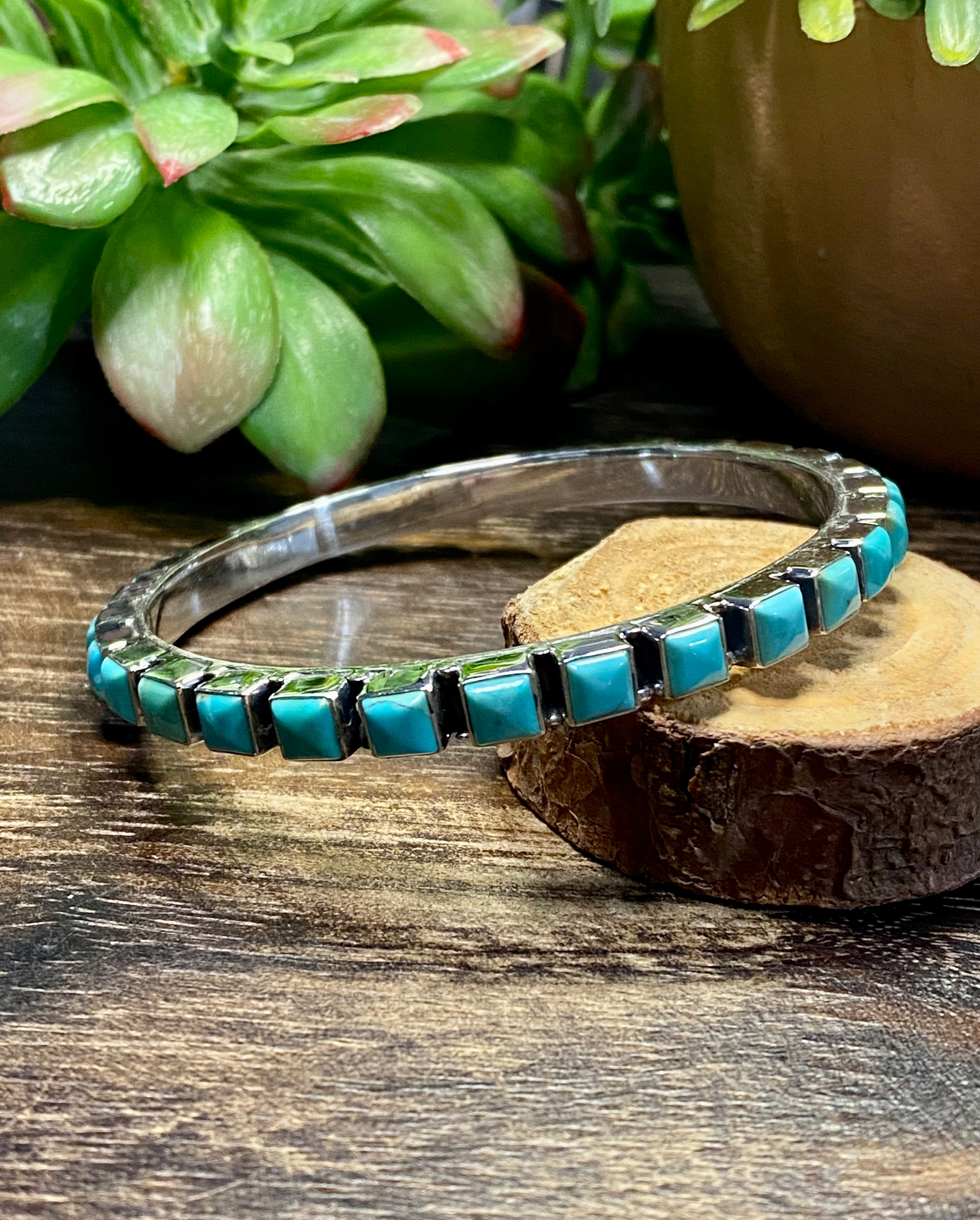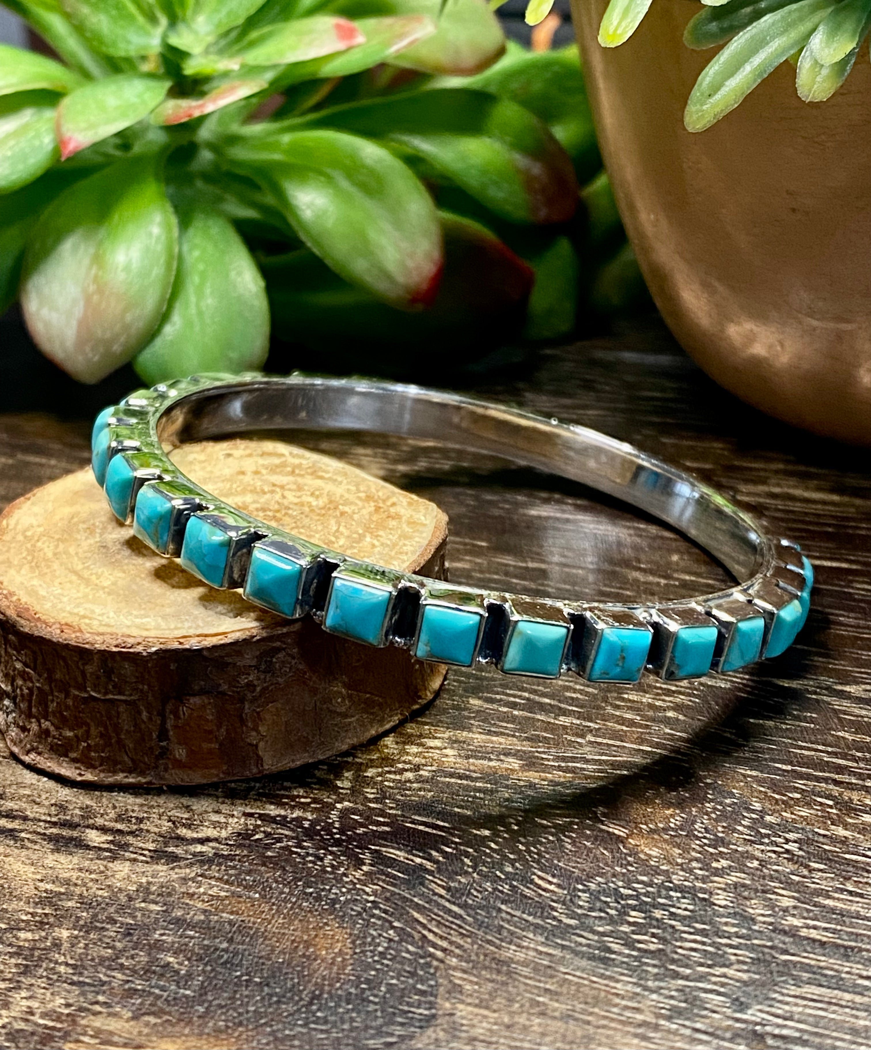 Southwest Handmade Kingman Turquoise & Sterling Silver Bangle Bracelet