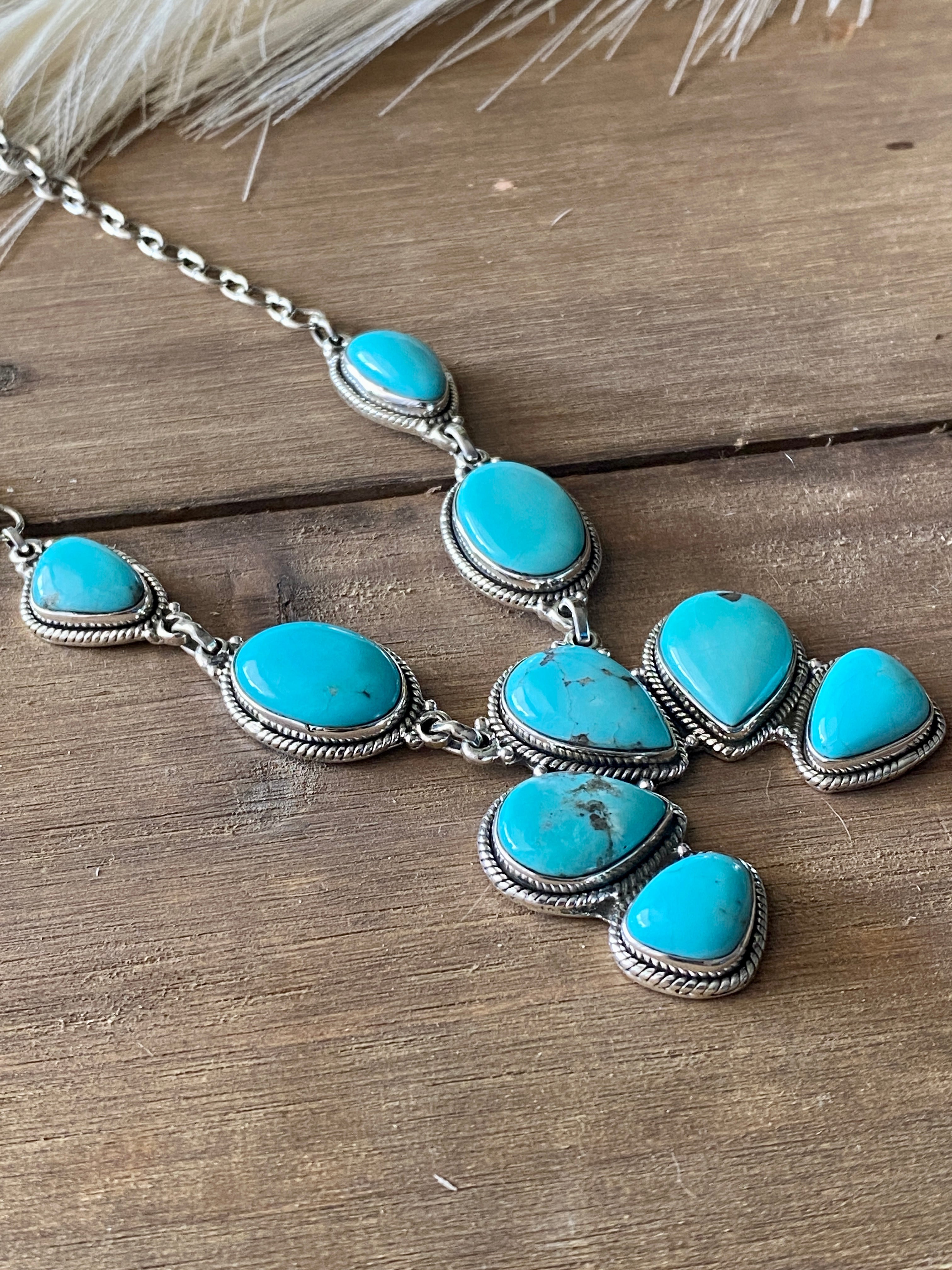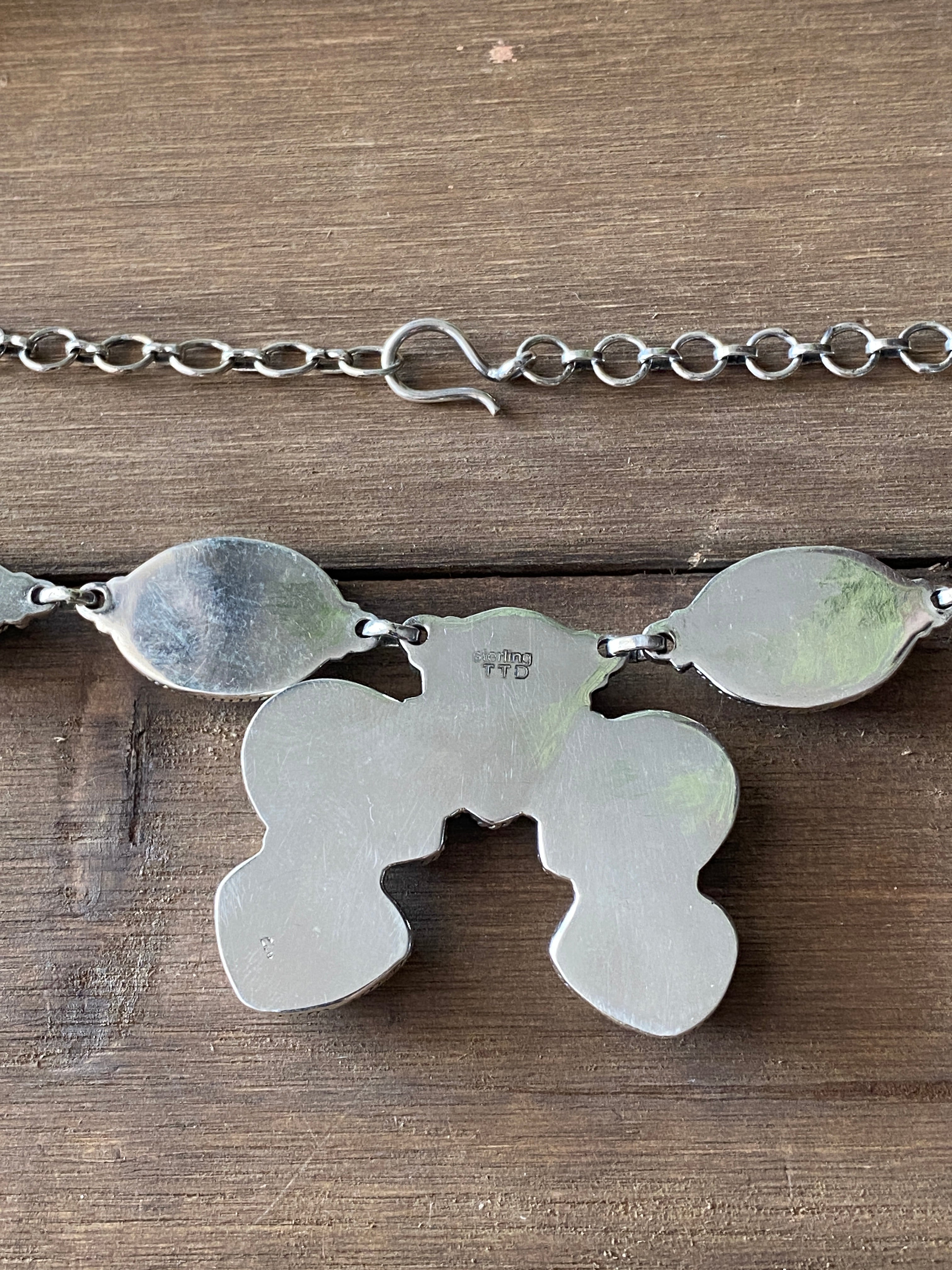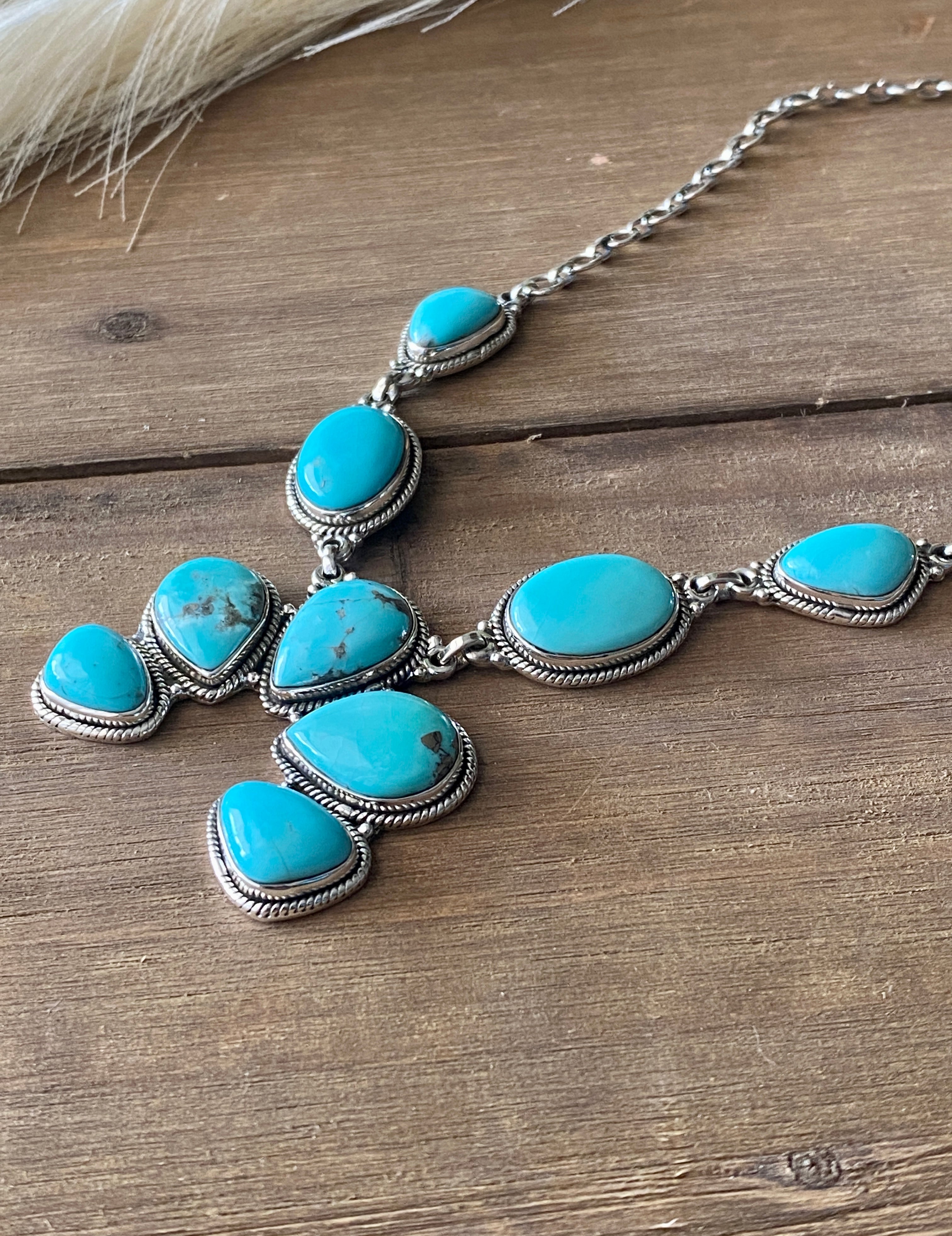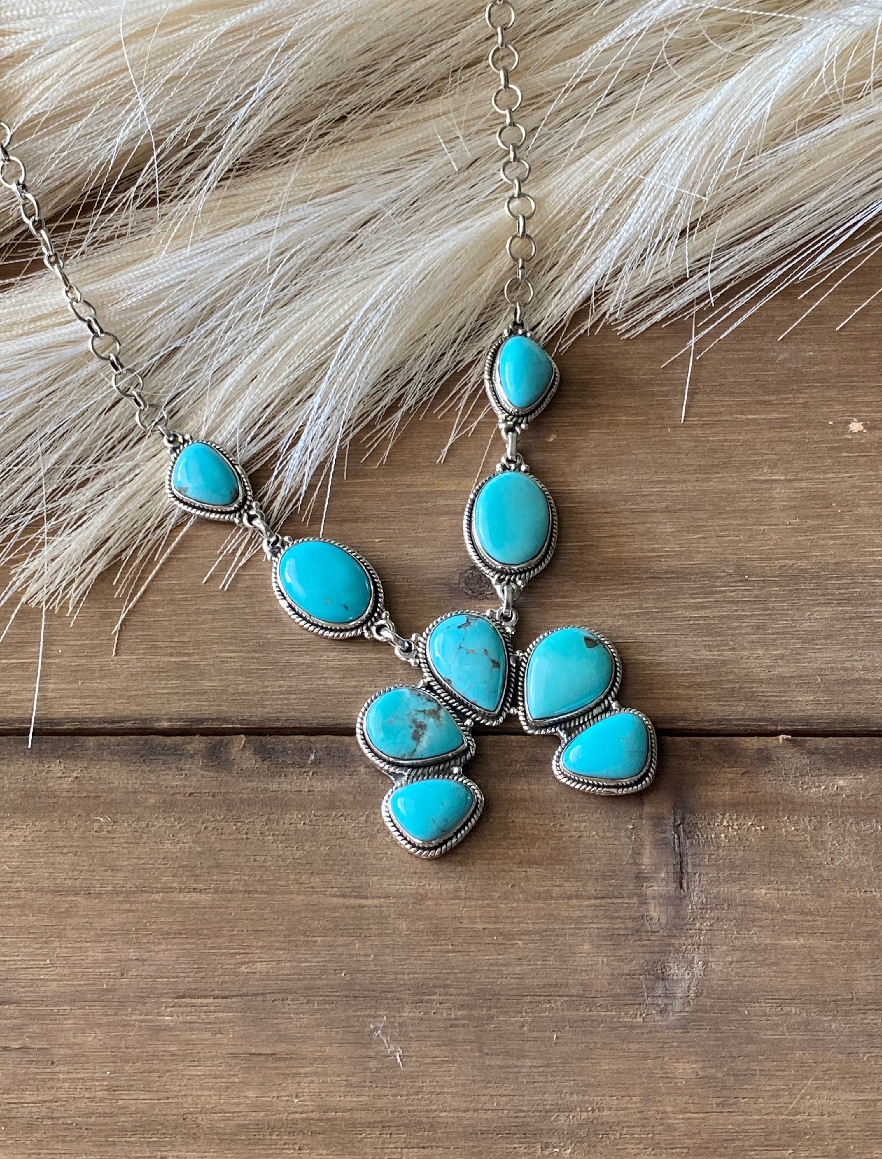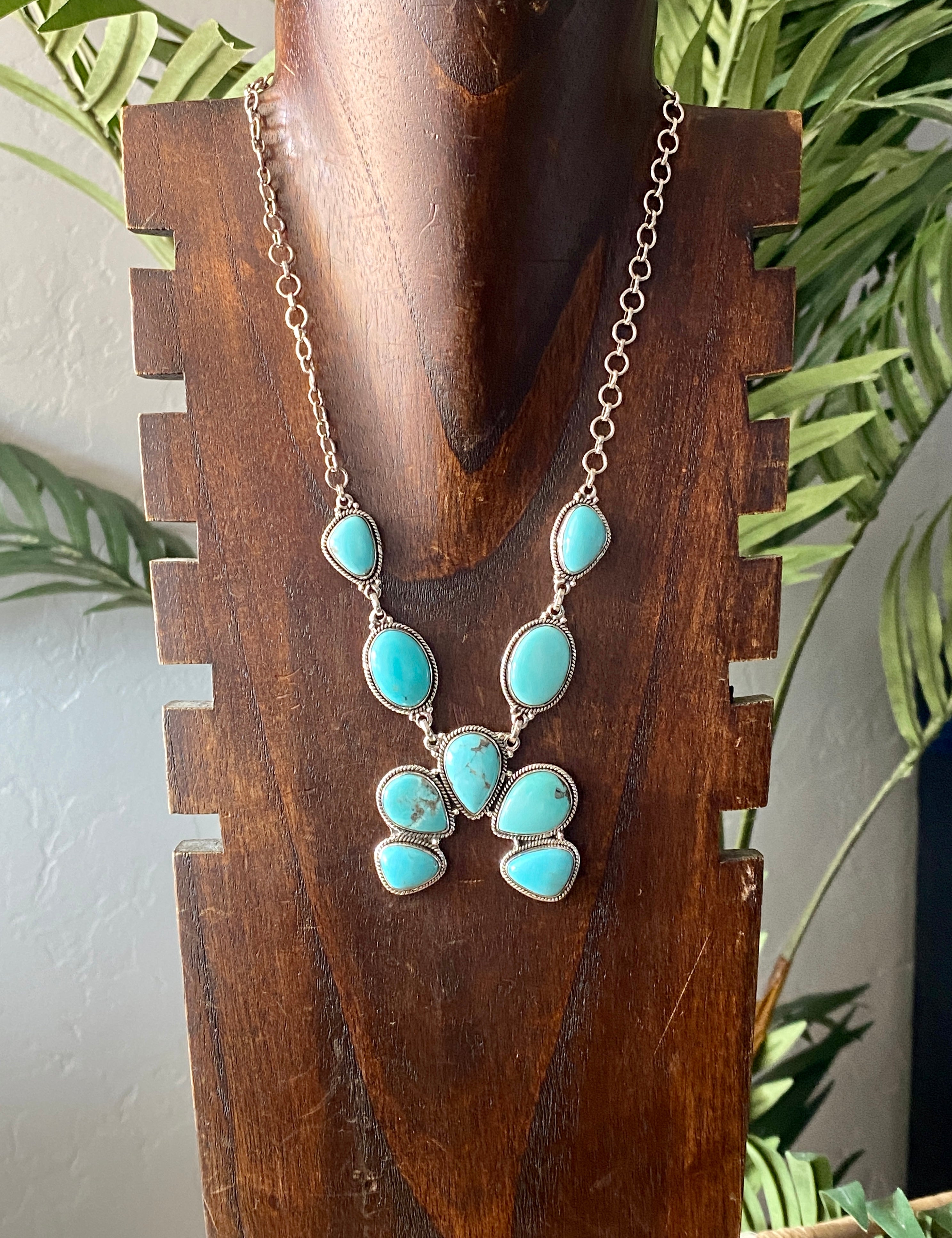 Southwest Handmade Kingman Turquoise & Sterling Silver Cluster Naja Necklace