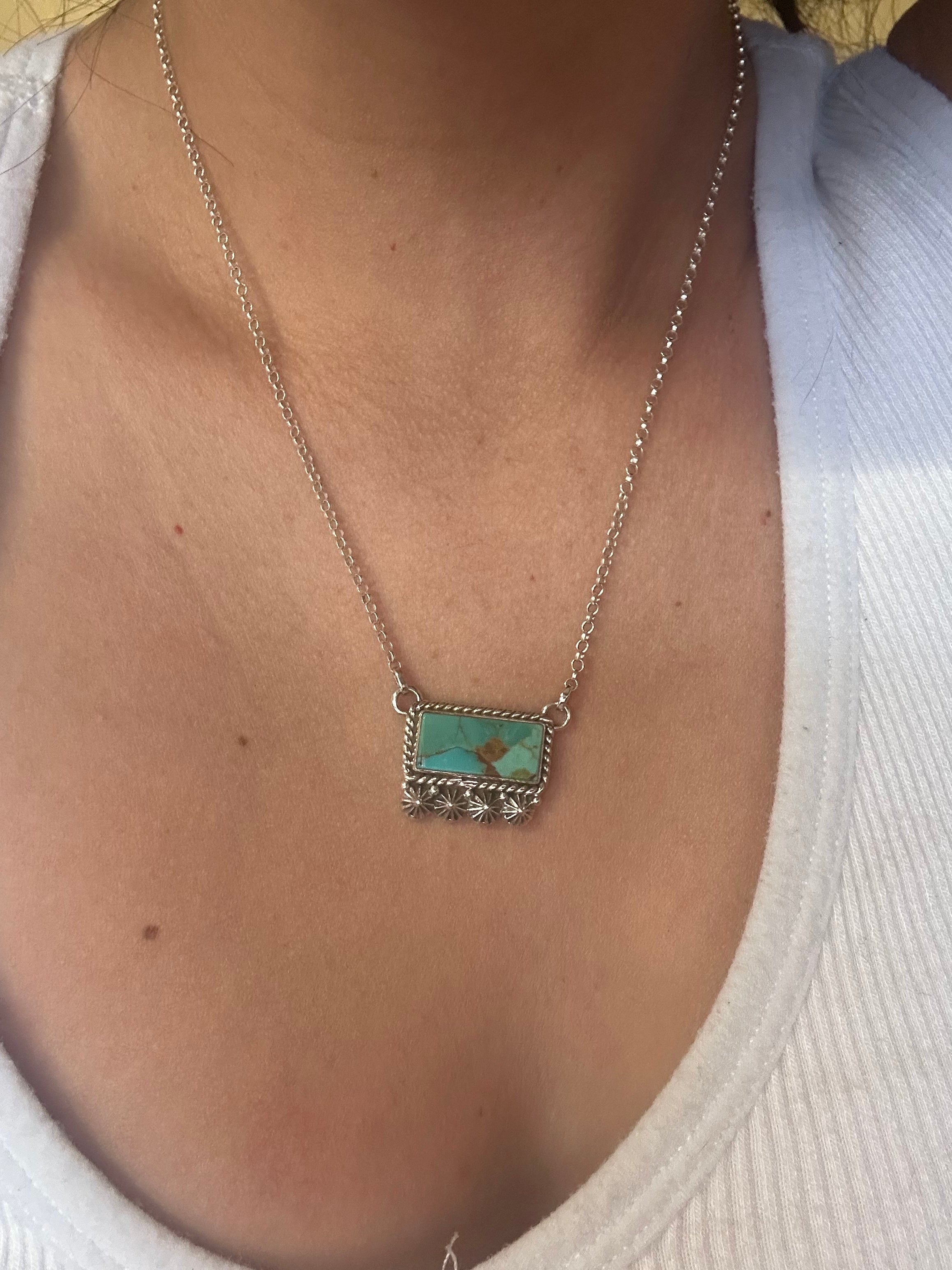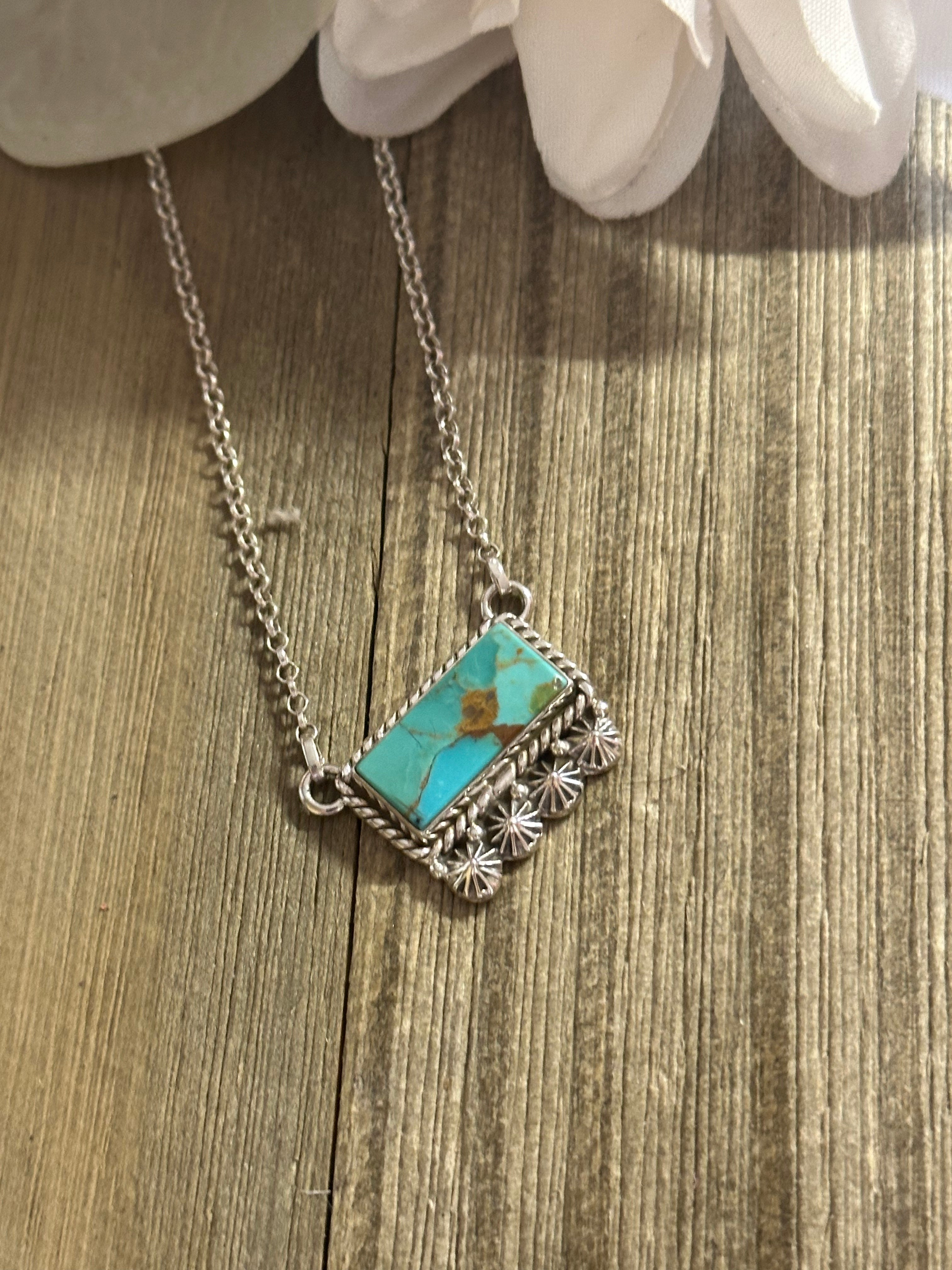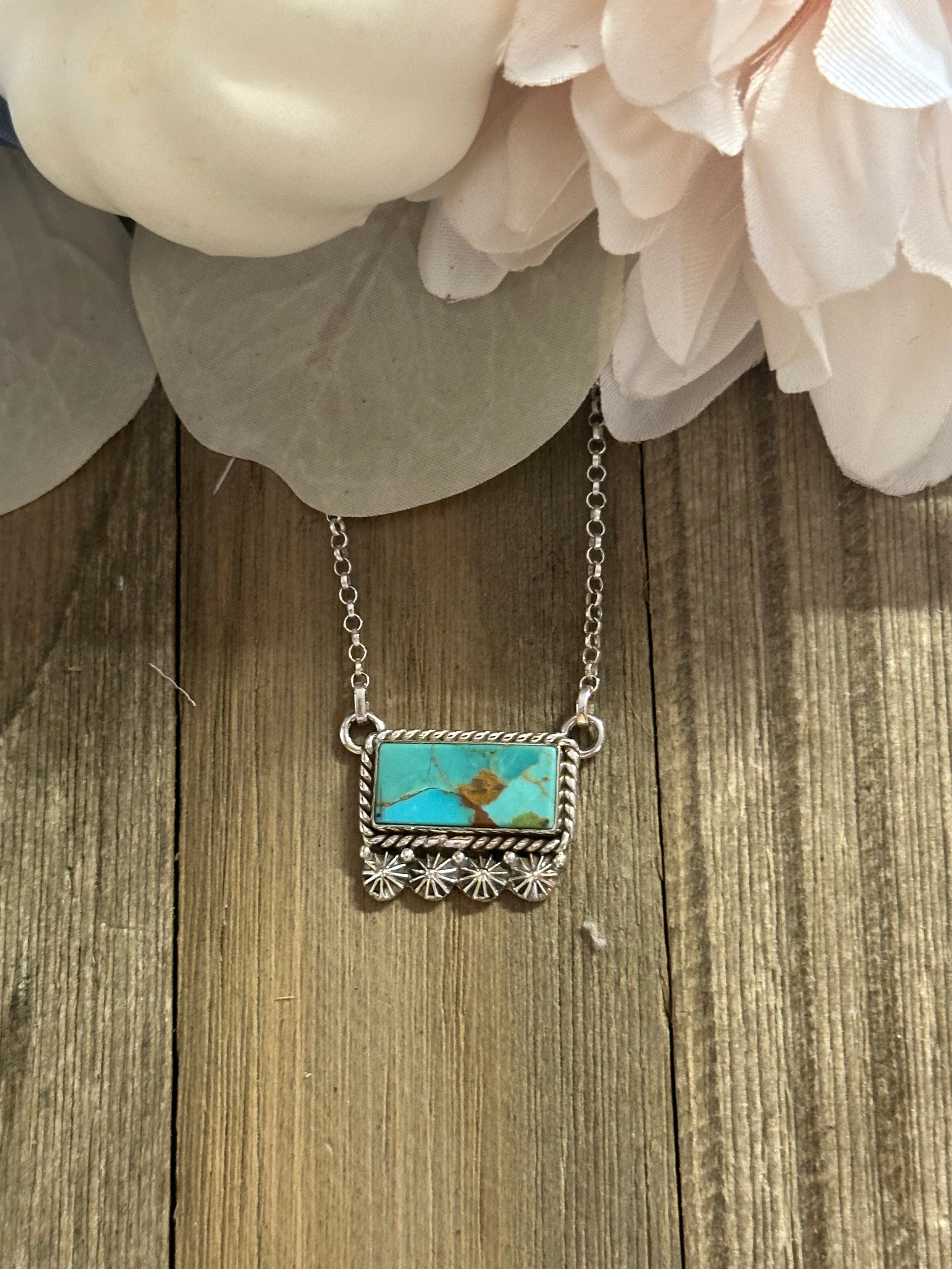 Southwest Handmade Kingman Turquoise & Sterling Silver Bar Necklace