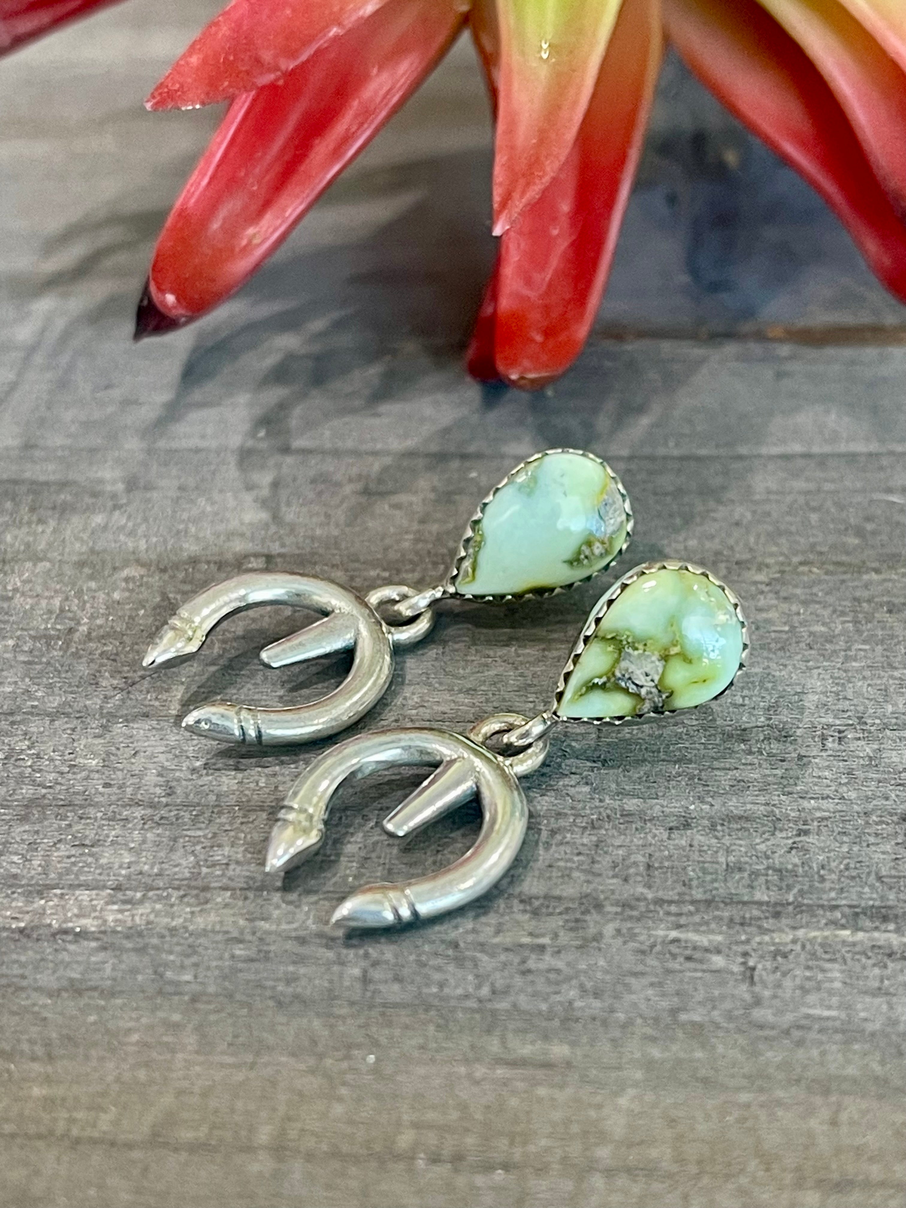 Southwest Handmade Palomino Variscite & Sterling Silver Post Dangle Naja Earrings