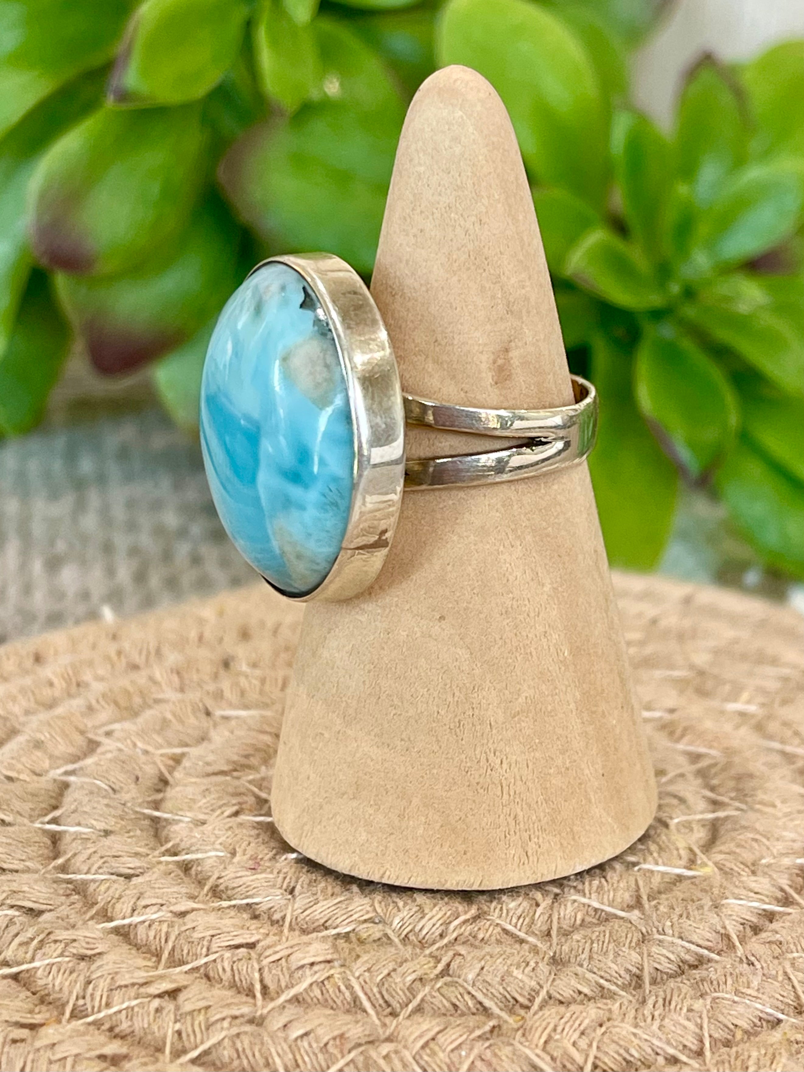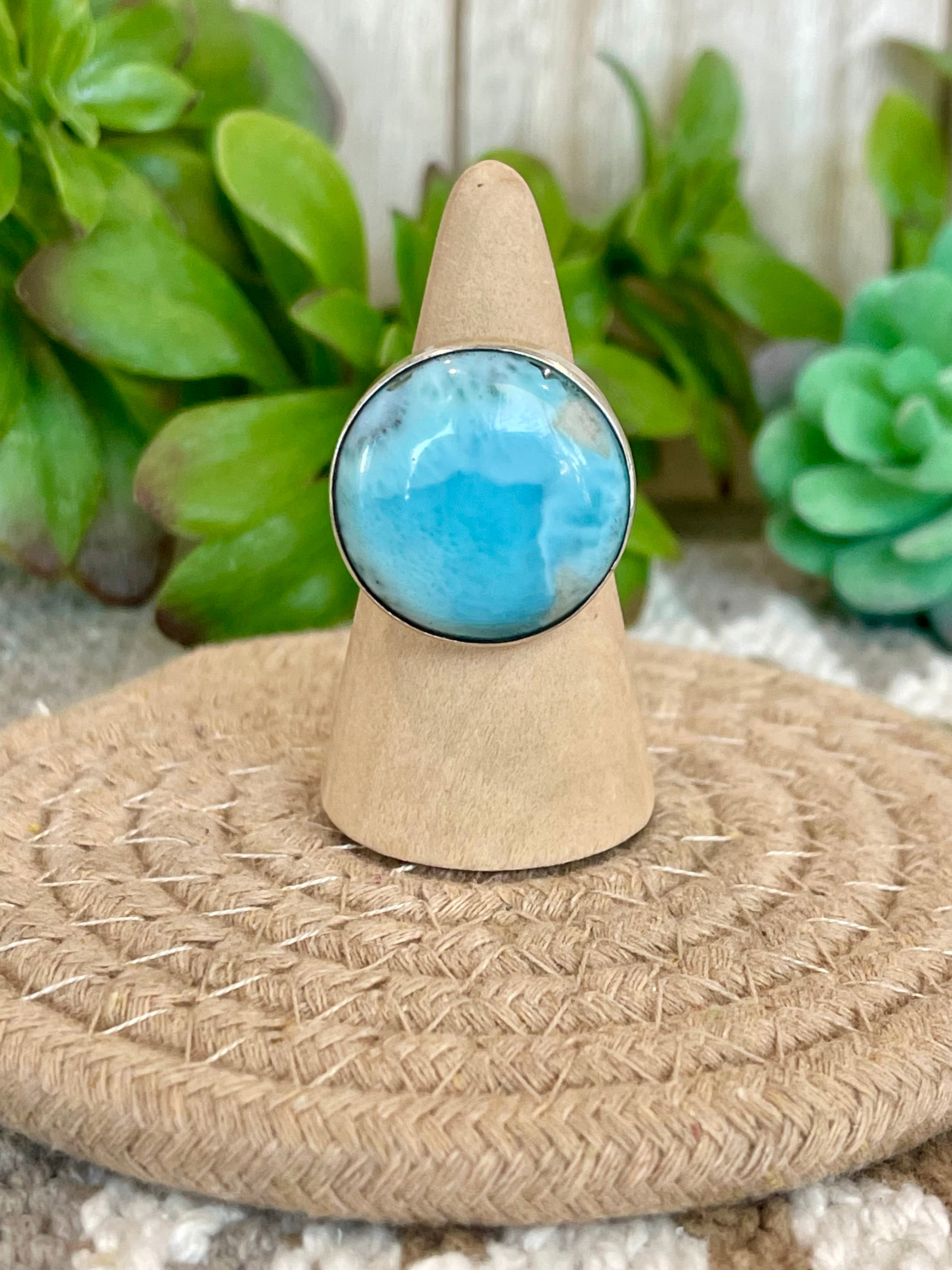Southwest Handmade Larimar & Sterling Silver Size 8 Ring