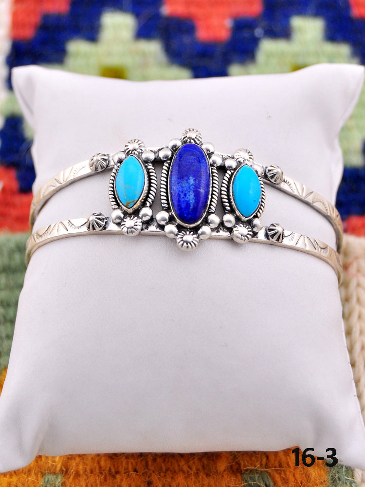 Southwest Handmade Kingman turquoise with lapis luzuli & Sterling Silver Cuff Bracelet