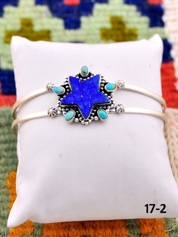 Southwest Handmade Kingman turquoise with lapis luzuli & Sterling Silver Cuff Bracelet
