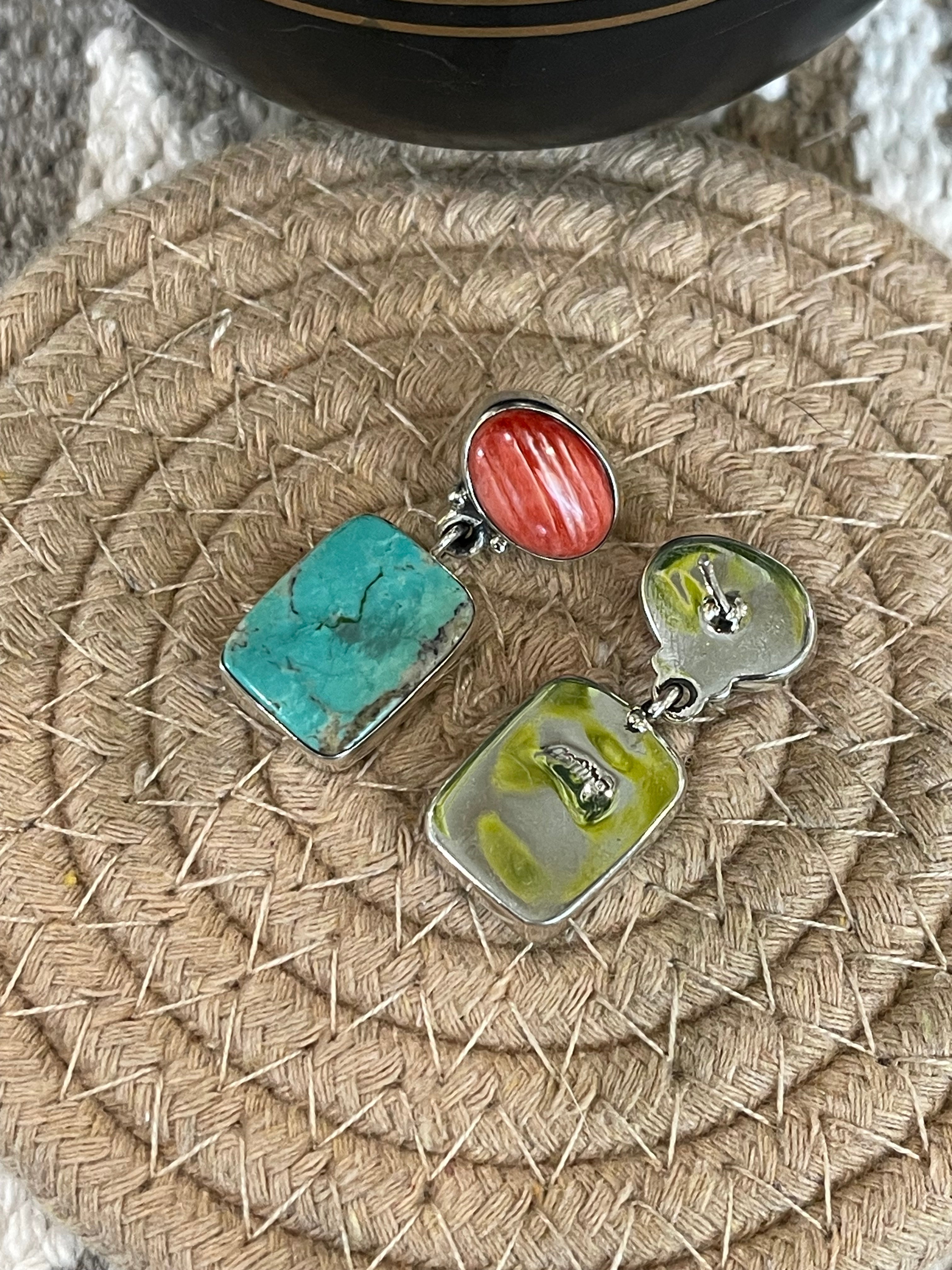 Southwest Handmade Multi Stone & Sterling Silver Post Dangle Earrings