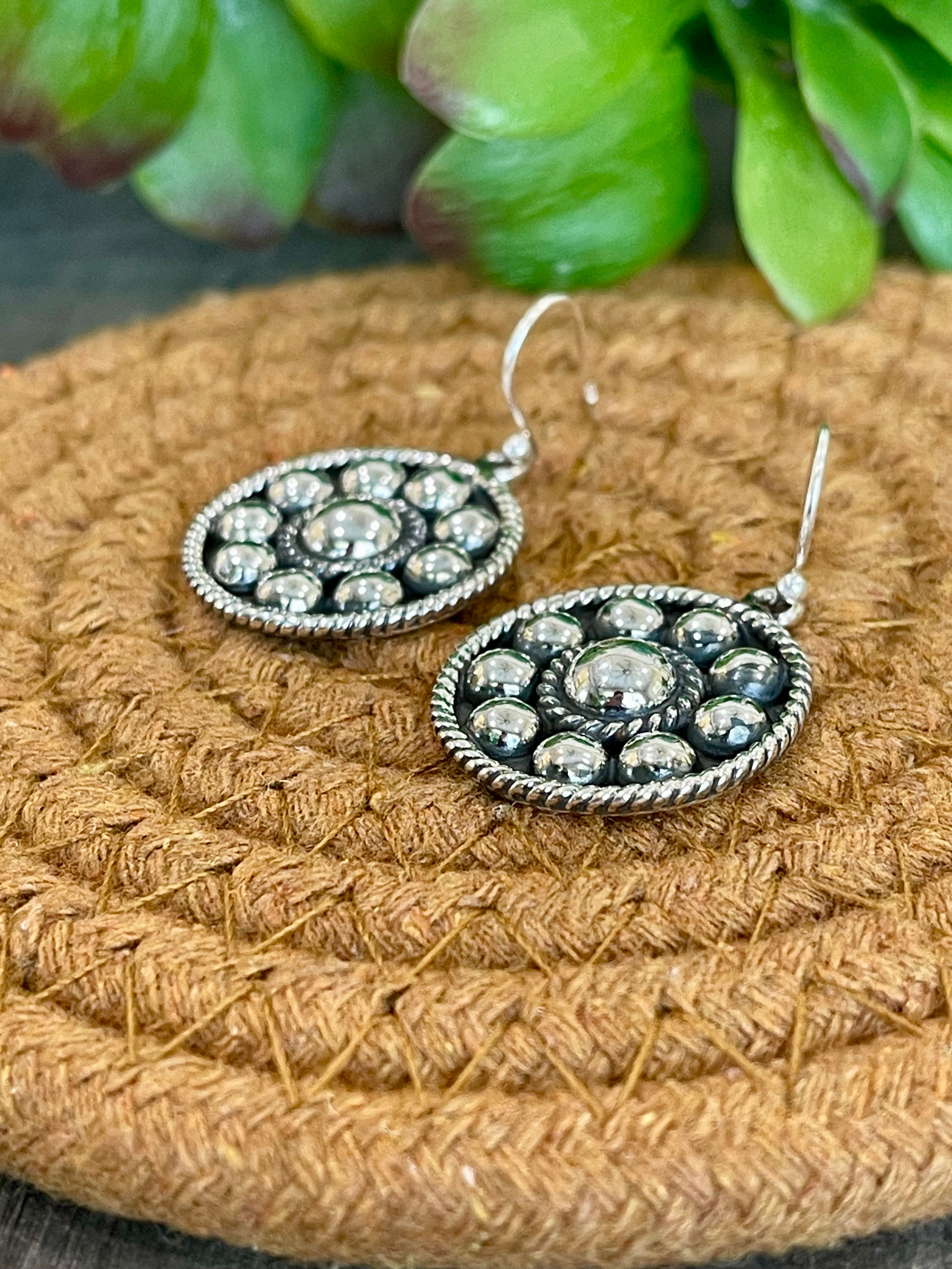 Southwest Handmade Sterling Silver Circle Dangle Earrings