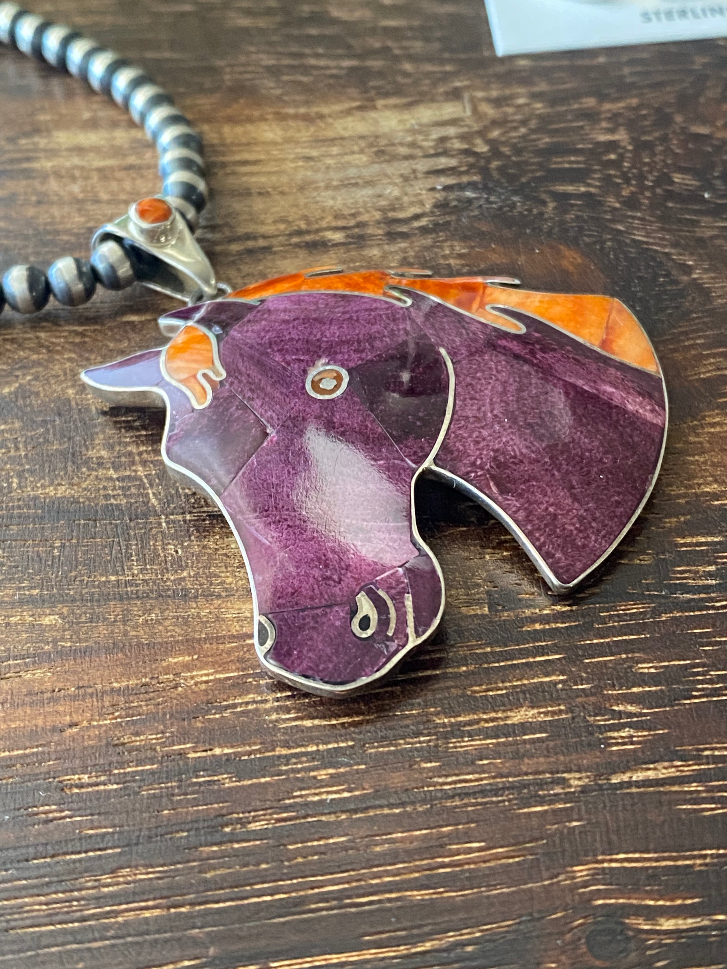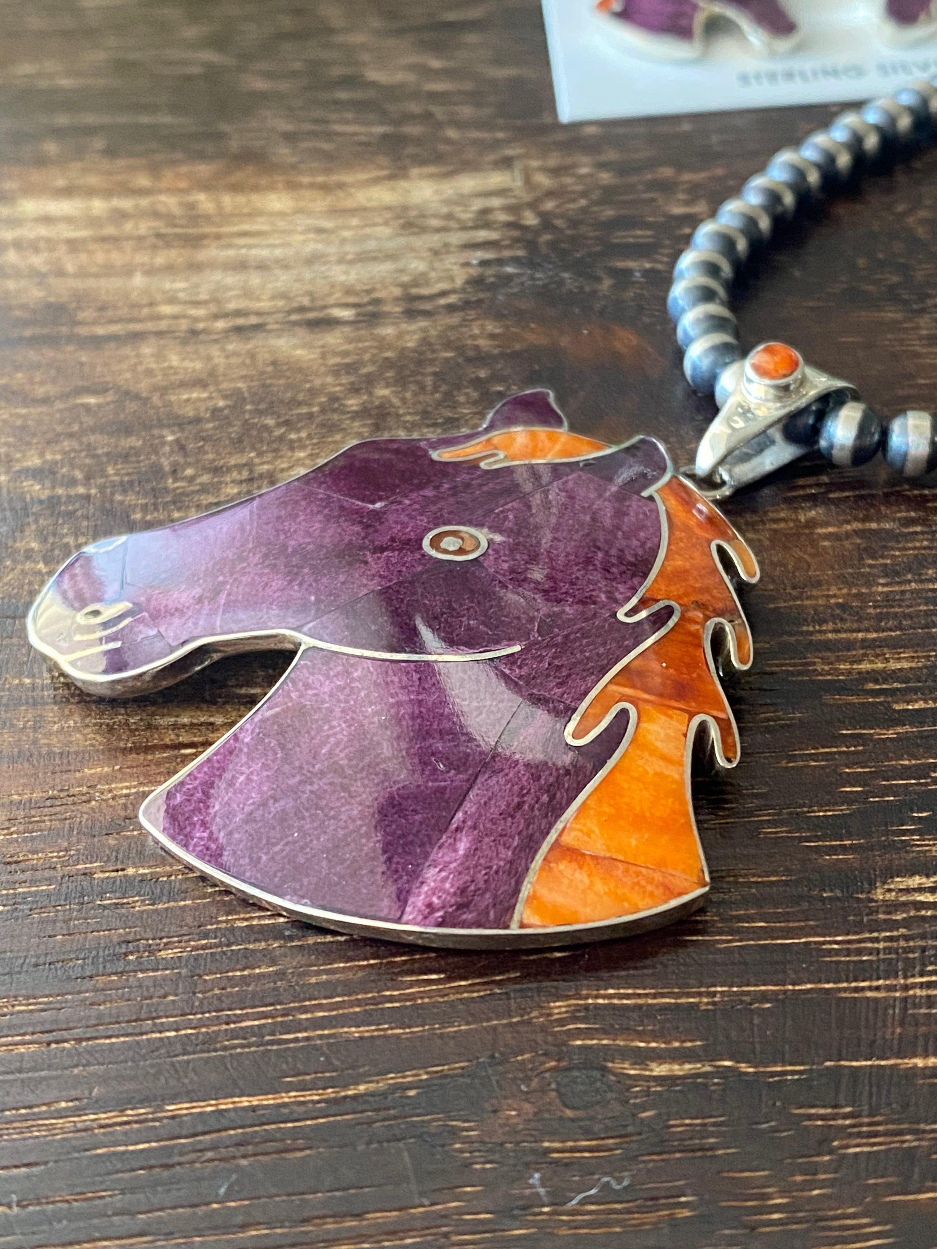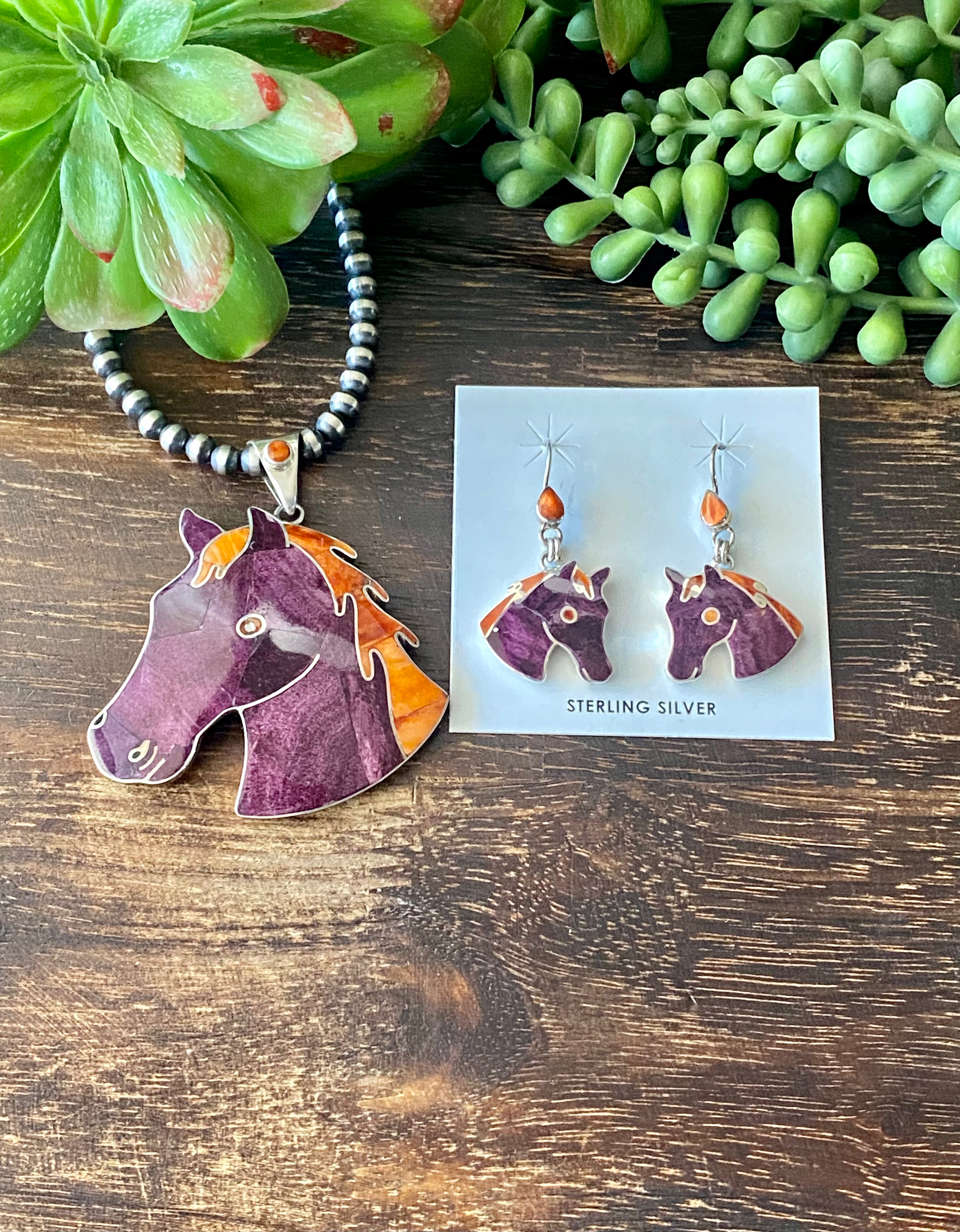 Southwest Handmade Multi Stone & Silver Inlay Pendant/Earring Set