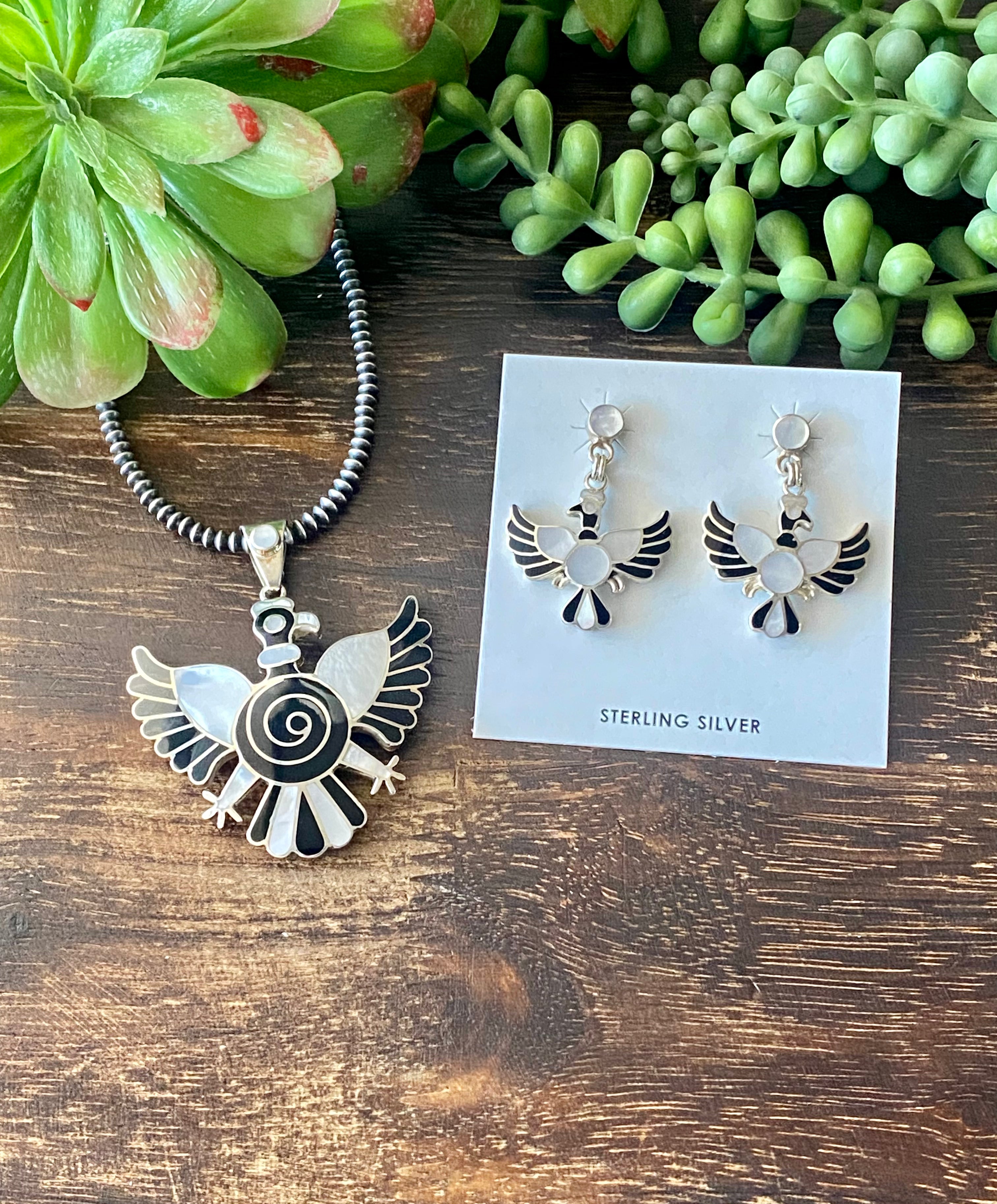 Southwest Handmade Multi Stone & Silver Inlay Pendant/Earring Set