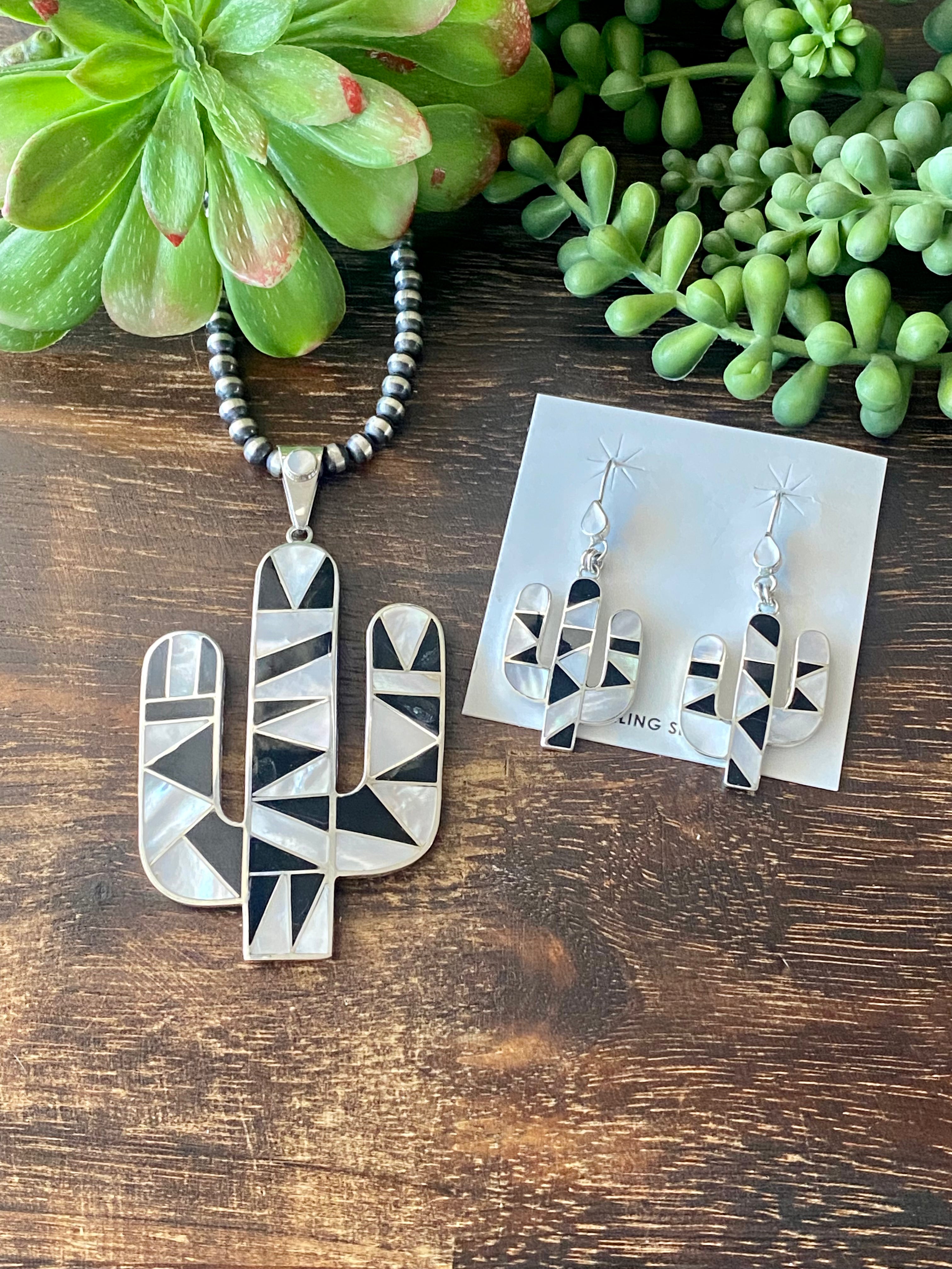 Southwest Handmade Multi Stone & Silver Inlay Pendant/Earring Set