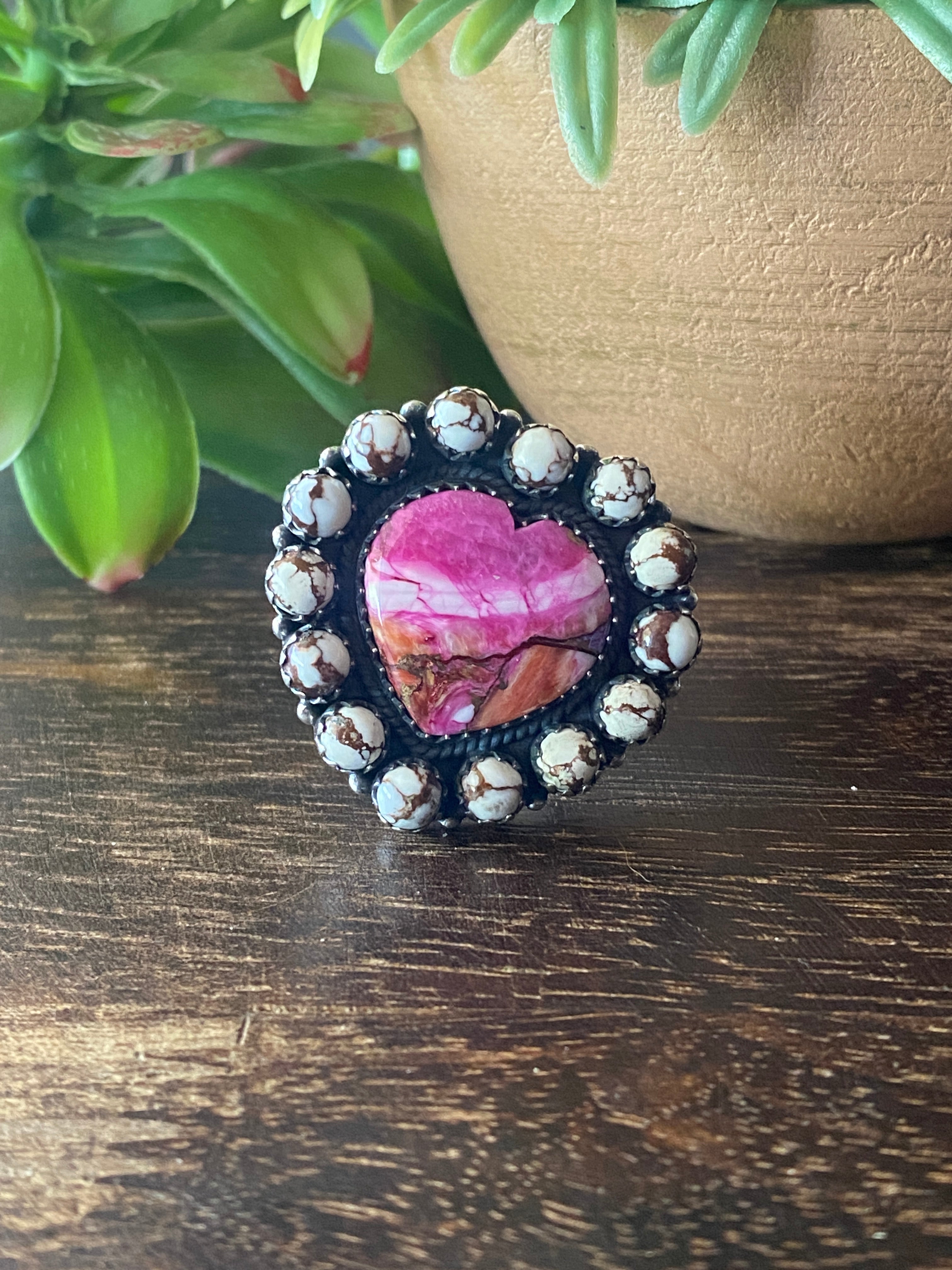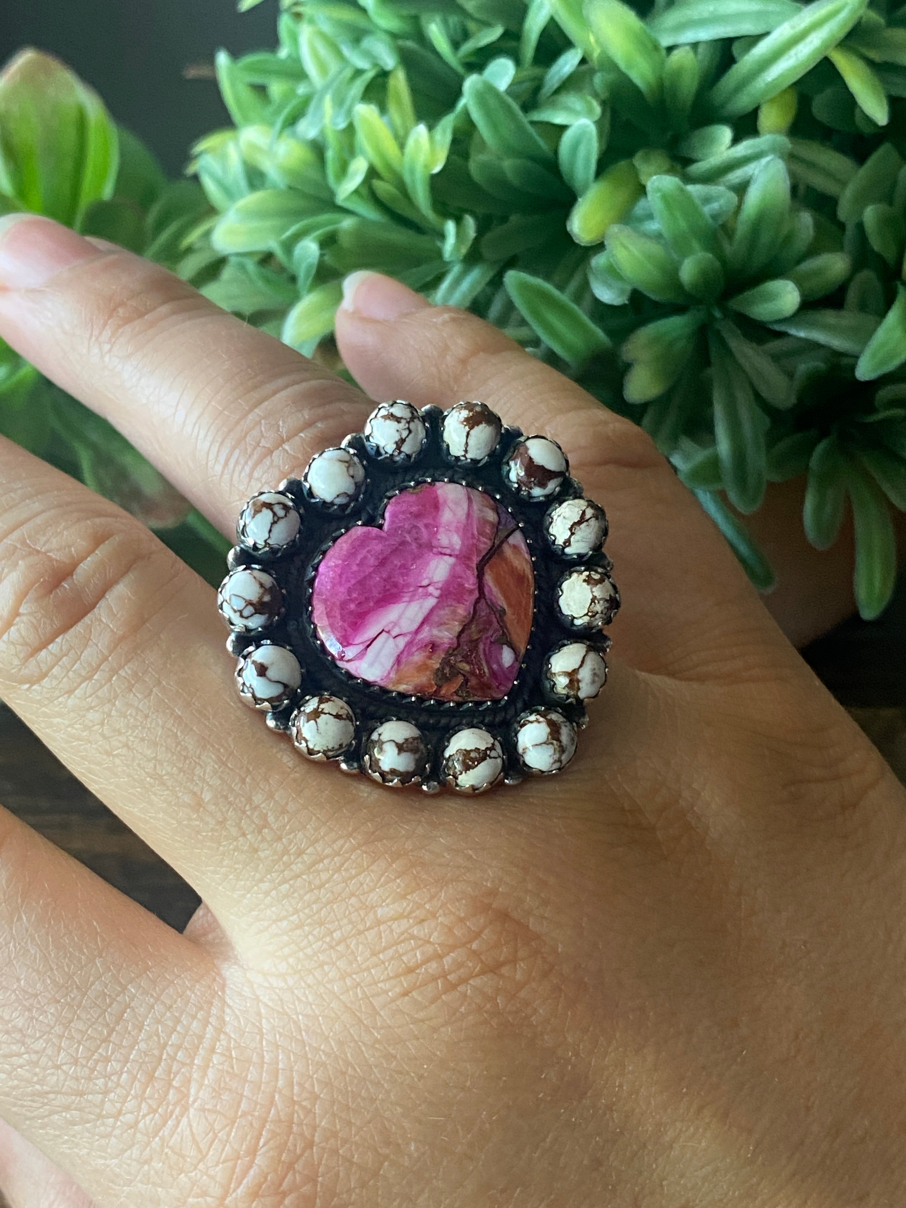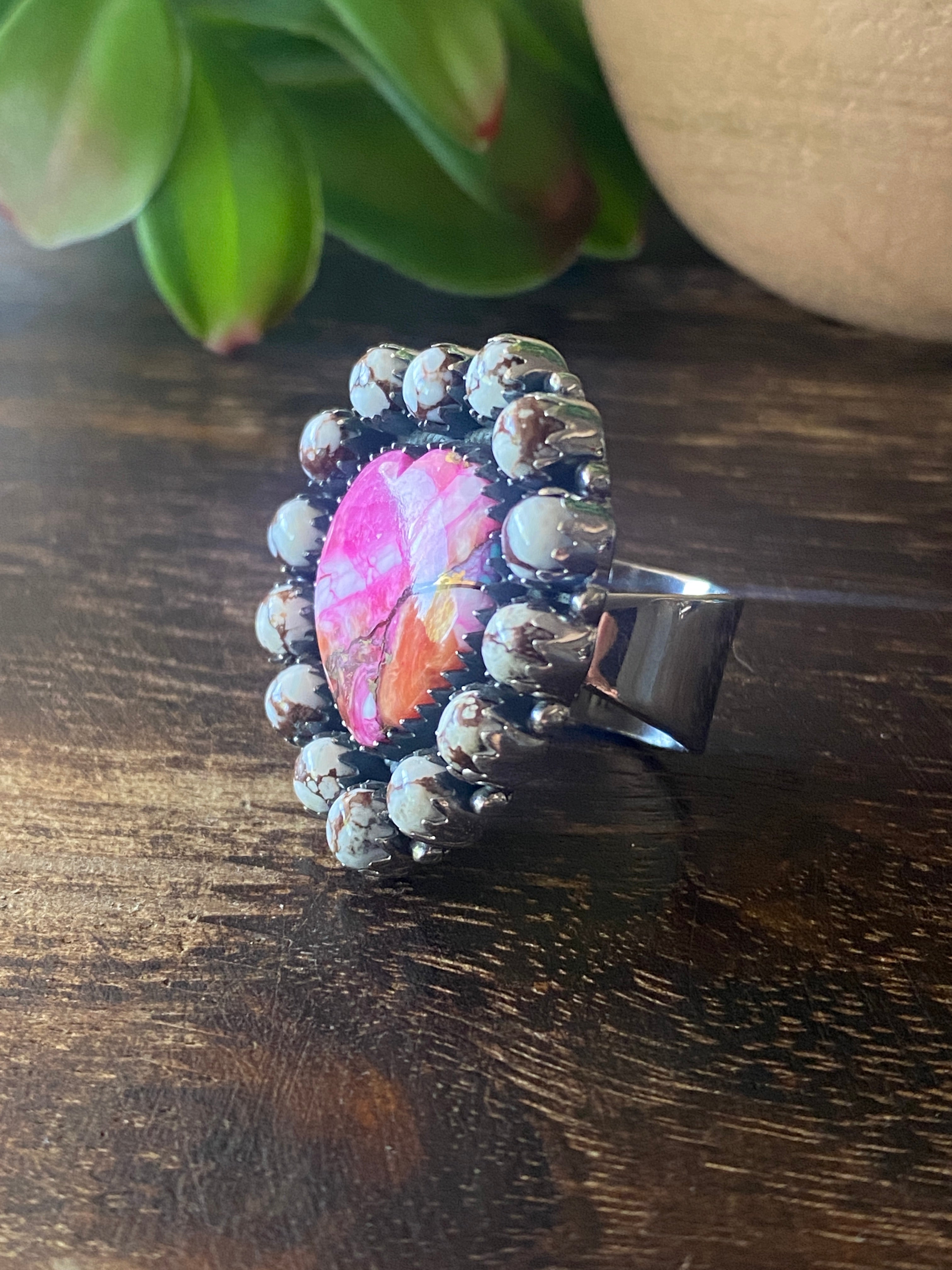 Southwest Handmade Multi Stone & Sterling Silver Adjustable Cluster Ring