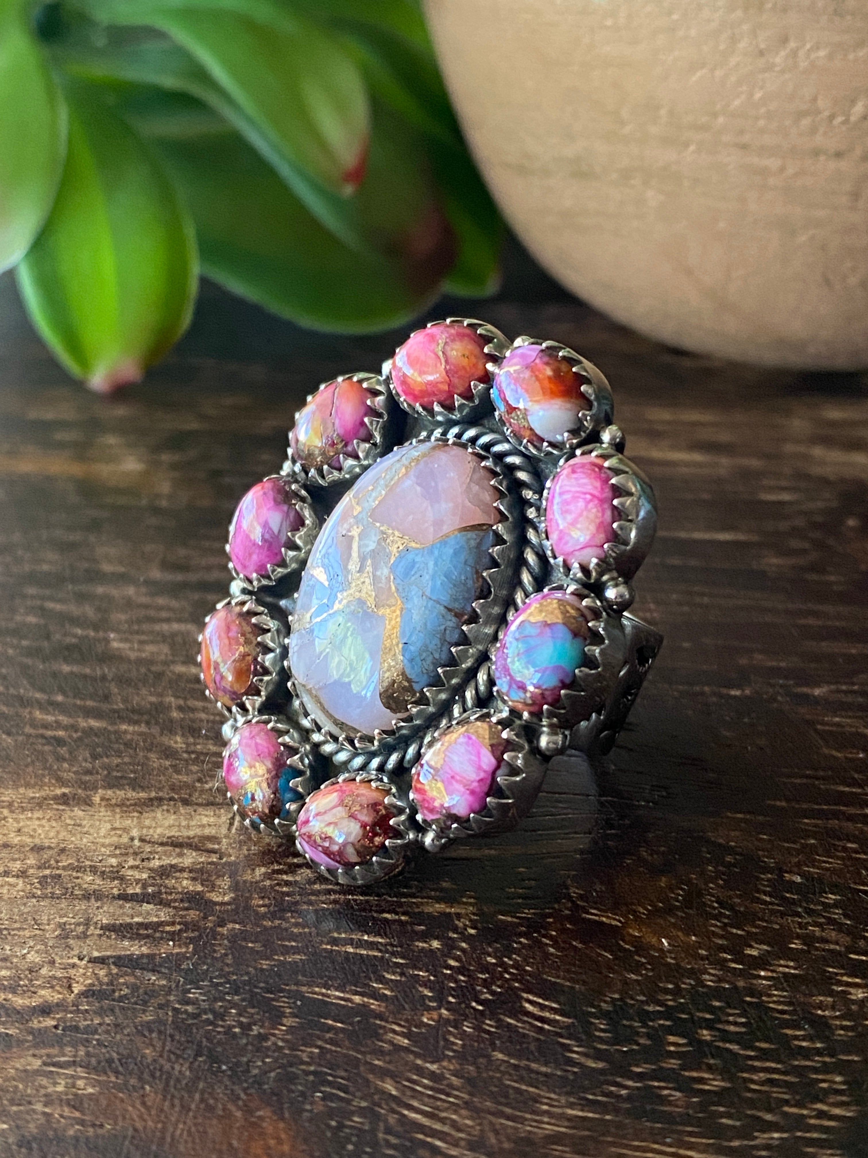 Southwest Handmade Multi Stone & Sterling Silver Adjustable Cluster Ring