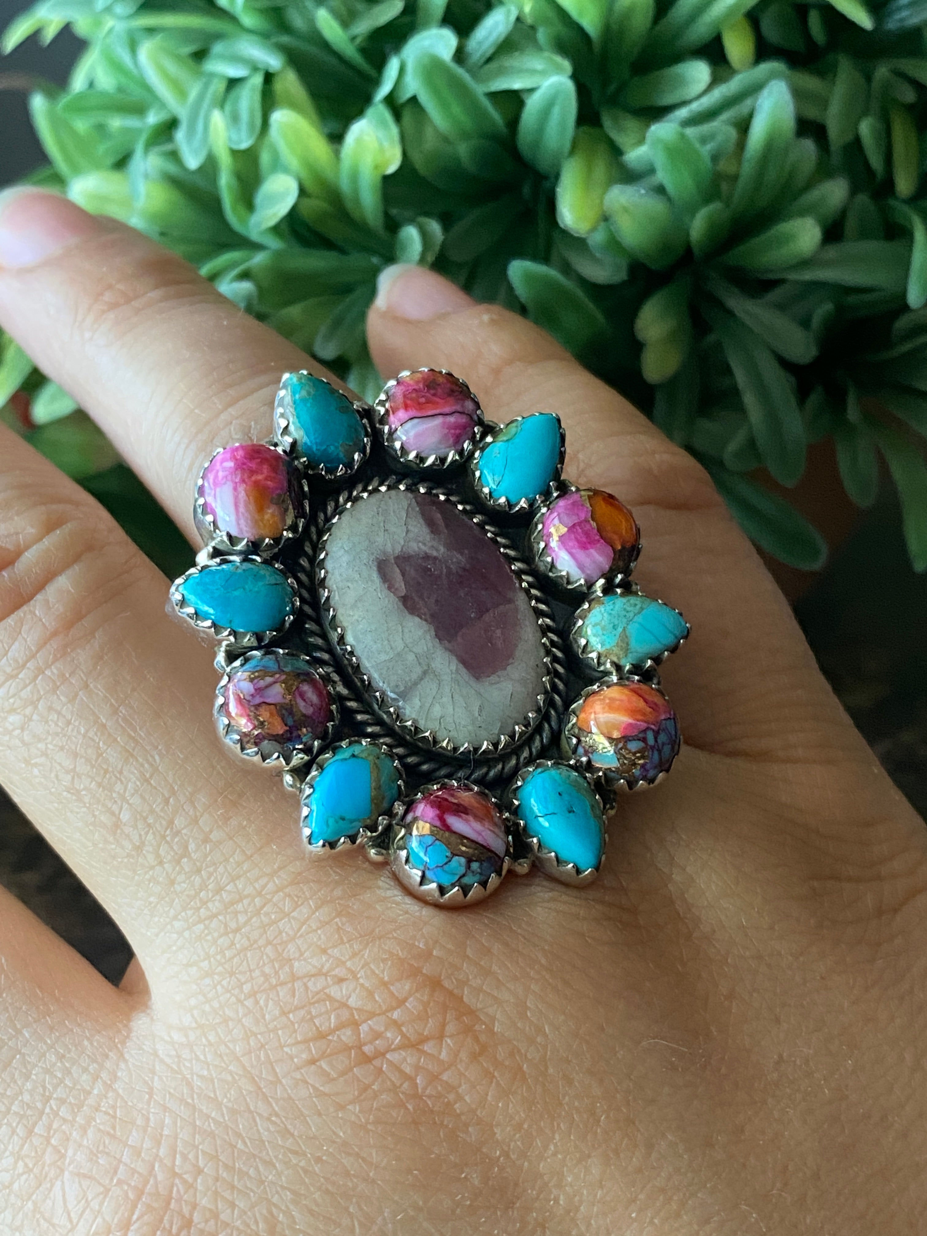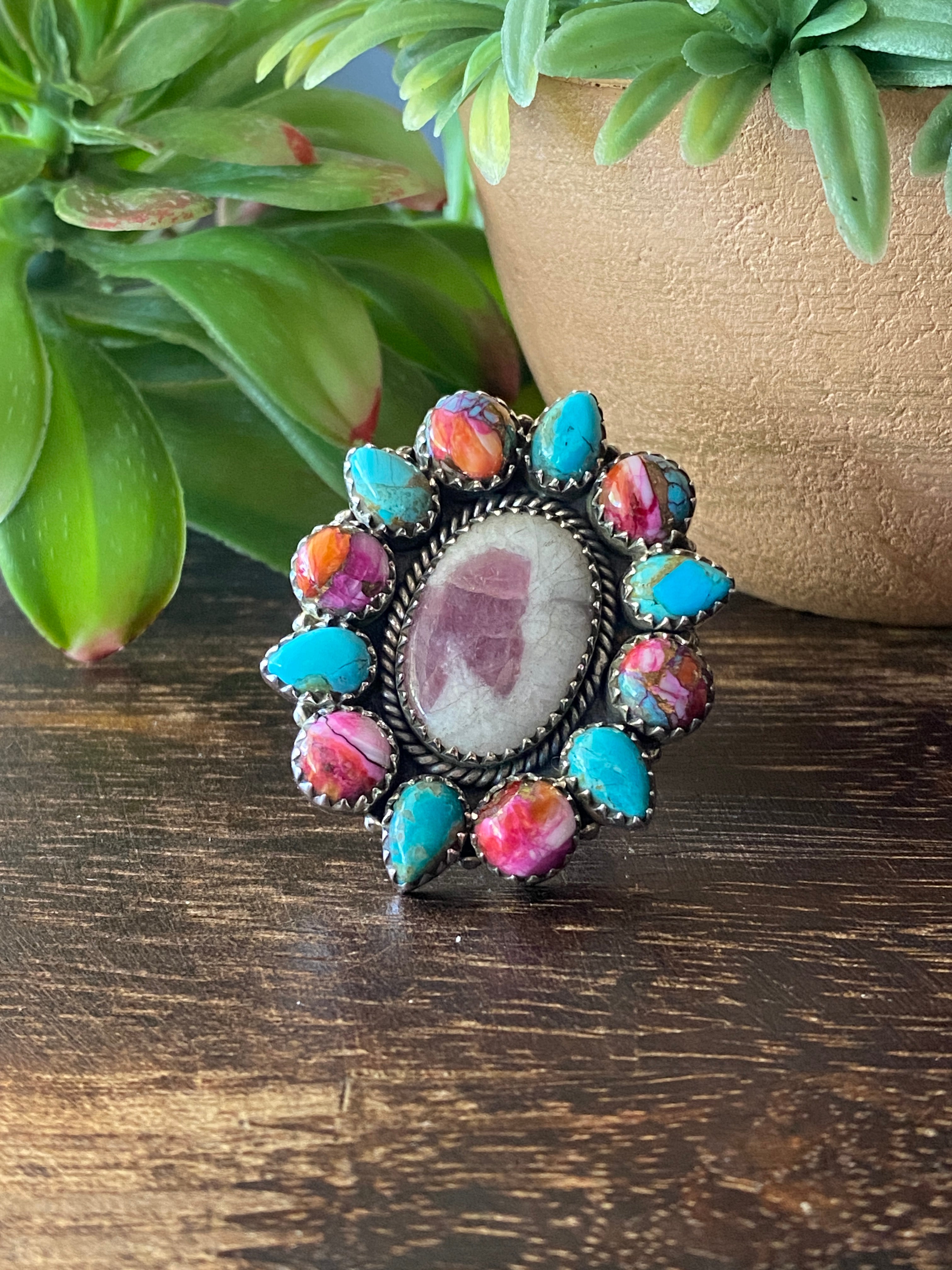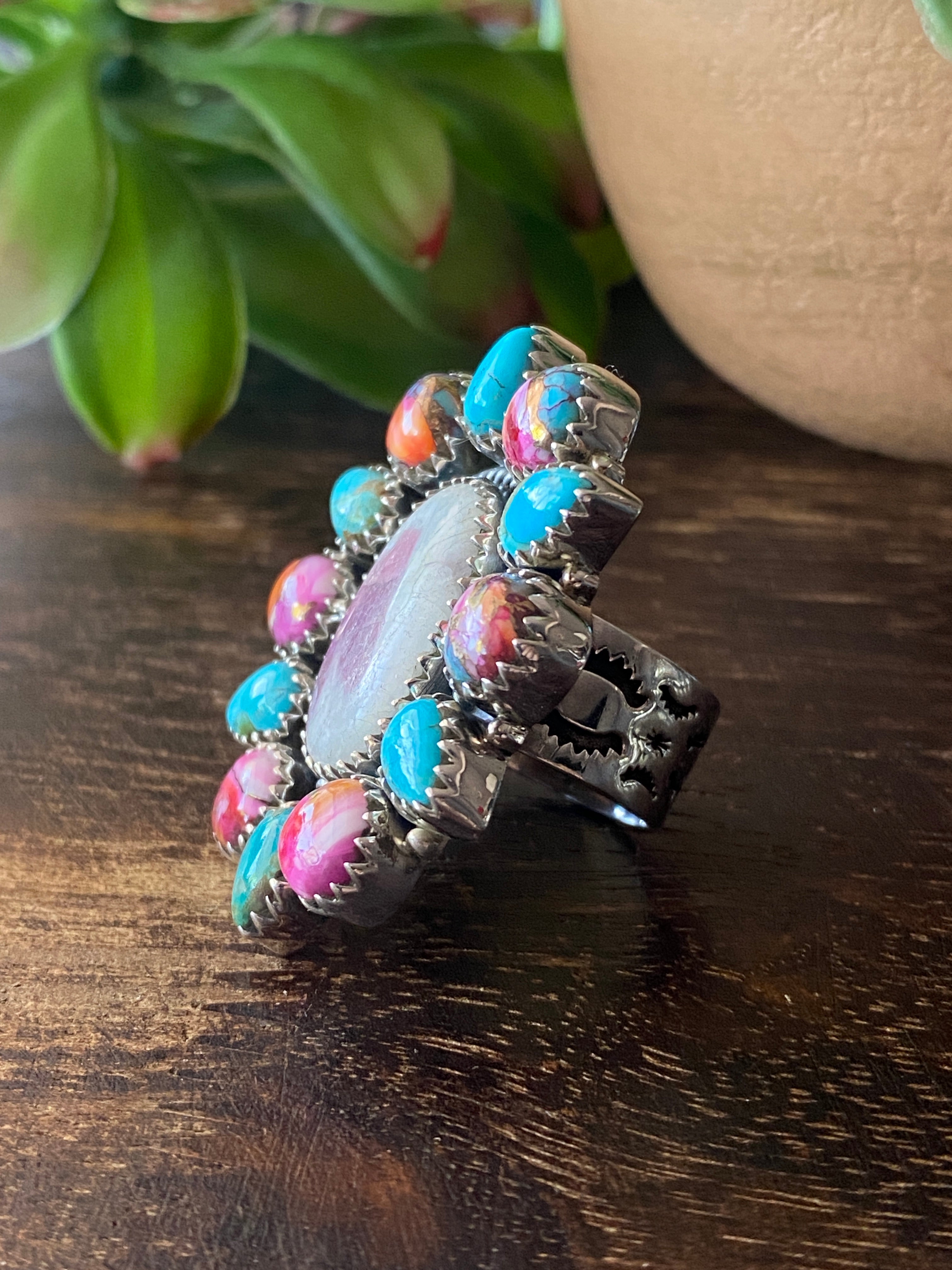 Southwest Handmade Multi Stone & Sterling Silver Adjustable Cluster Ring