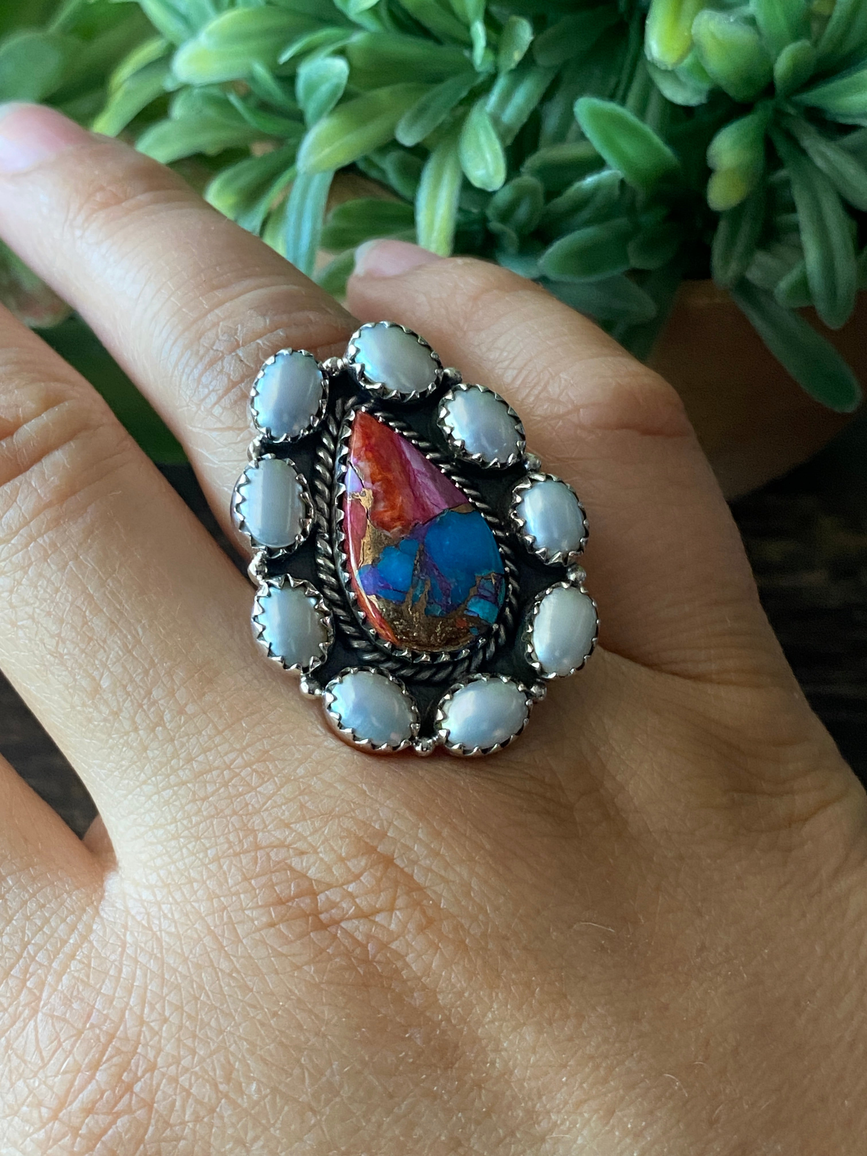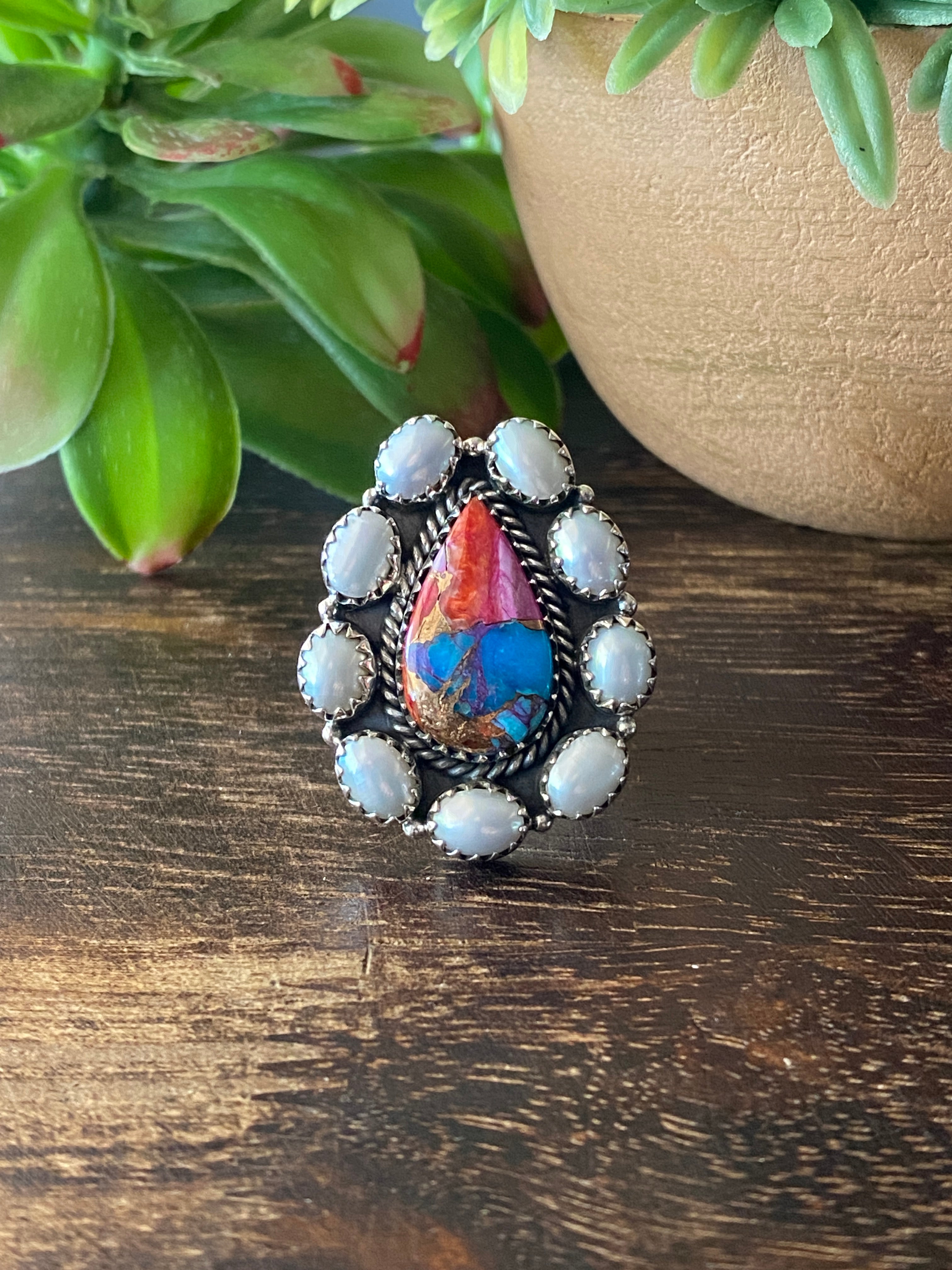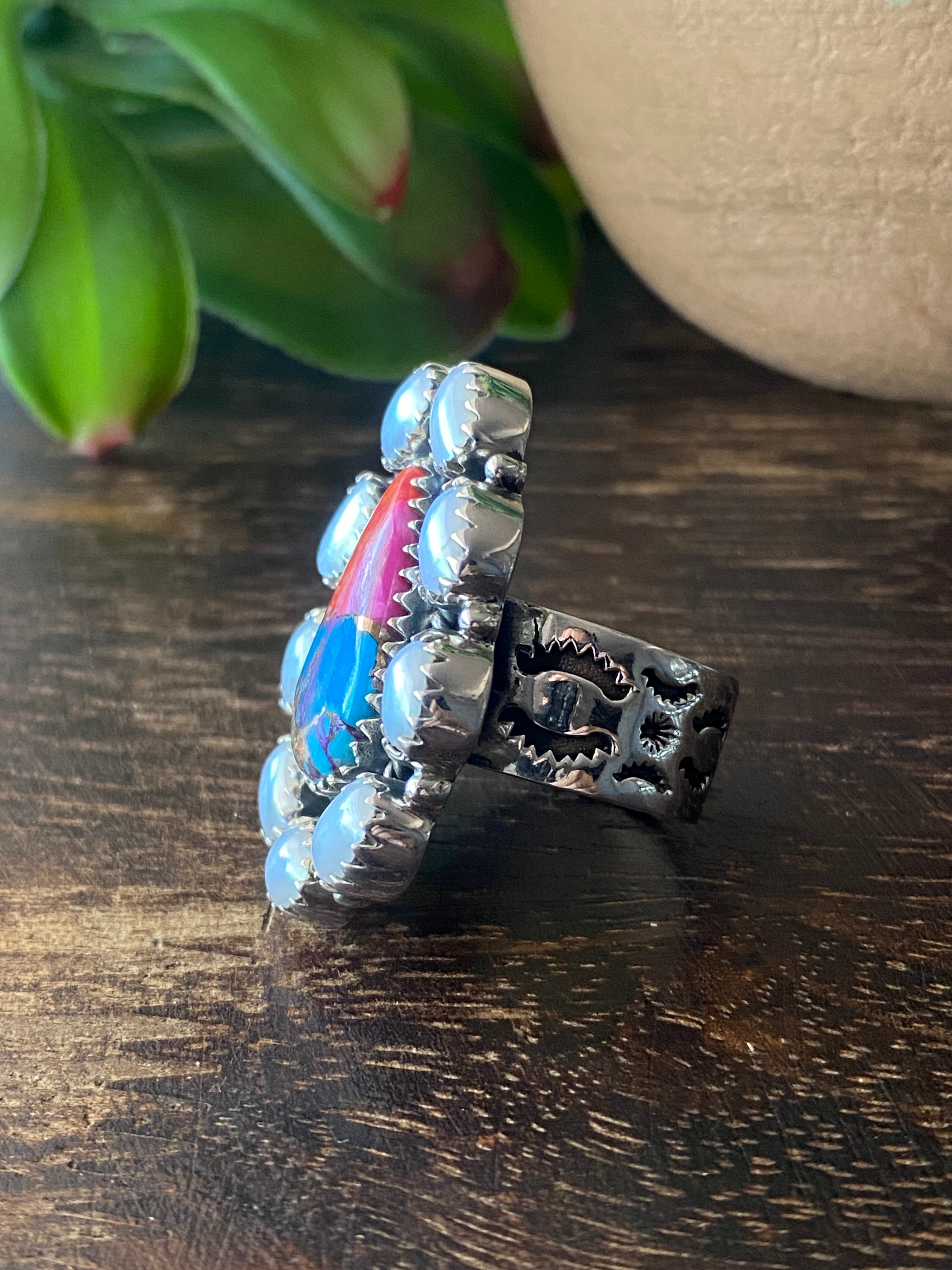 Southwest Handmade Multi Stone & Sterling Silver Adjustable Cluster Ring